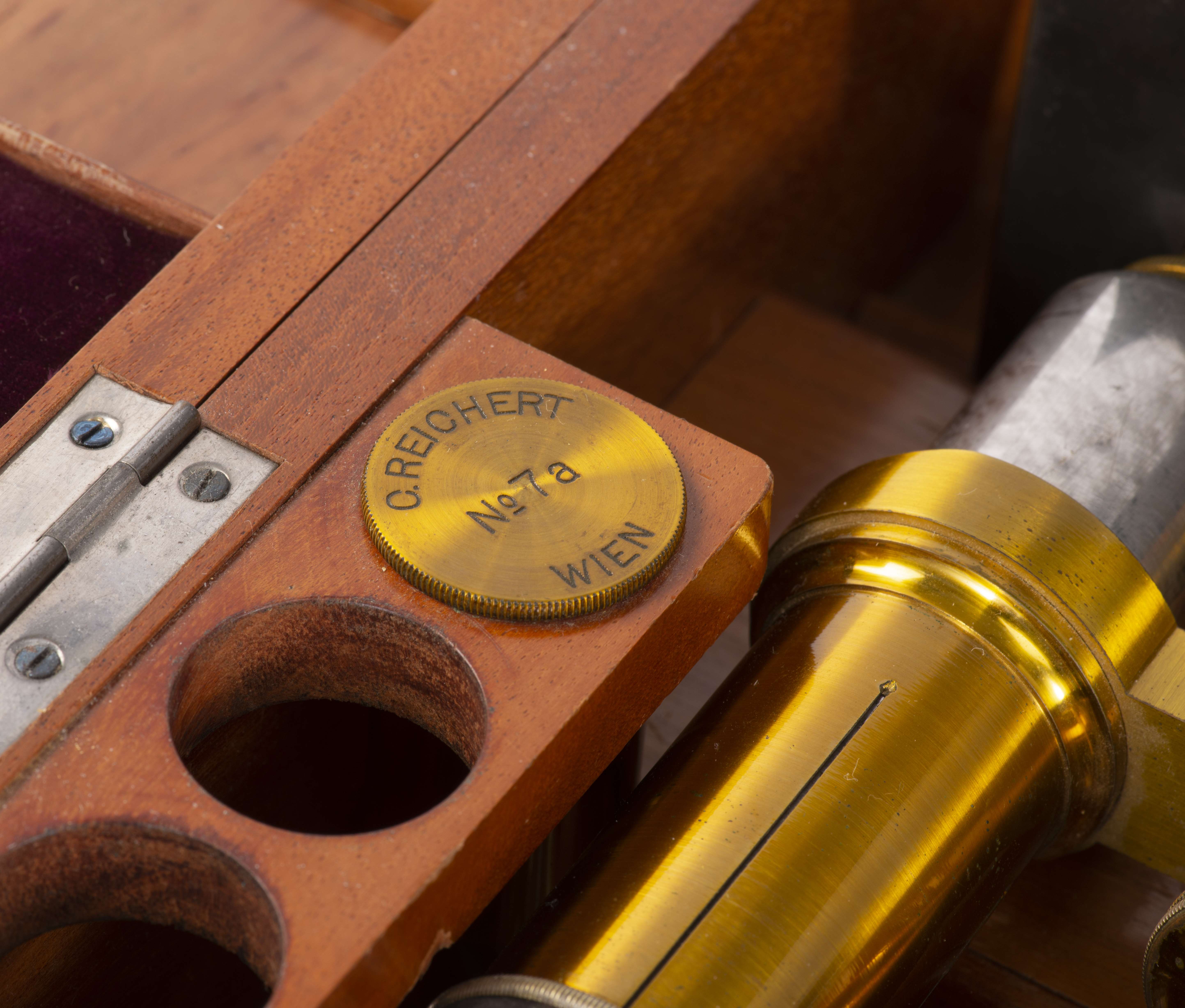 Microscope en laiton par C. Reichert Wien, fin XIXe, un objectif 7a n° 19847.