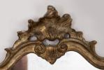 Miroir baroque mouvementé à cadre en bois doré et fronton à coquille.