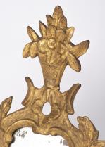 Miroir réflecteur rectangulaire baroque italien. Cadre en bois et stuc doré à fronton d'un panier fleuri, avec attache pour le bras de lumière.