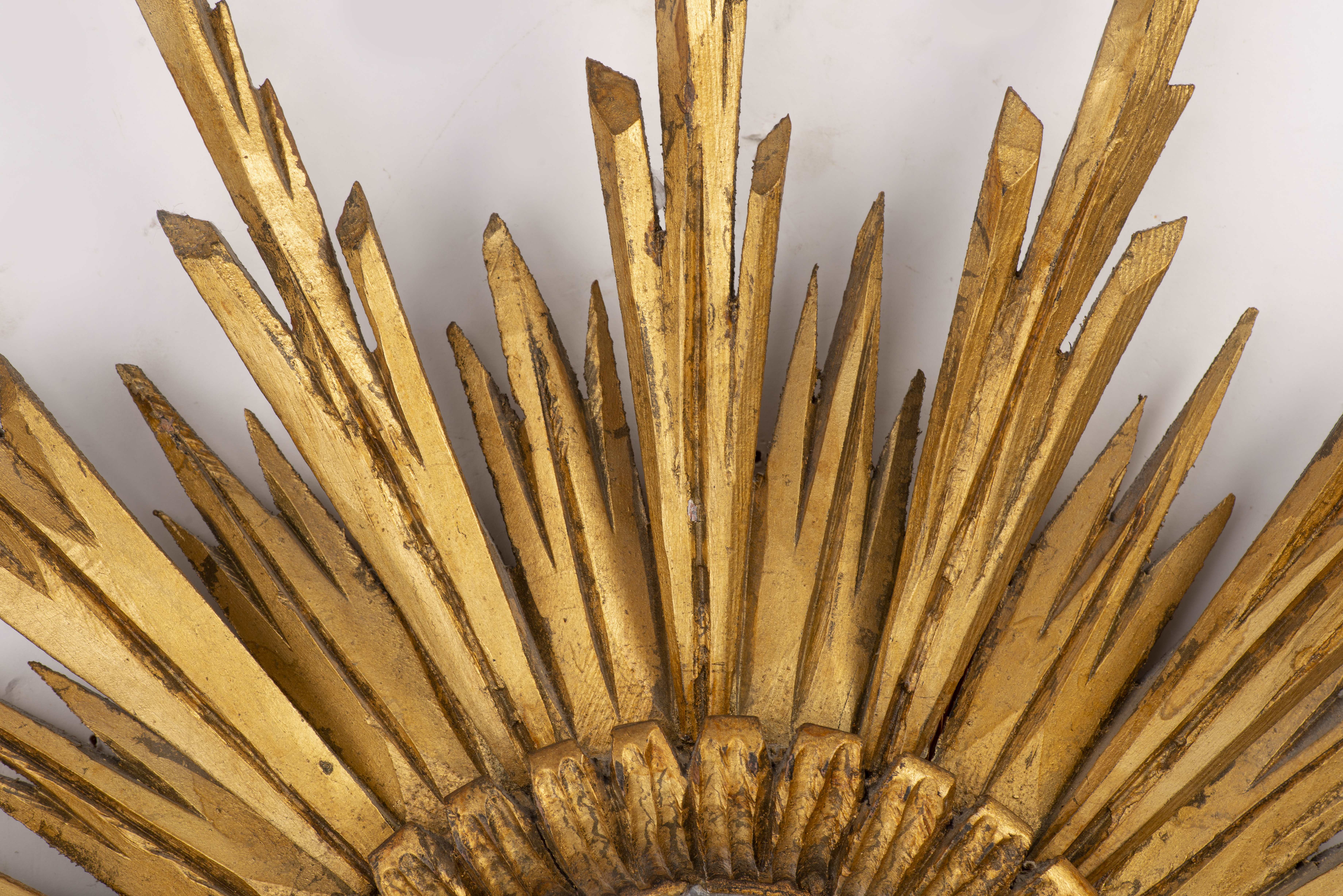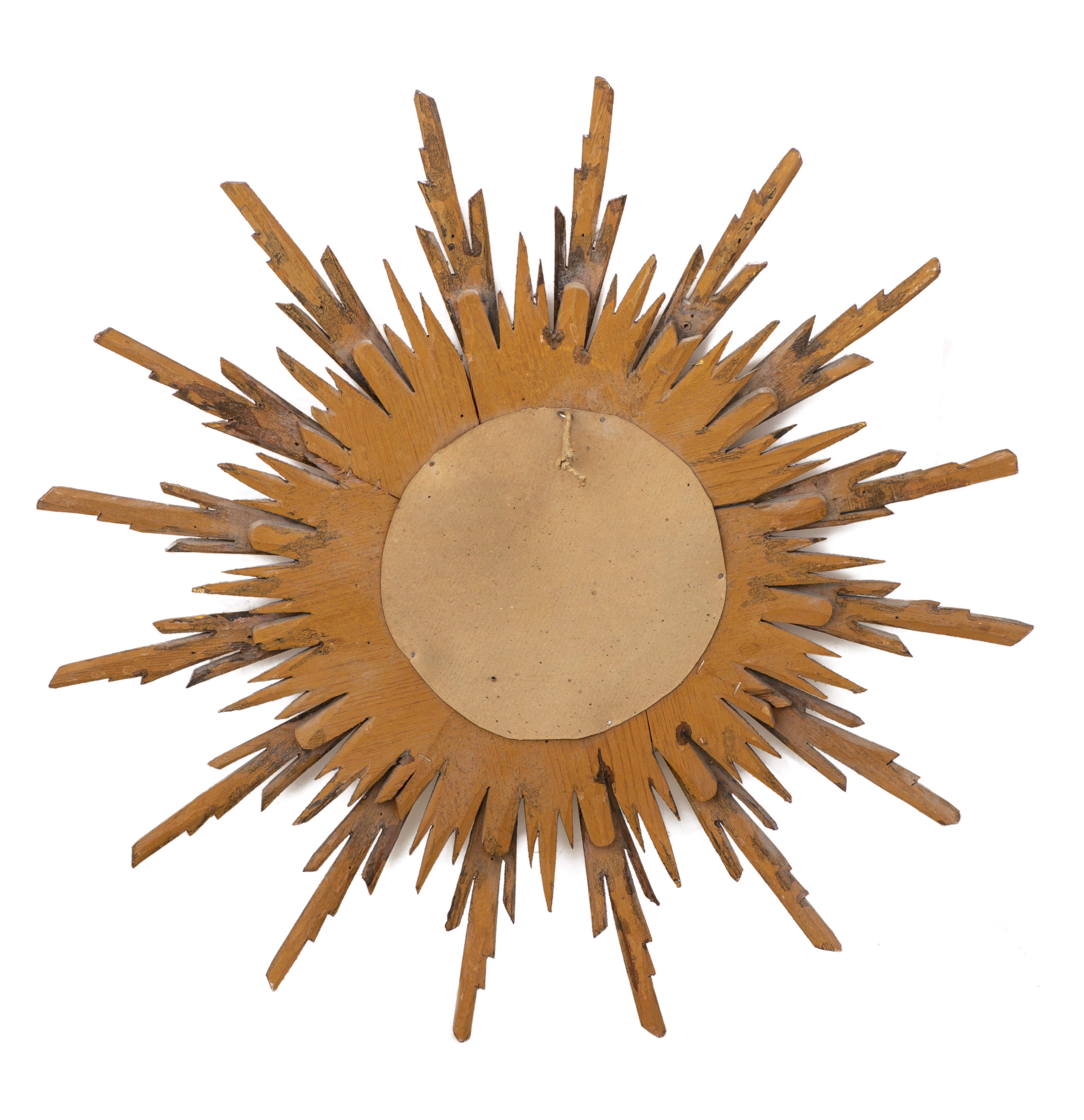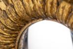 Miroir socière à cadre en bois doré rayonnant.