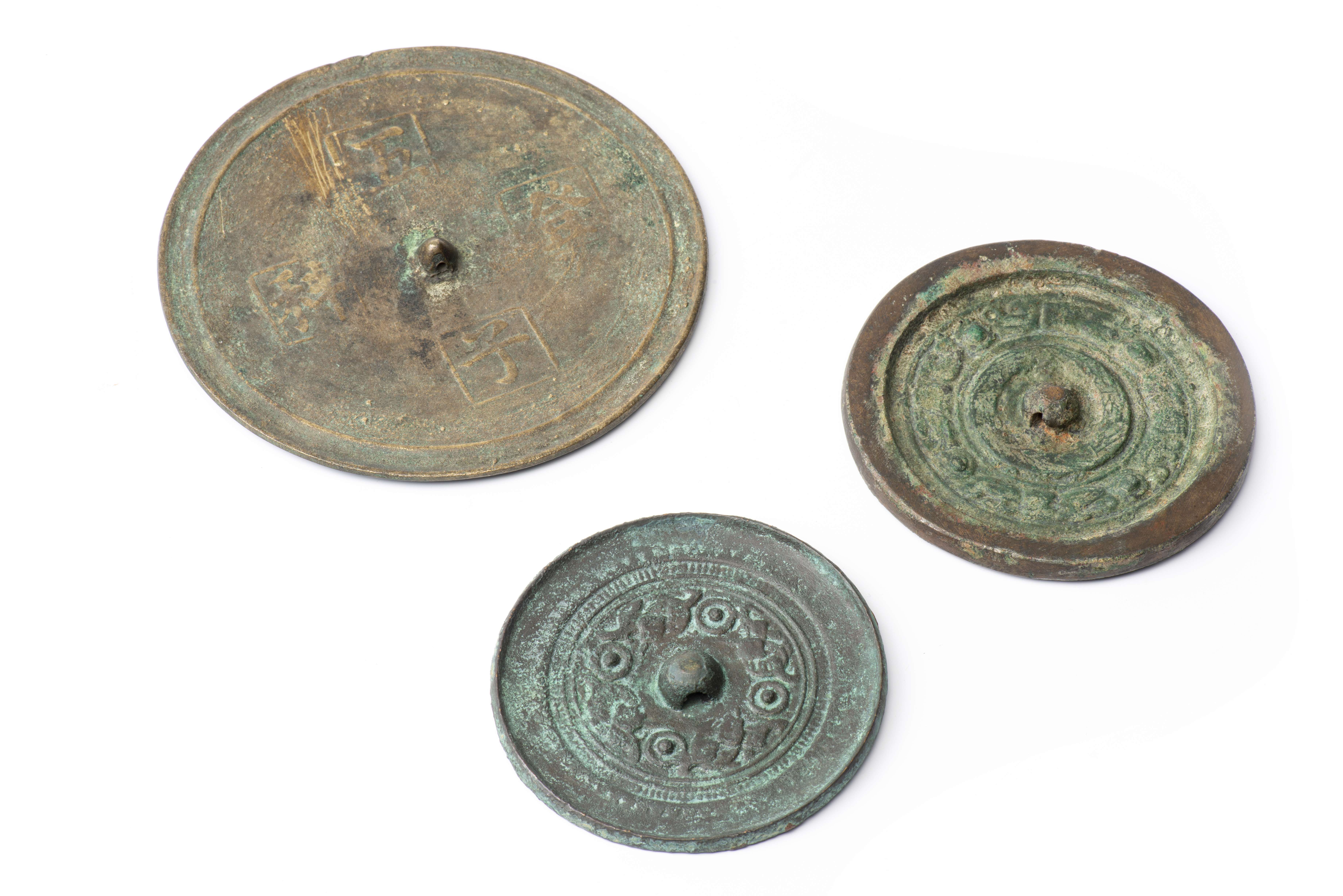Lot de trois miroirs en bronze de Chine de la Dynastie des Han :