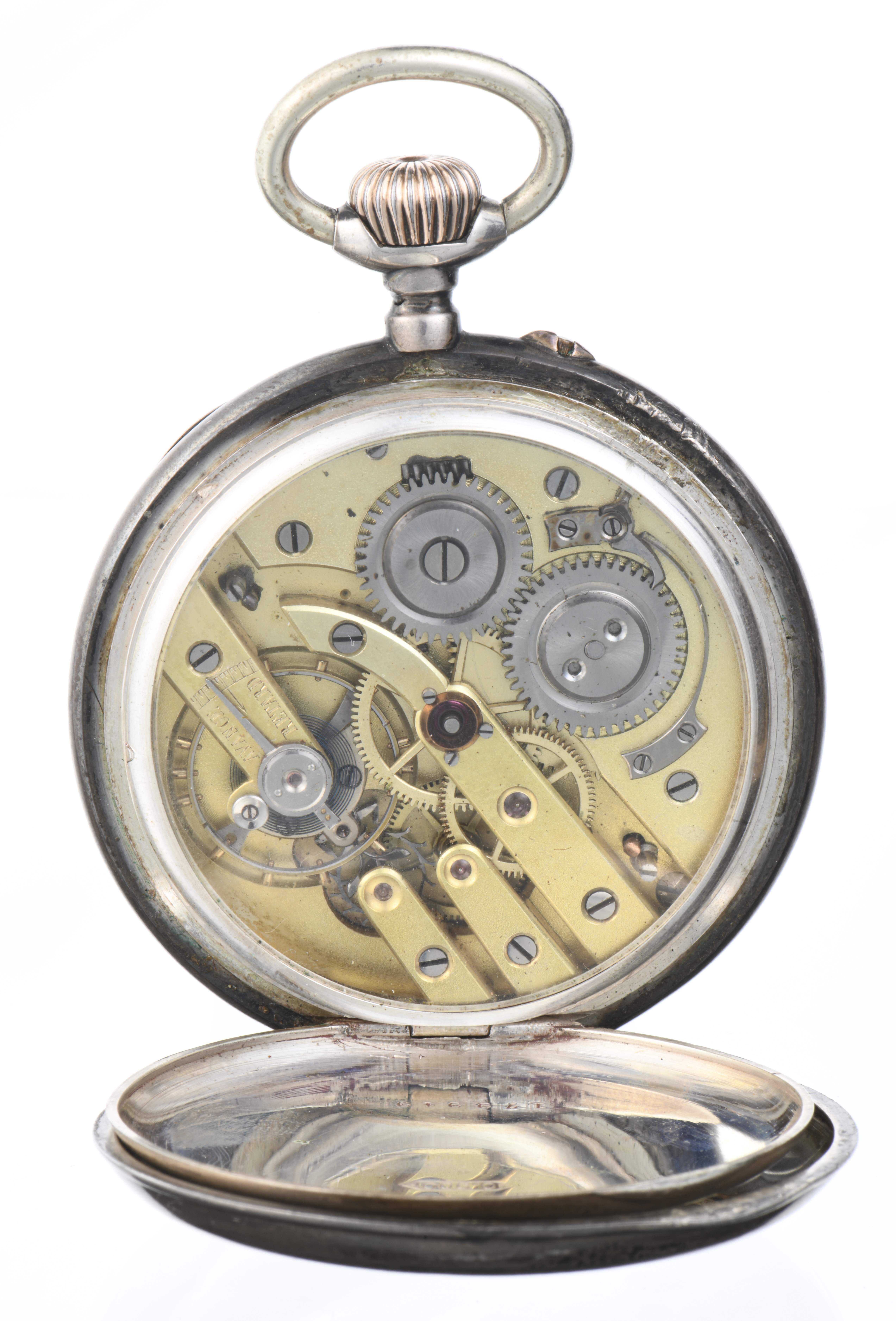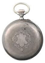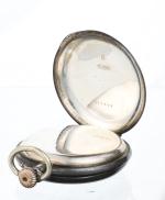 Montre de poche en argent .900, cadran en émail blanc, cadran des secondes à 6h, chiffres romains, échappement à ancre.