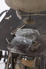 Mouvement de pendule squelette transformé, balancier et poids.