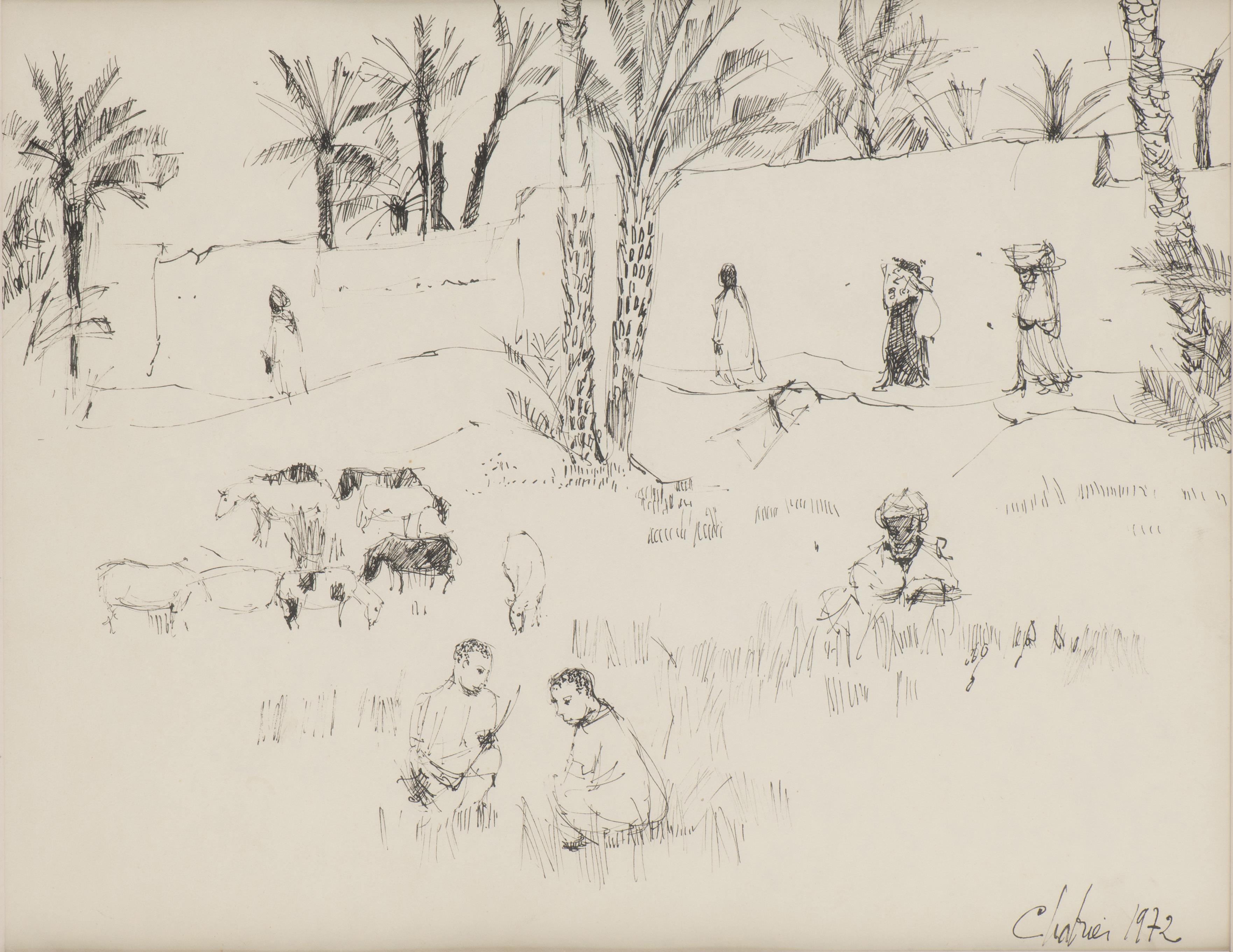 - "Oasis", crayon et dessin au feutre, sbd et daté 1972. 24x30 cm (à vue)
