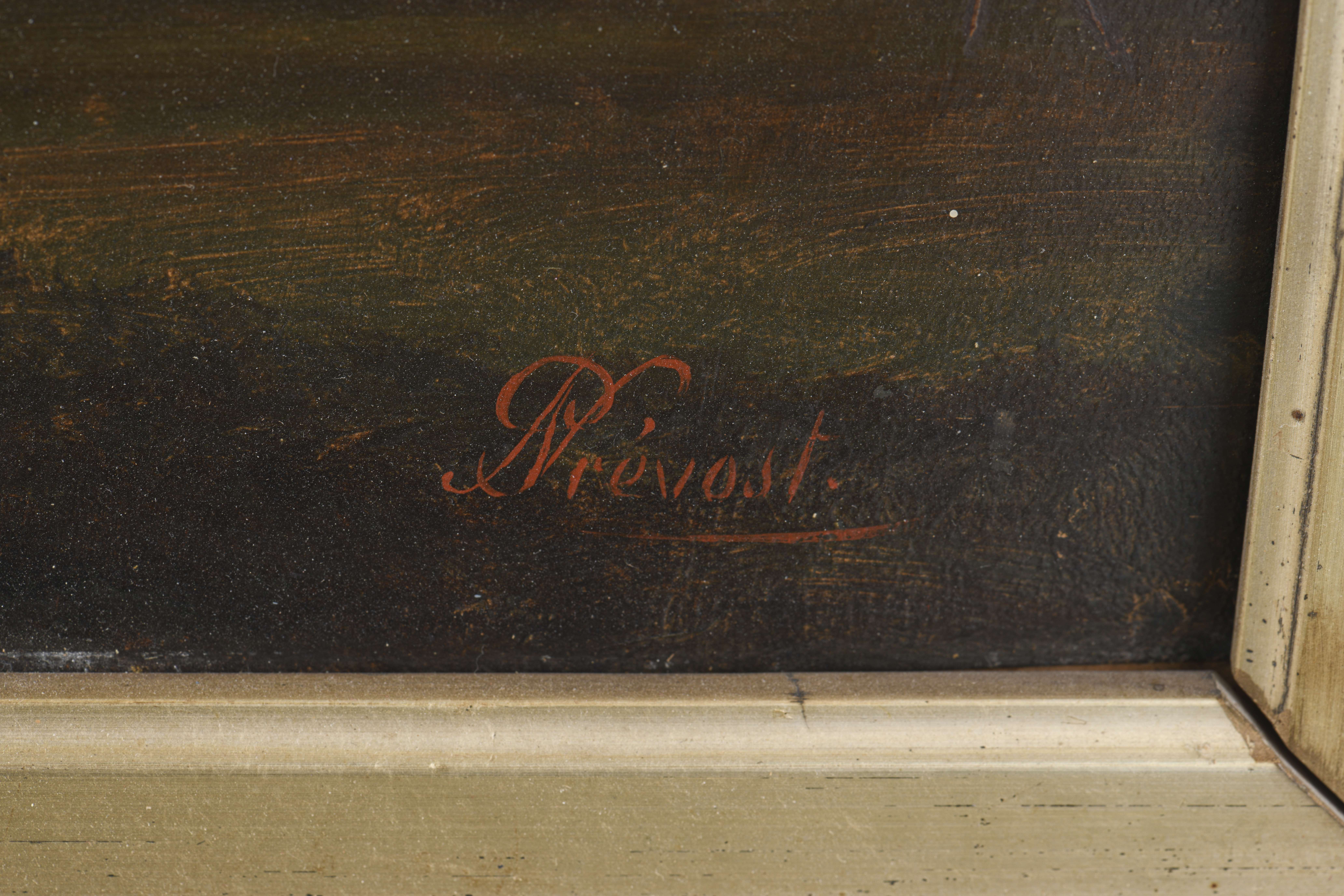 Nicolas PREVOST (1817-1864), deux paysages fluviaux, huiles sur carton, l'un signé en rouge en bas à droite et l'autre, non signé.