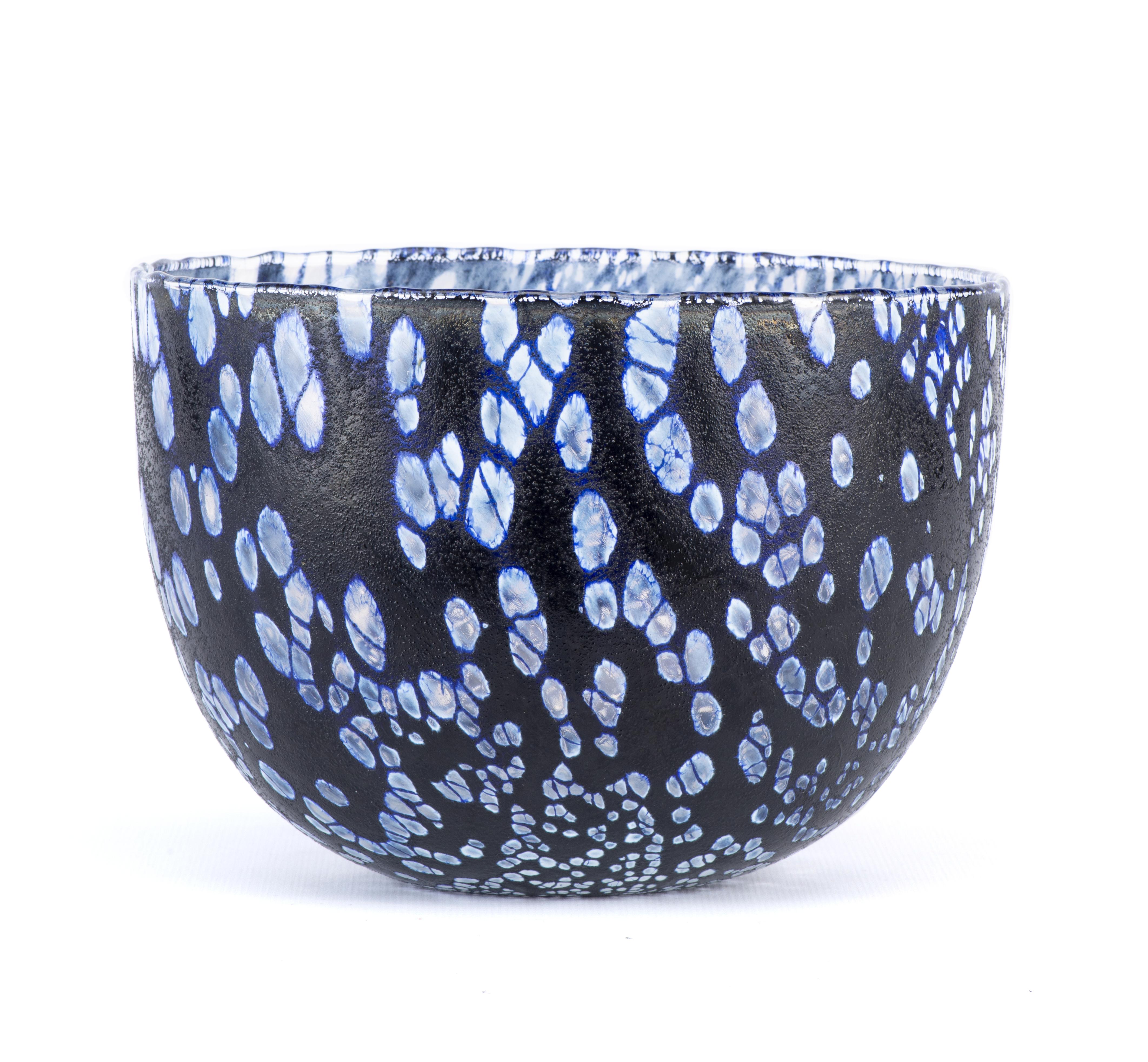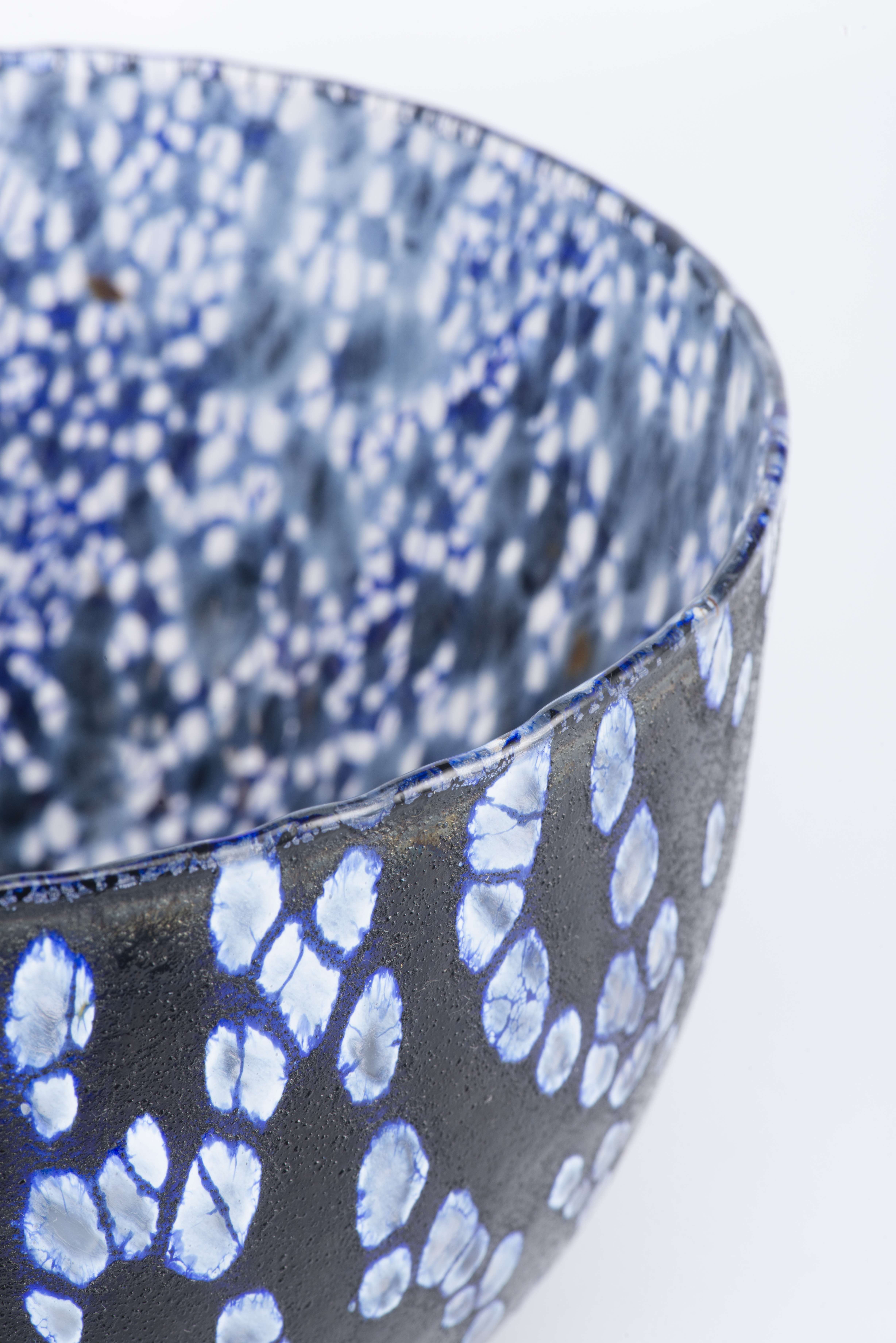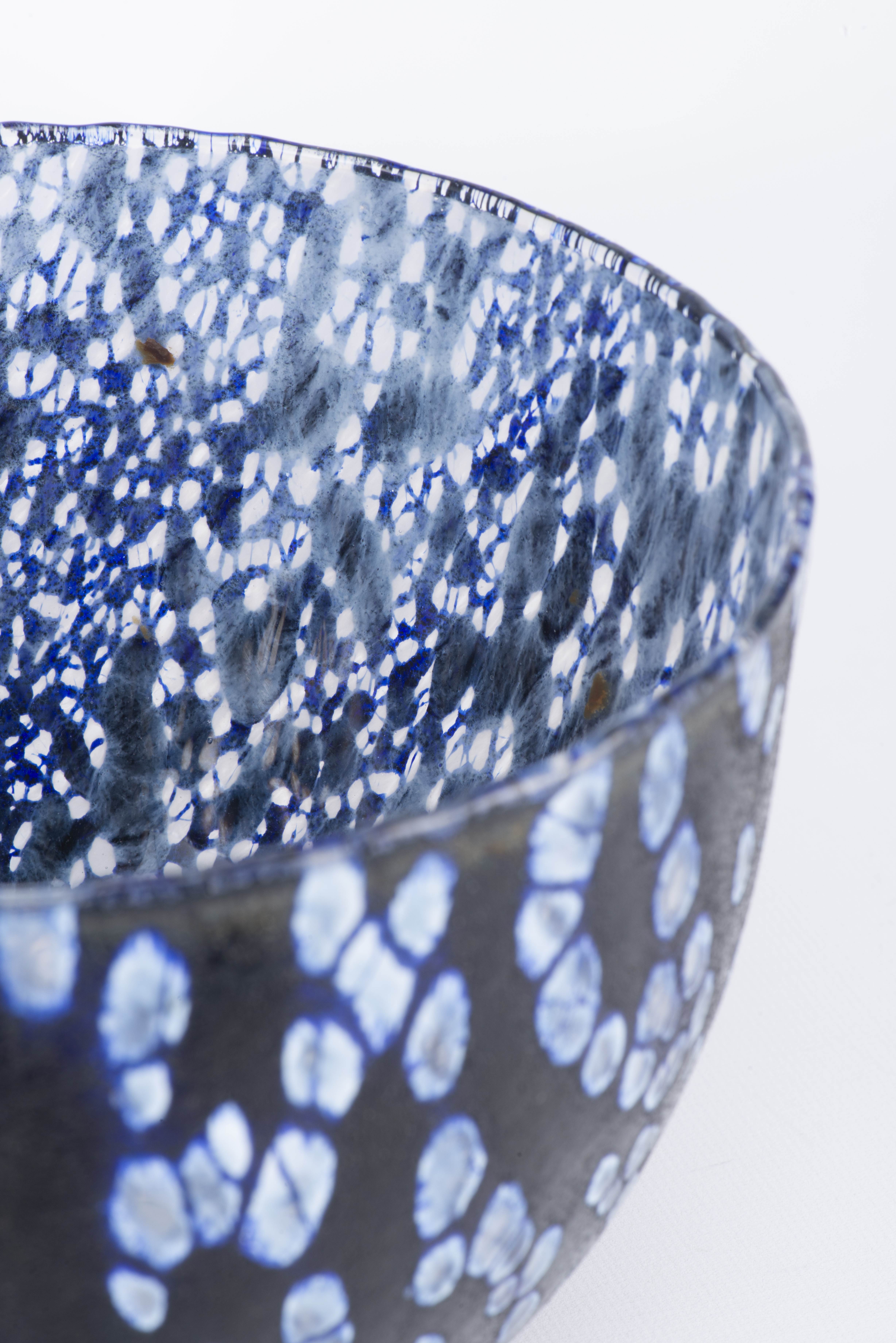 Oiva TOIKKA (1931-2019), bol en verre bleu foncé "Tunturissa" à décor bullé édité par Nuutajärvi Finland.