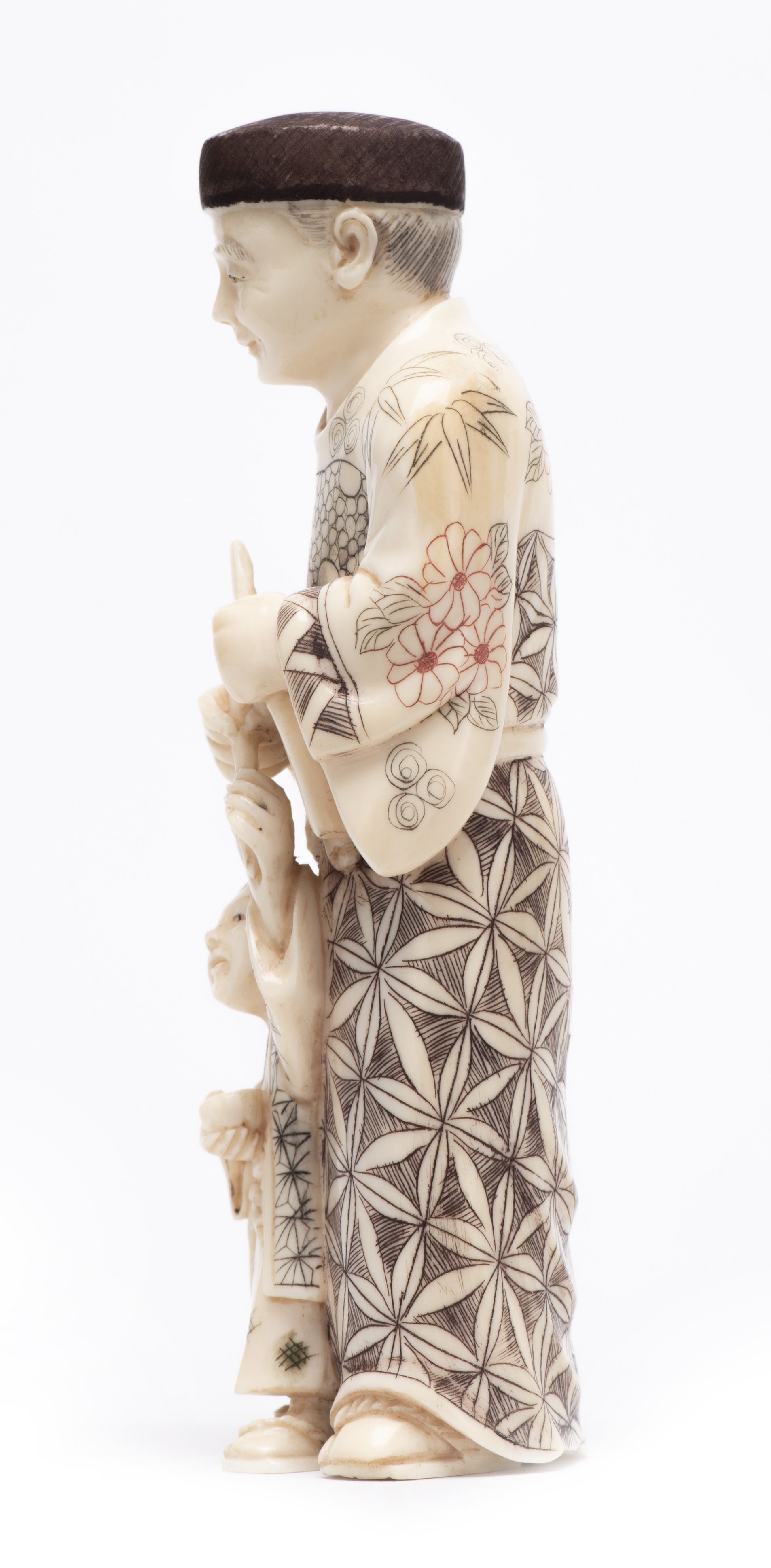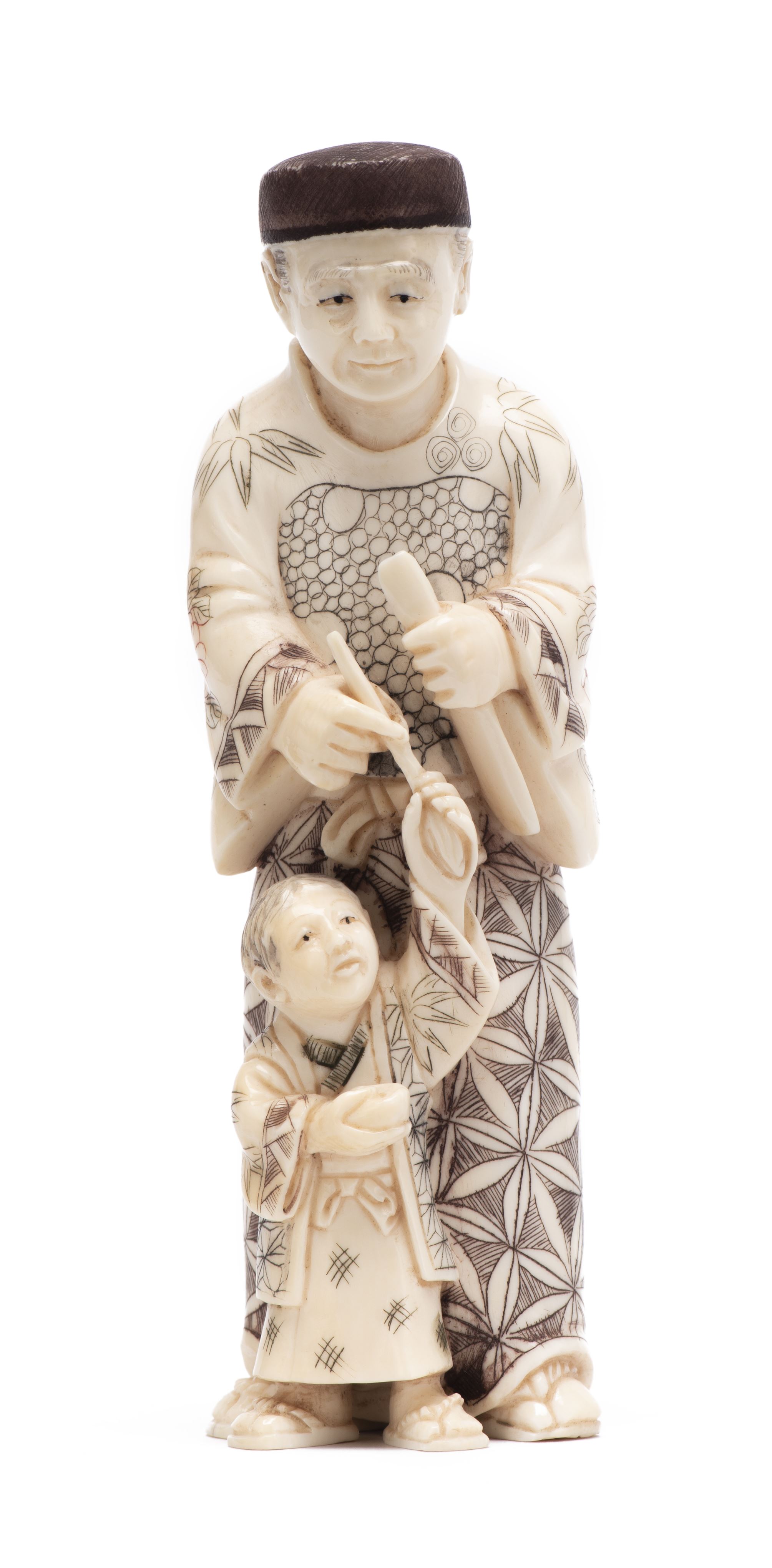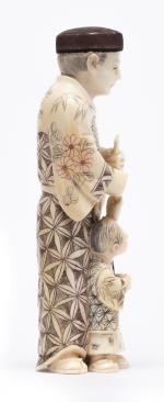 Okimono en ivoire représentant un homme donnant un pinceau à un enfant
