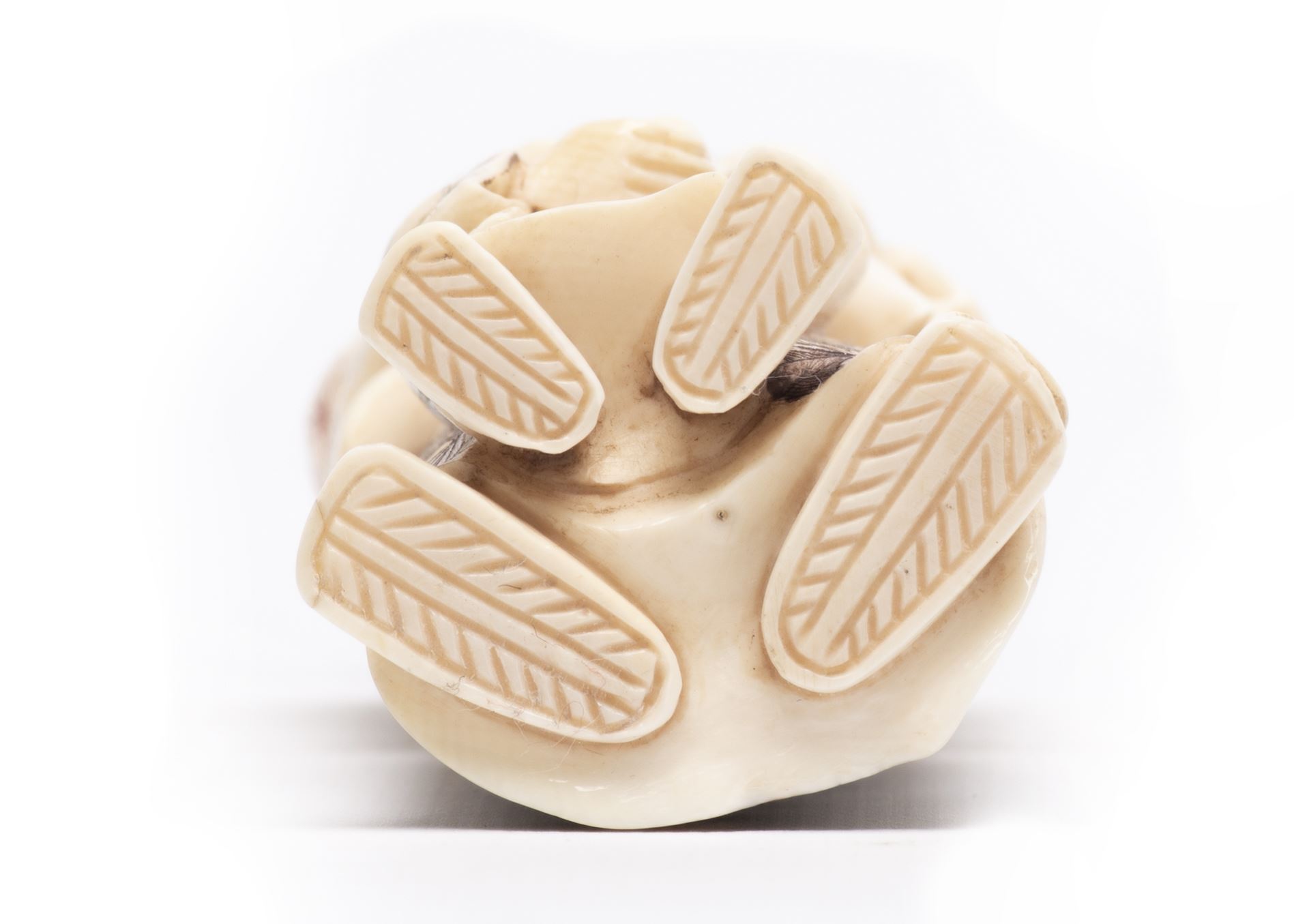 Okimono représentant un homme donnant un pinceau à un enfant. Ivoire.