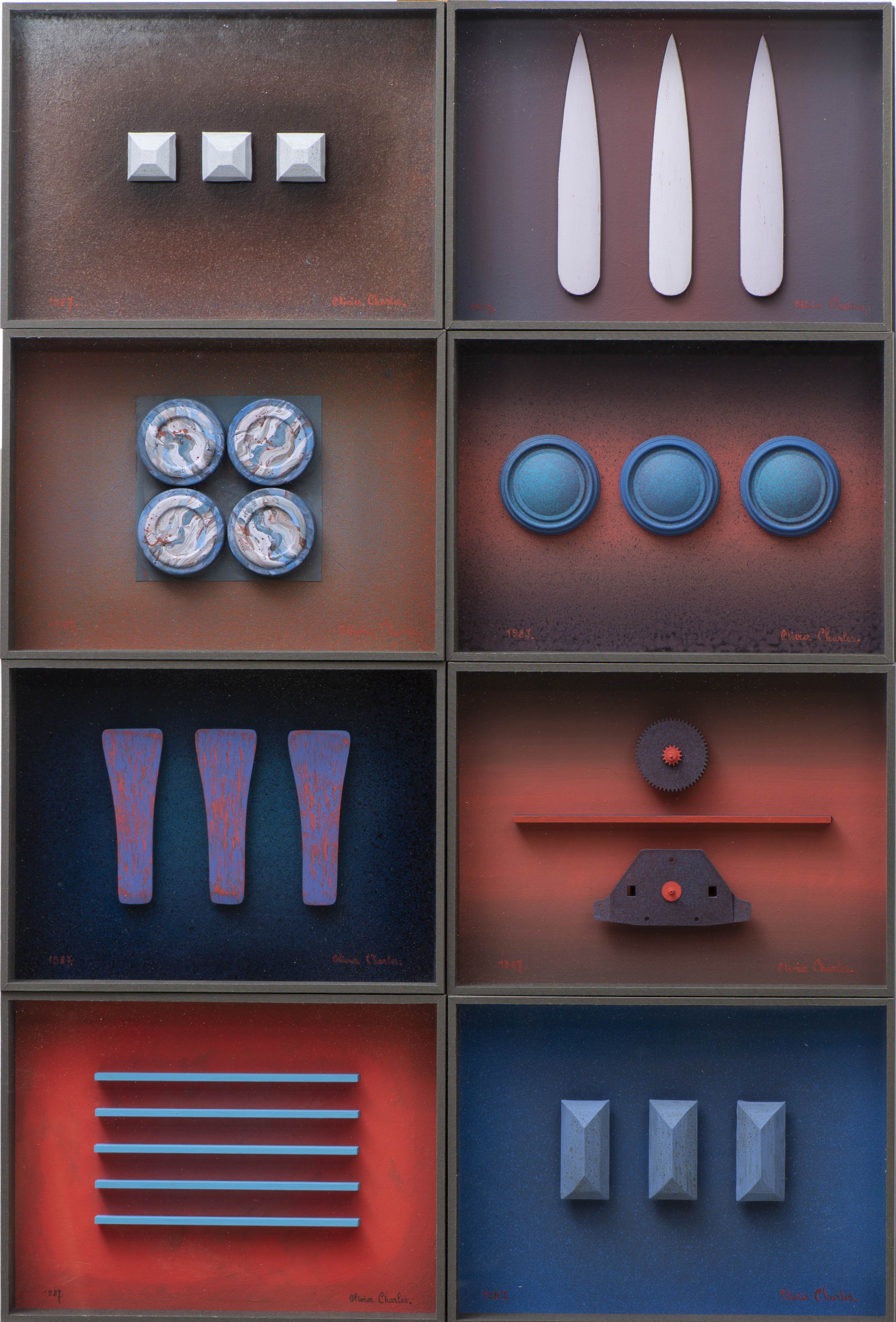Olivier CHARLES (1931) "Abstrait" technique mixte de formes dans des modules, signé en bas à droite dans chaque module.
