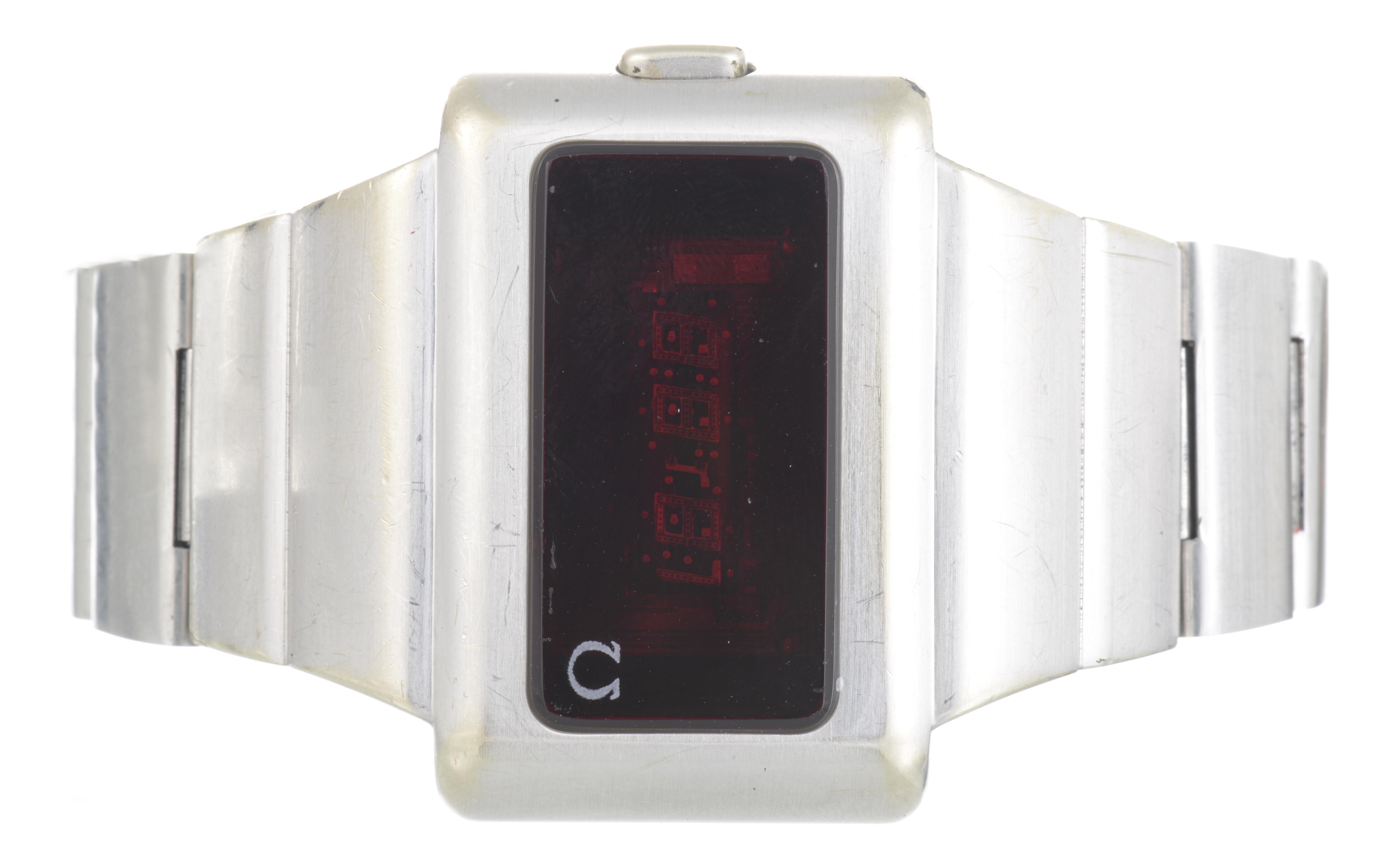 OMEGA rare montre bracelet d'homme en acier inox Modell Time Computer II,à bracelet d'origine en acier inox et boucle déployante, vers 1974 cal. 1601.
