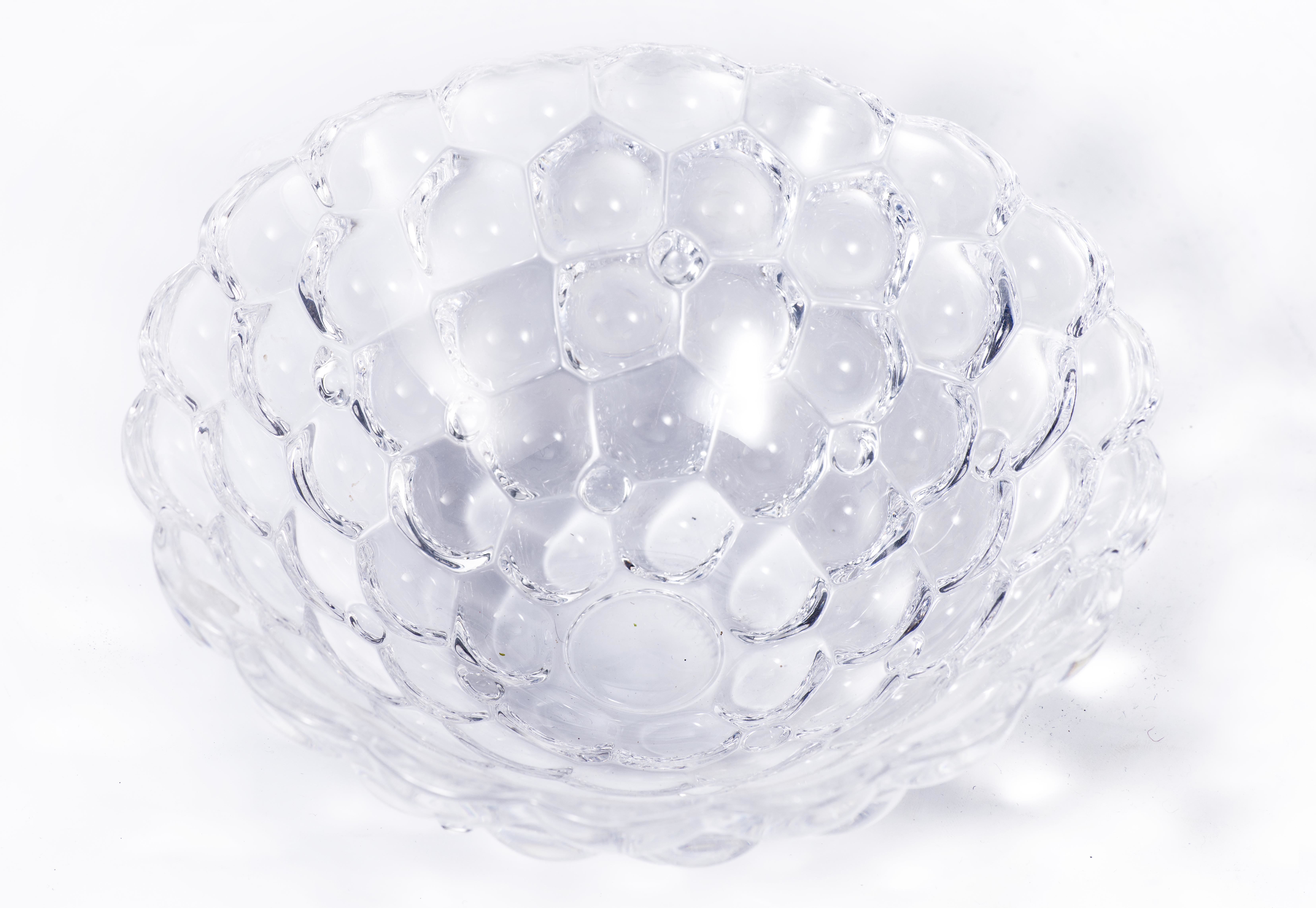 - 2 grands vide-poches en cristal à motifs d'alvéoles signés sous la base, H. 7.5 cm & Diam. 19 cm
