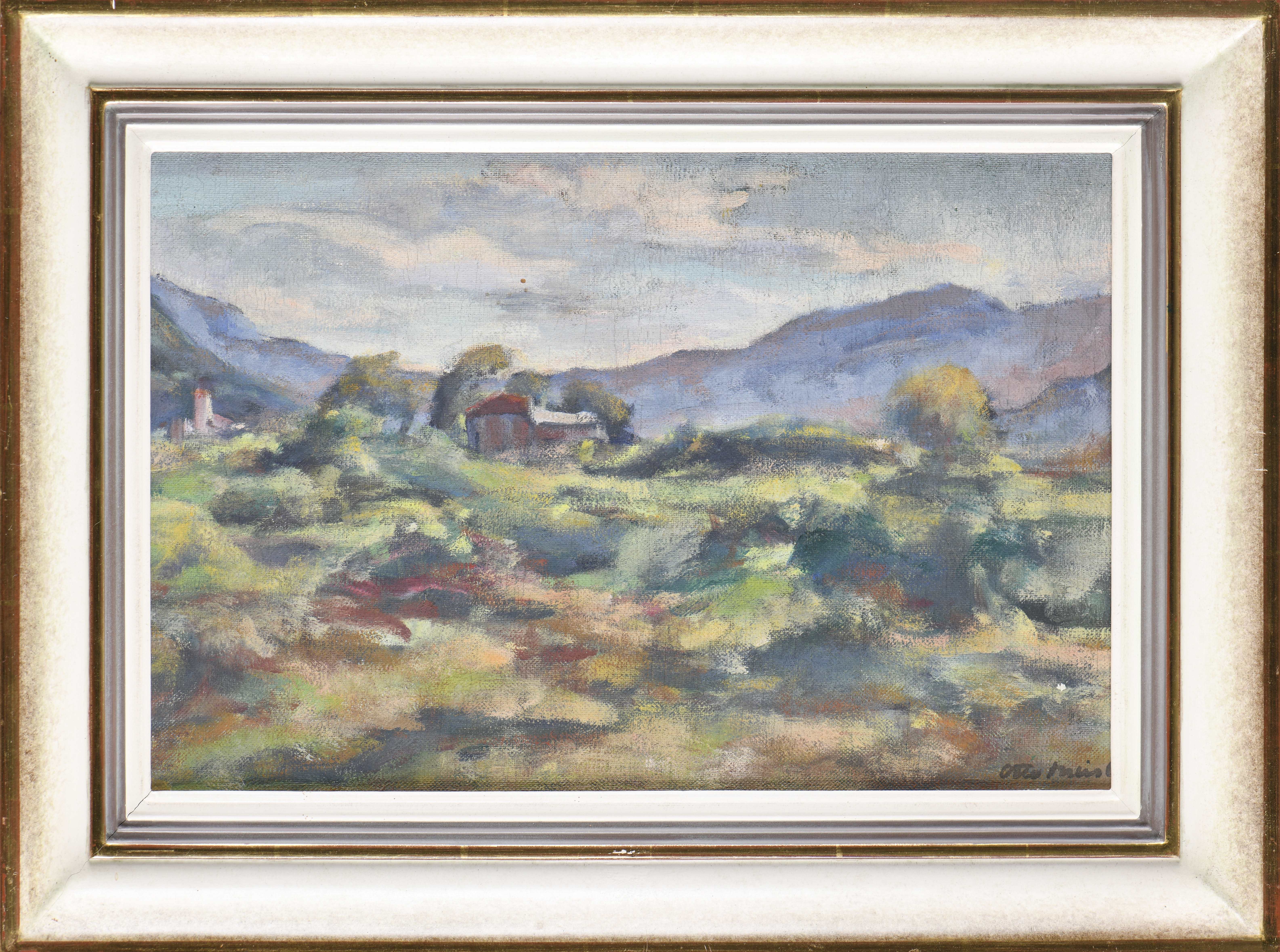 Otto MEISTER (1888-1969) "Vers Caslano", huile sur isorel, signé en bas à droite et isncrit au dos n°311 / 1934.