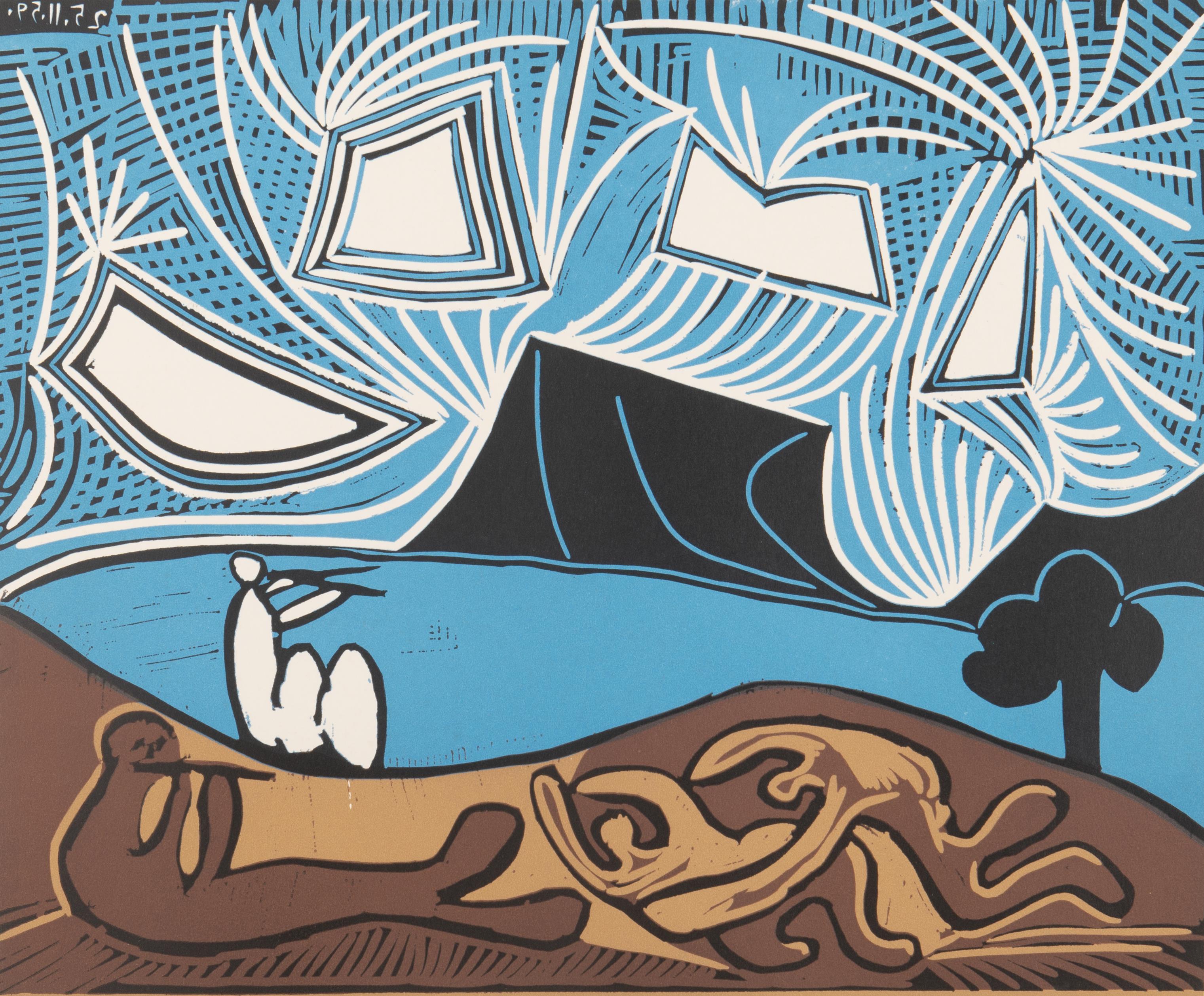 Pablo PICASSO (1881-1973, d'après) "Bacchanale", linogravure, édition le Cercle d'art, 25/11/59.