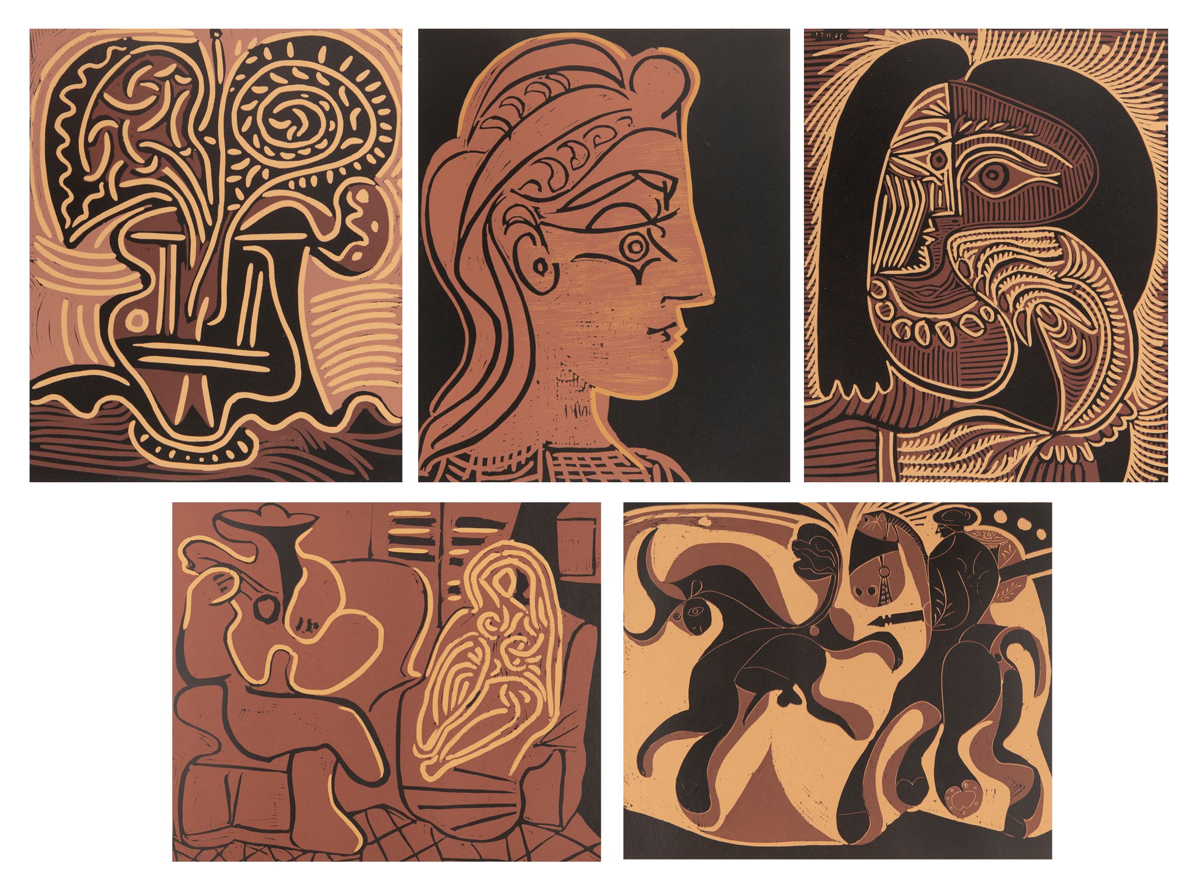 Pablo PICASSO (1881-1973, d'après), cinq linogravures