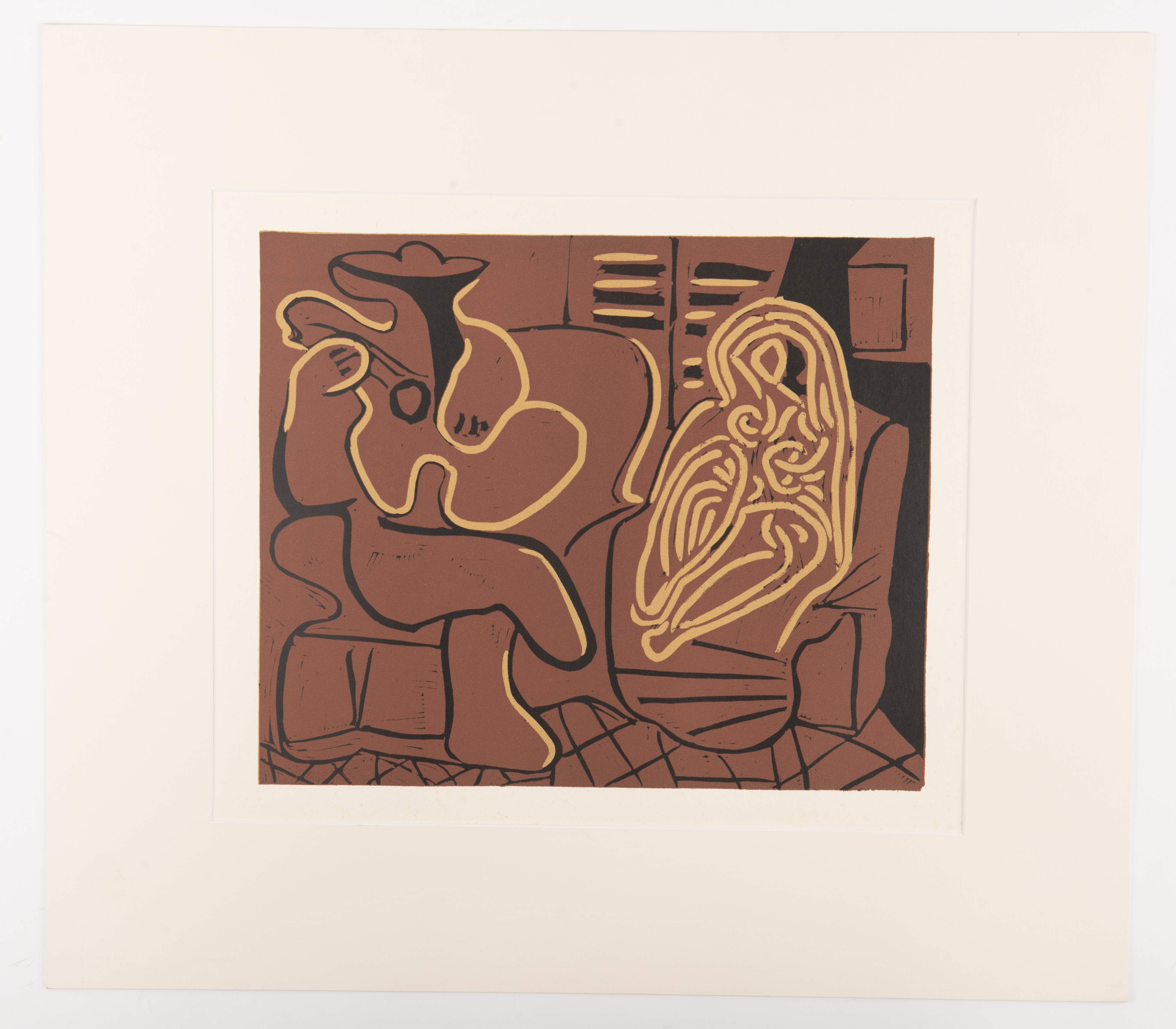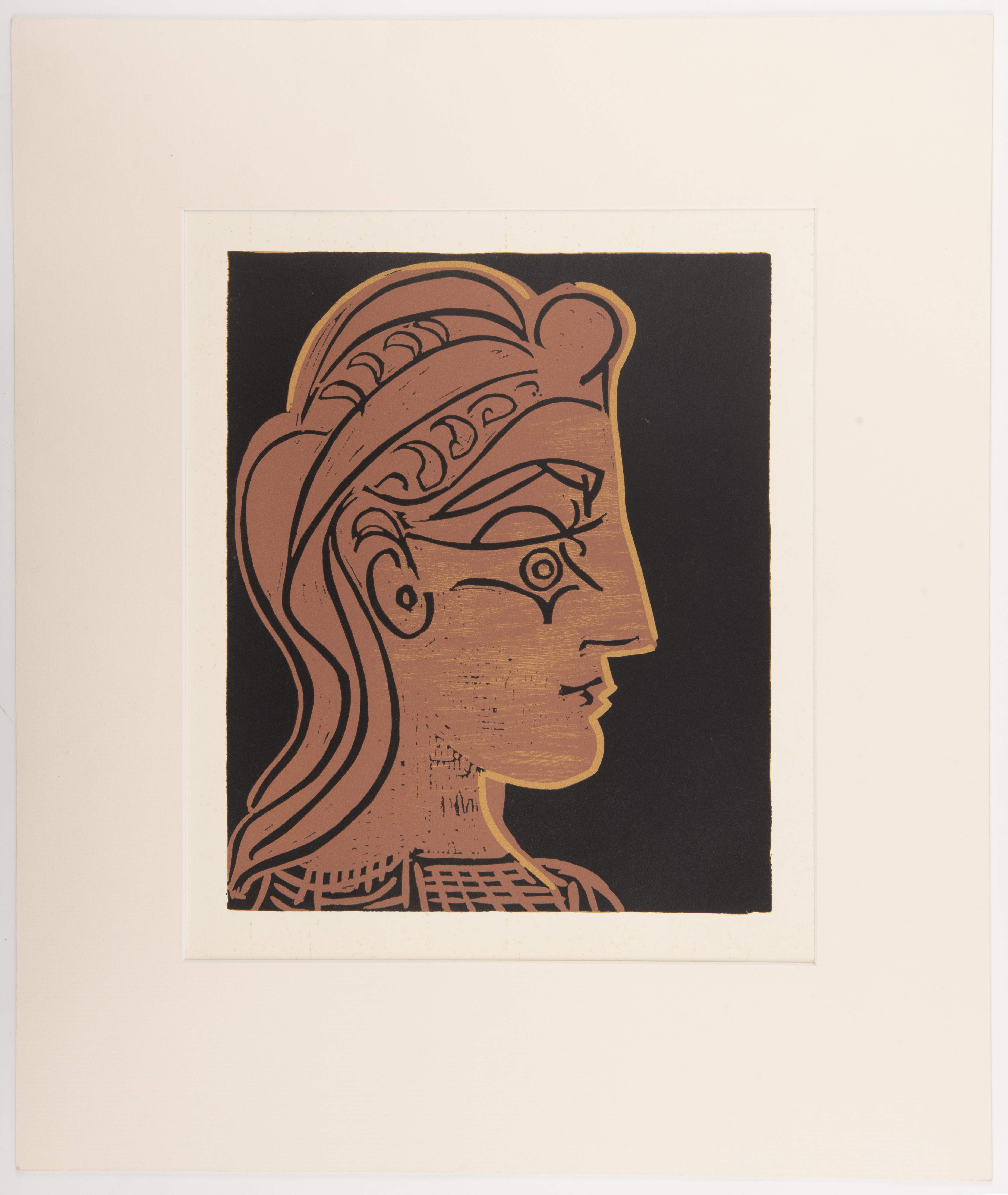 Pablo PICASSO (1881-1973, d'après), cinq linogravures, édition le Cercle d'art, 1959 :