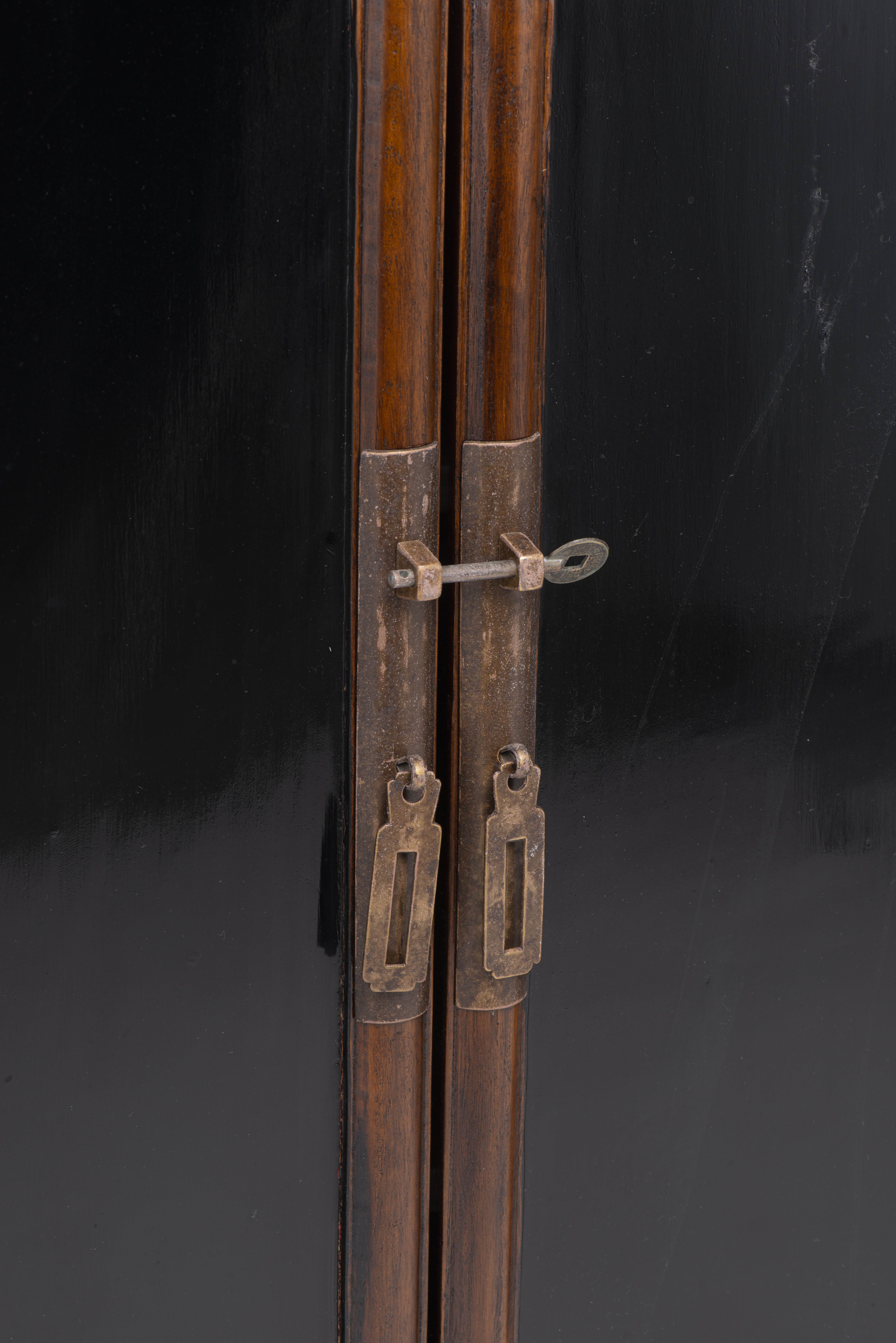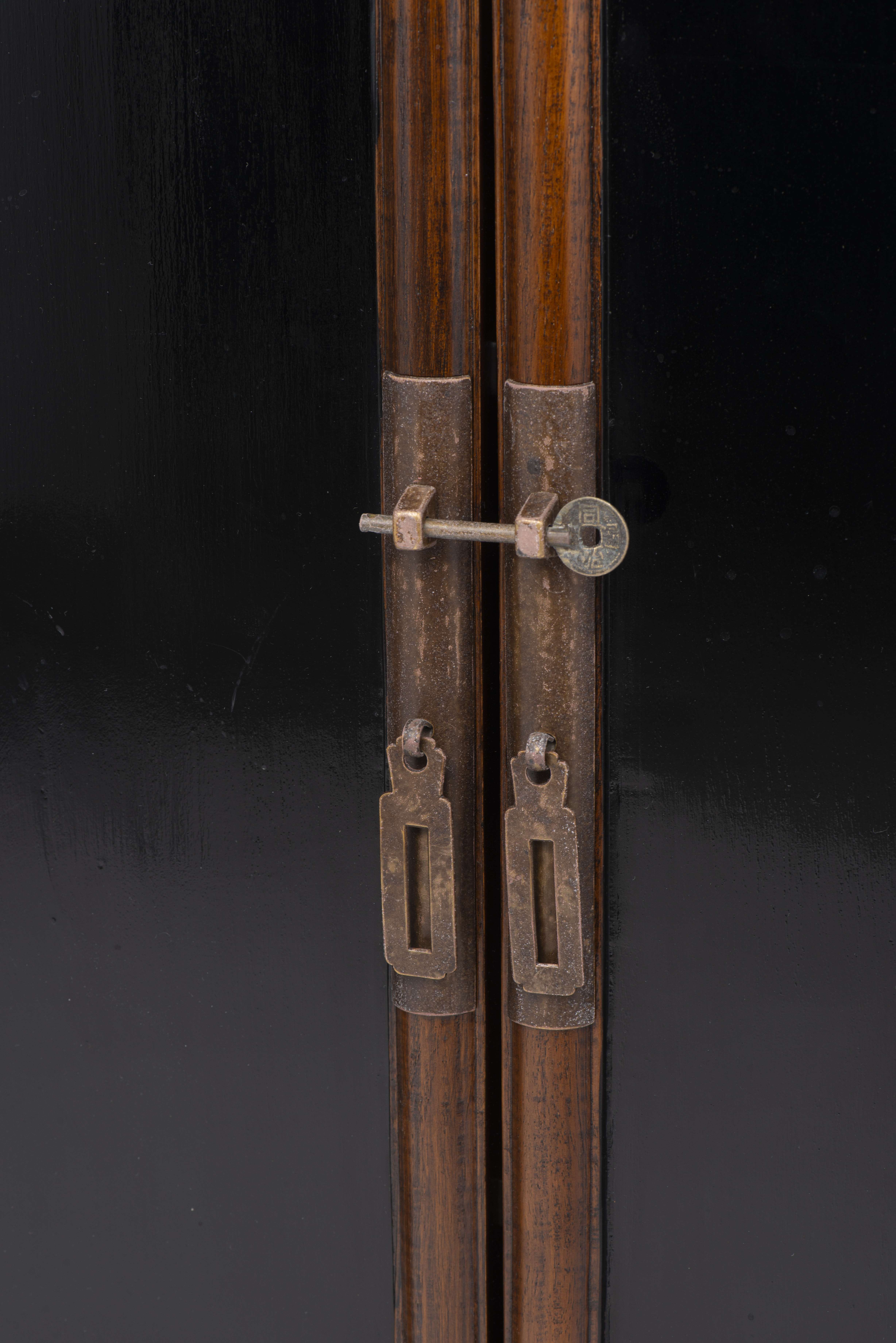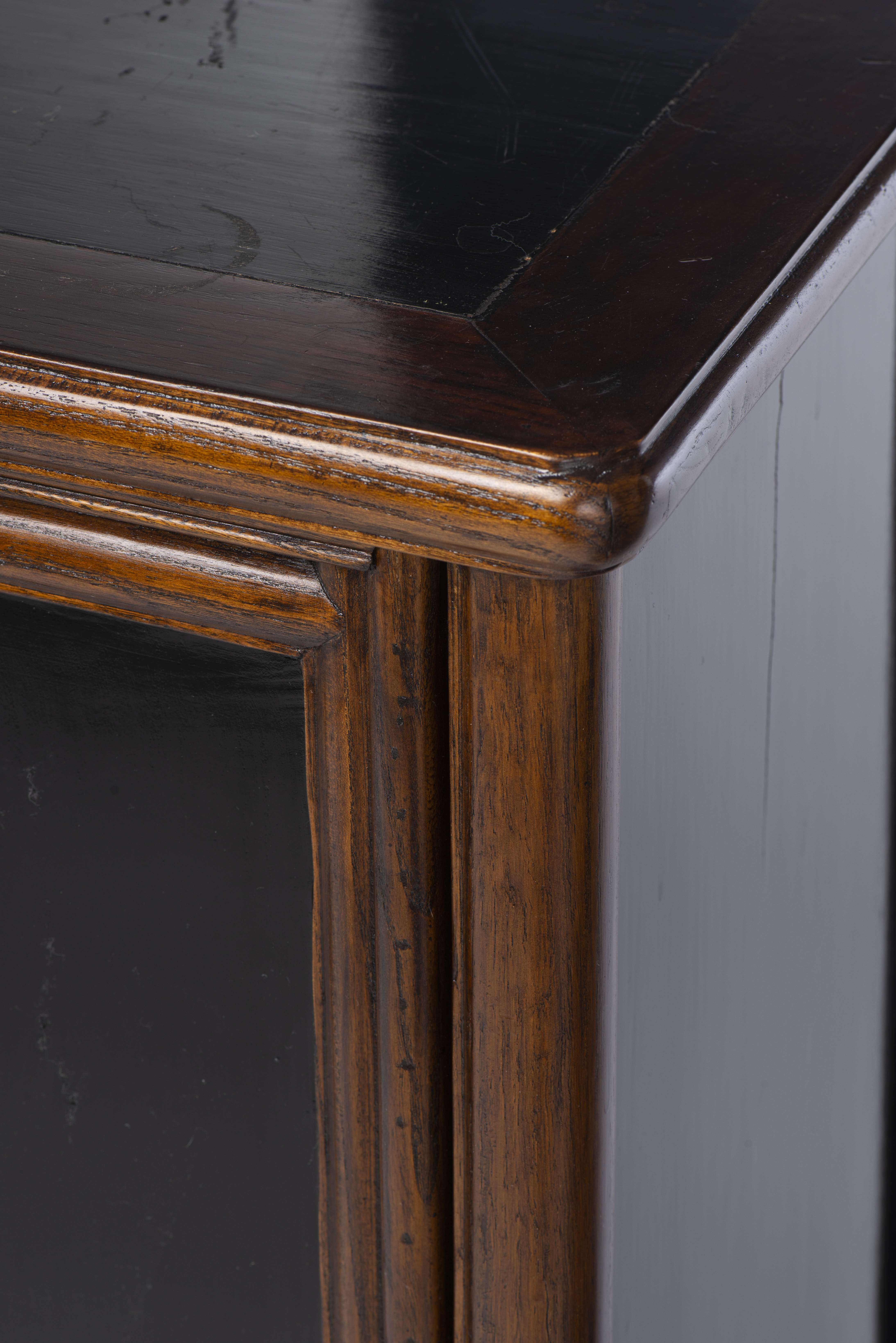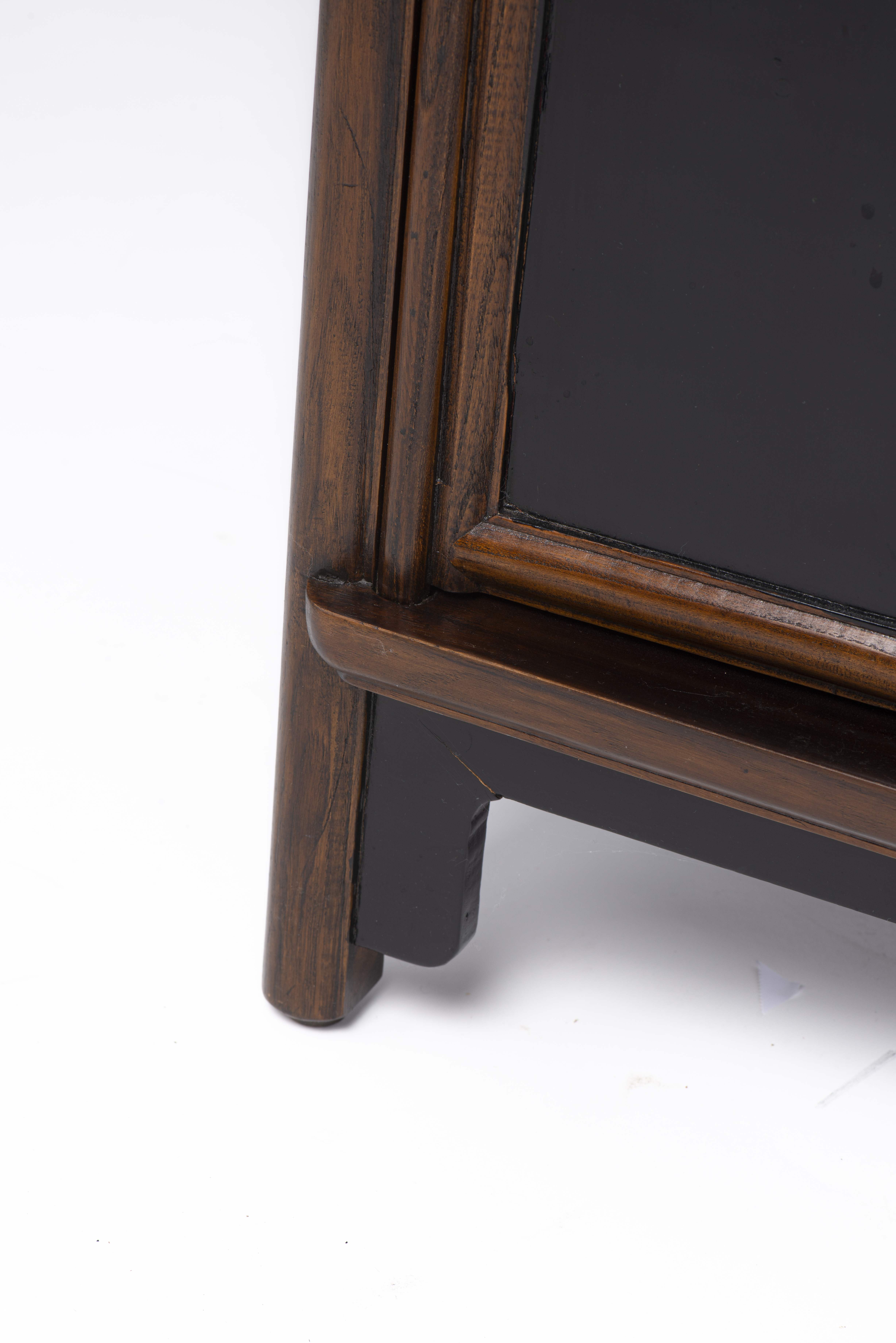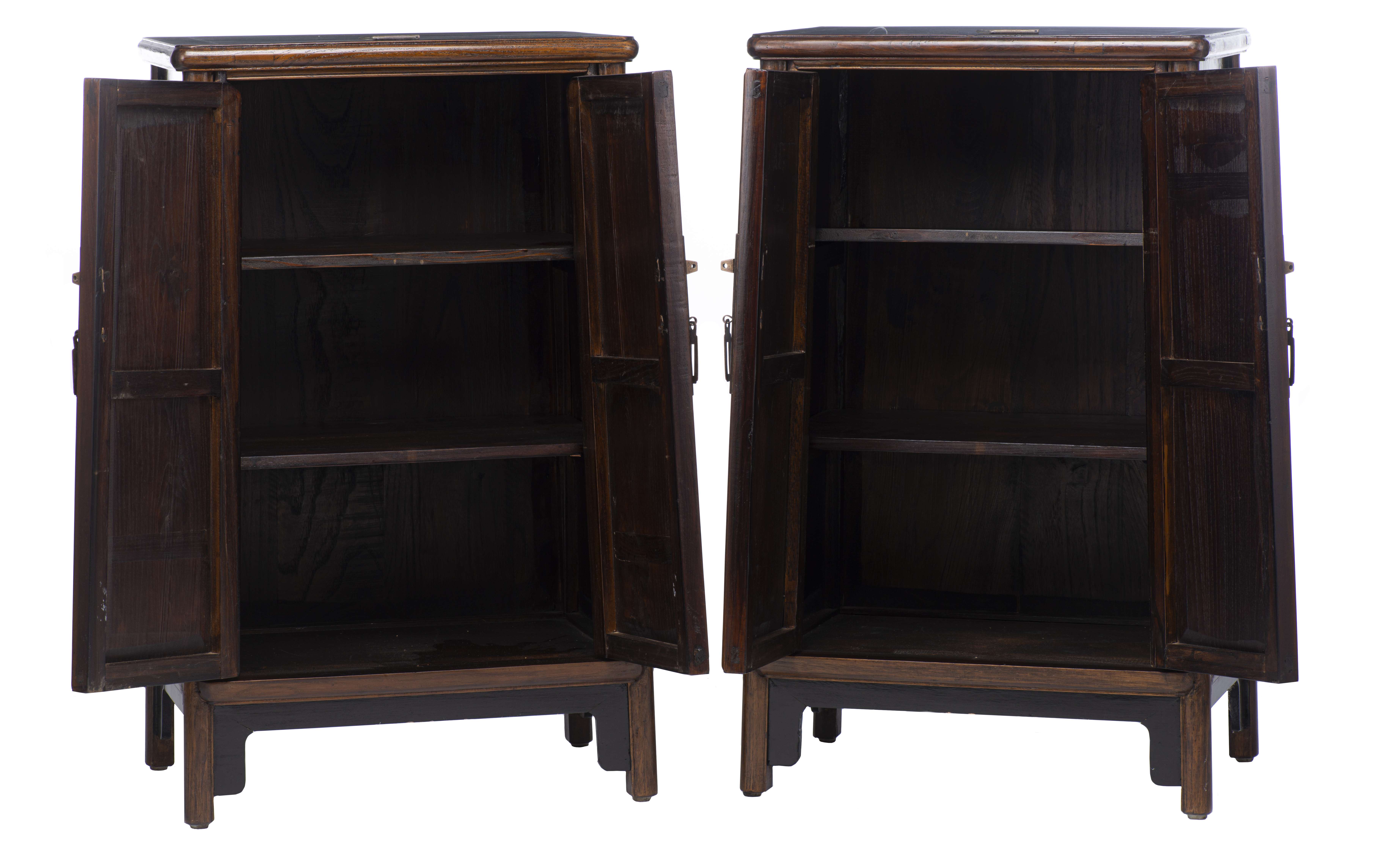 Paire d'armoires chinoises en Yu mu (orme) et en partie laquée noire, intérieur à deux rayonnages.