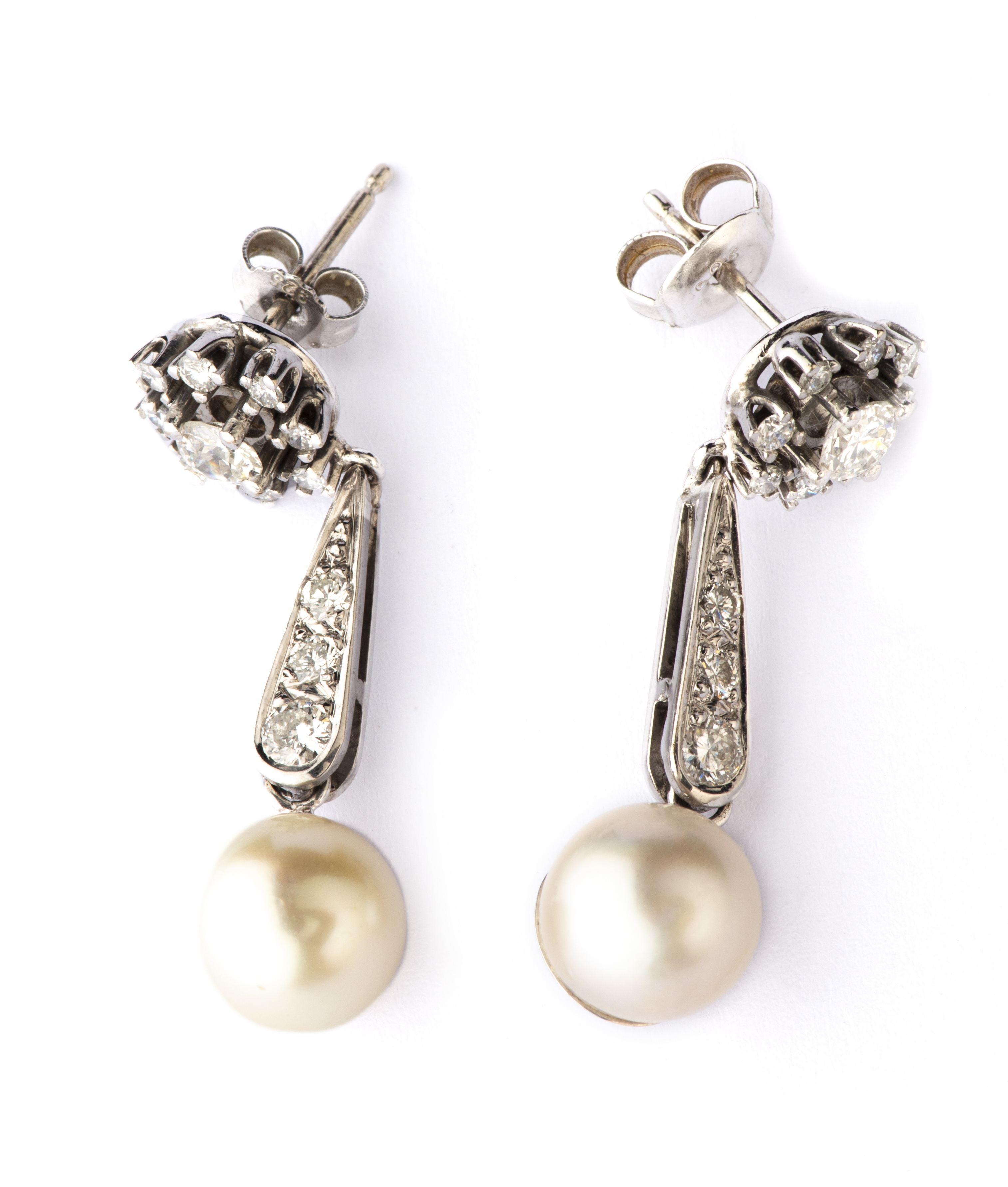 Paire de boucles d'oreilles en or, diamants et perles
