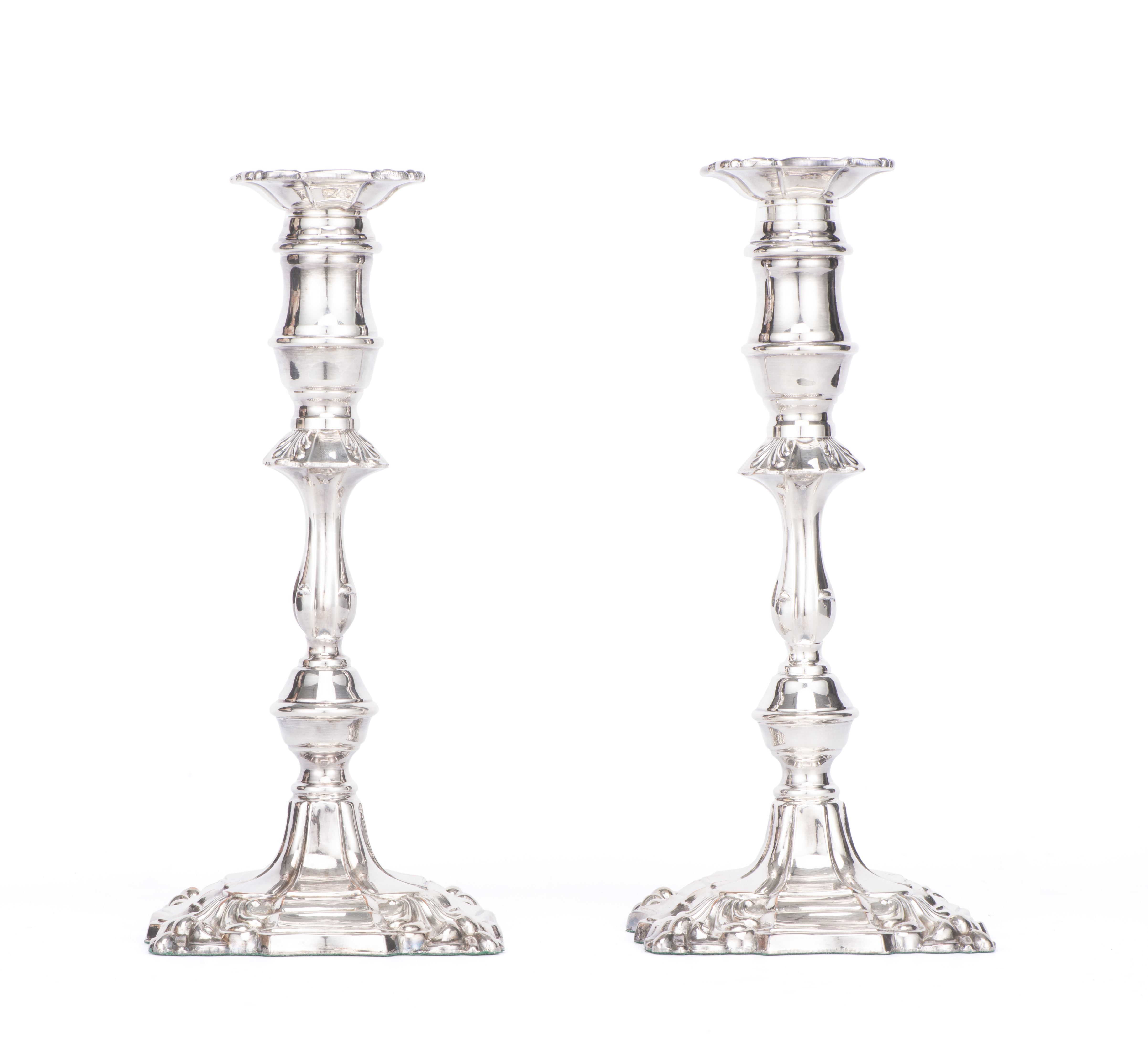 Paire de bougeoirs en métal argenté sur cuivre made in England vers 1900.