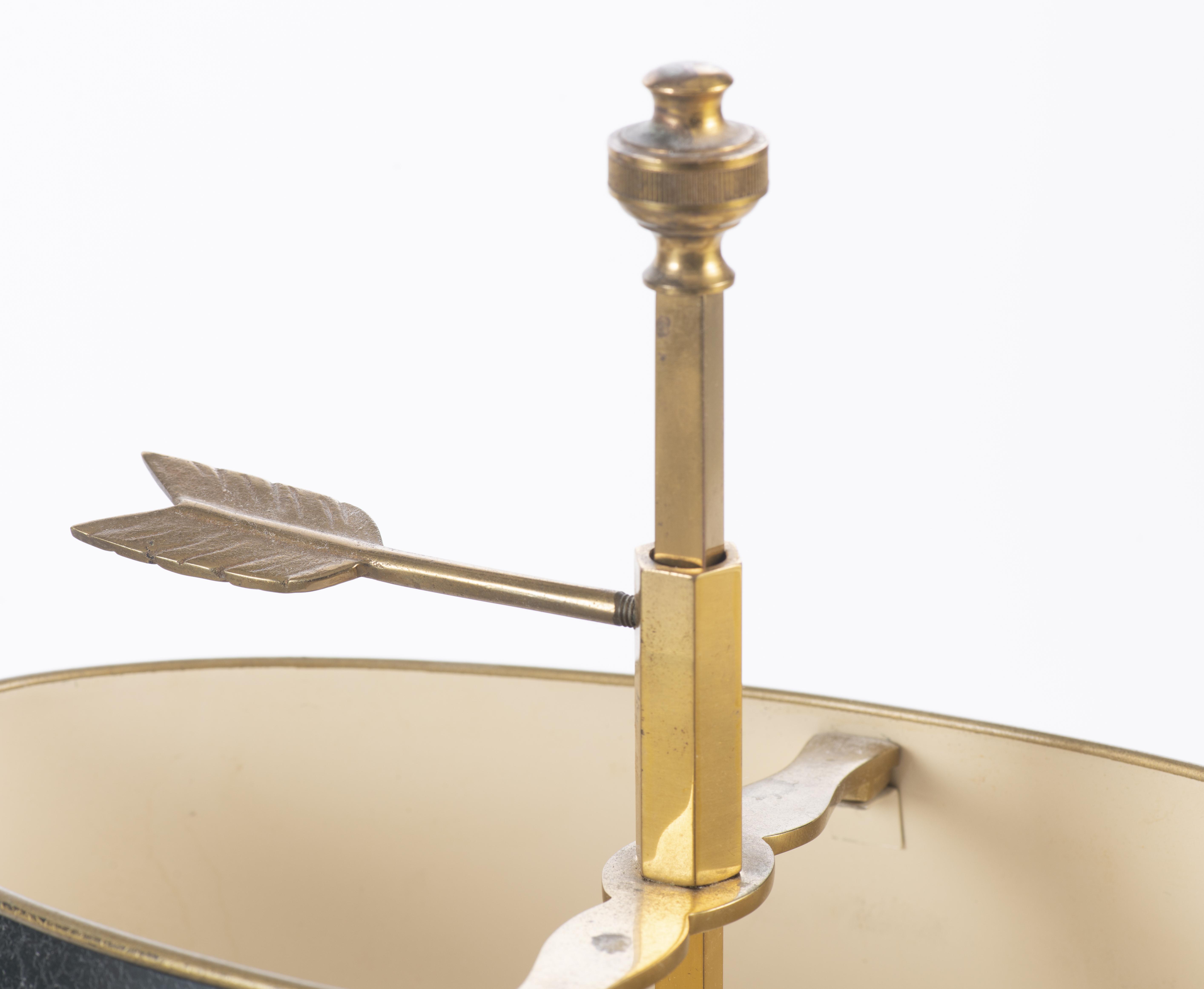 Paire de lampes bouillottes à 2 feux de style Empire en laiton avec abat-jour oblong en tôle peinte.