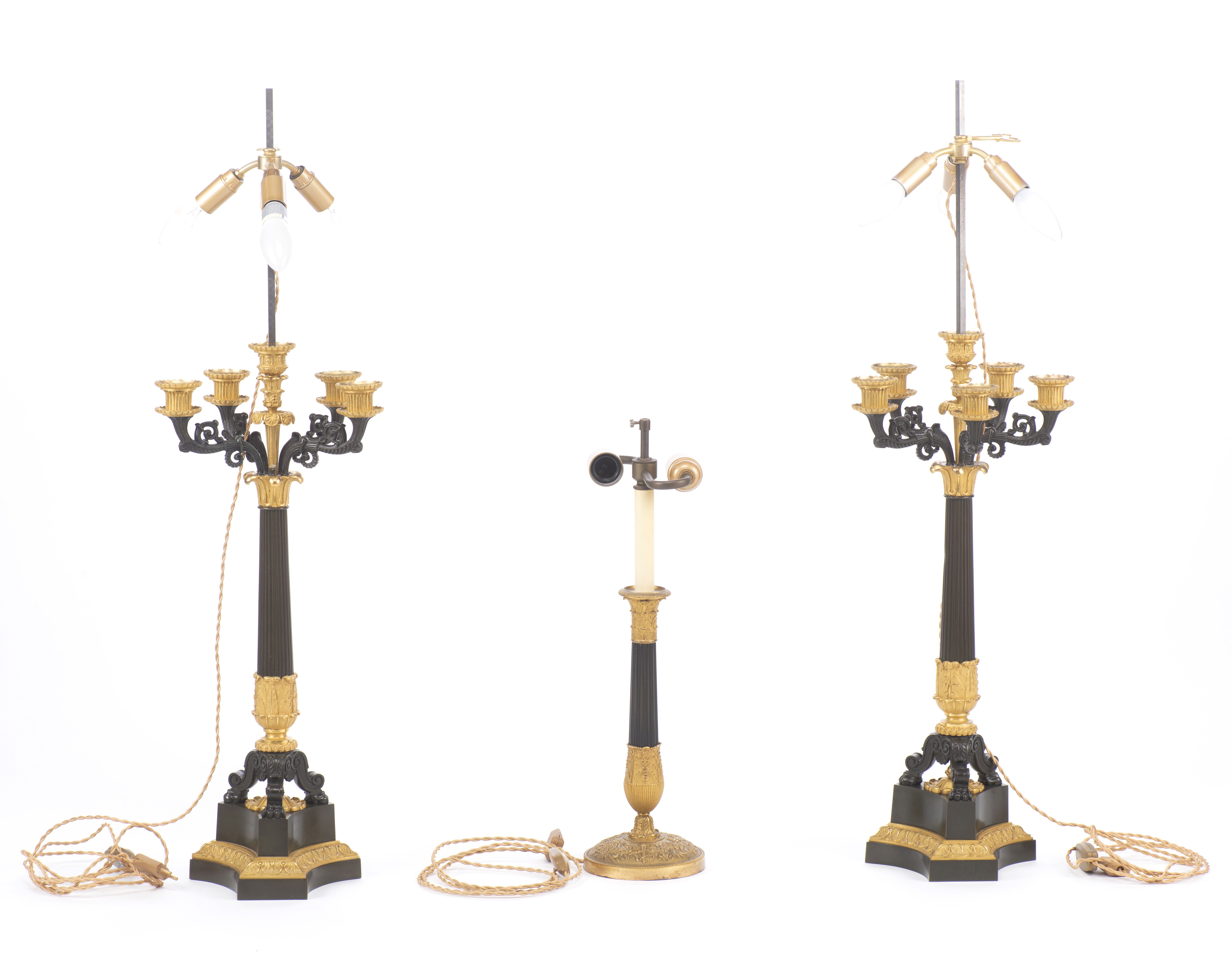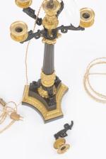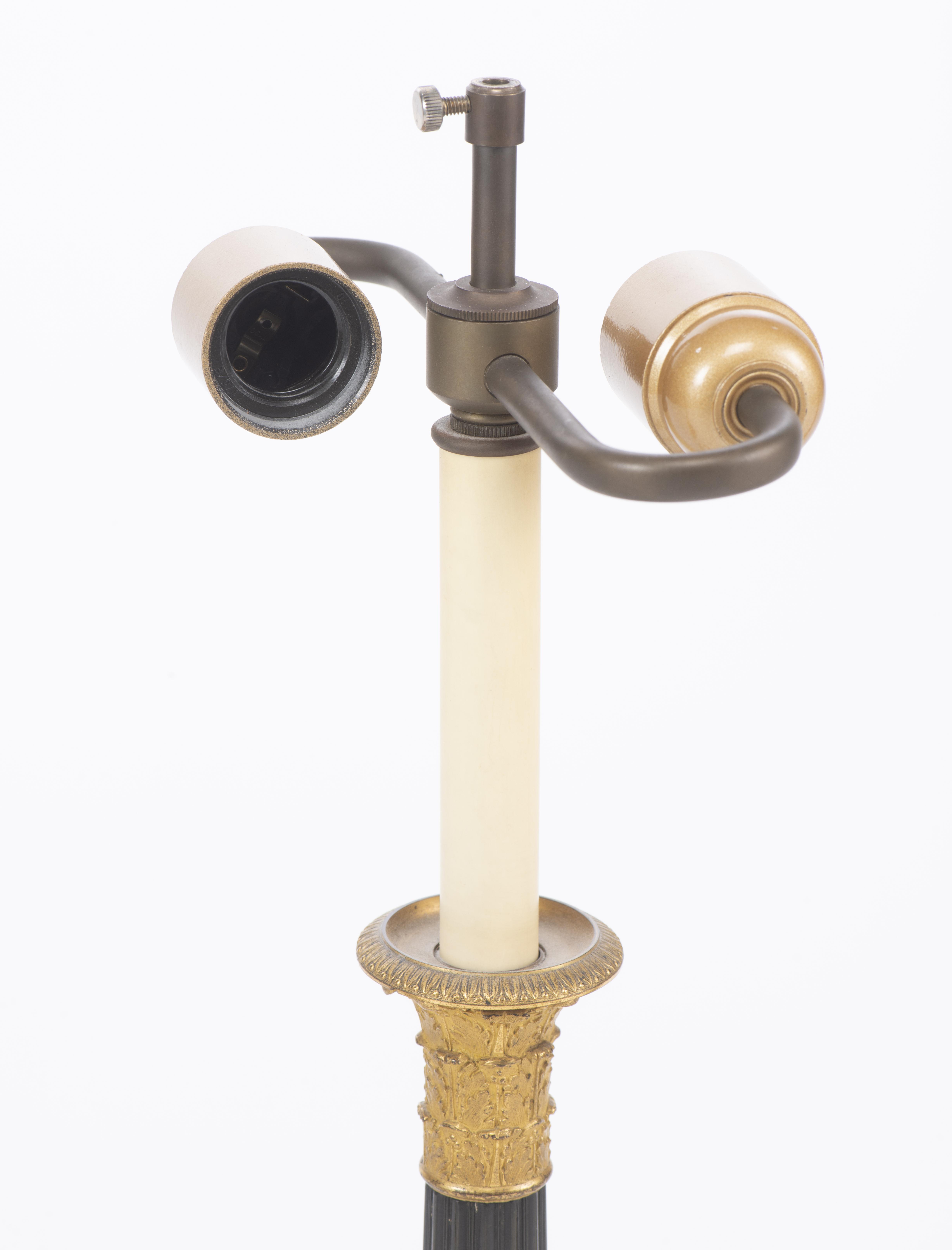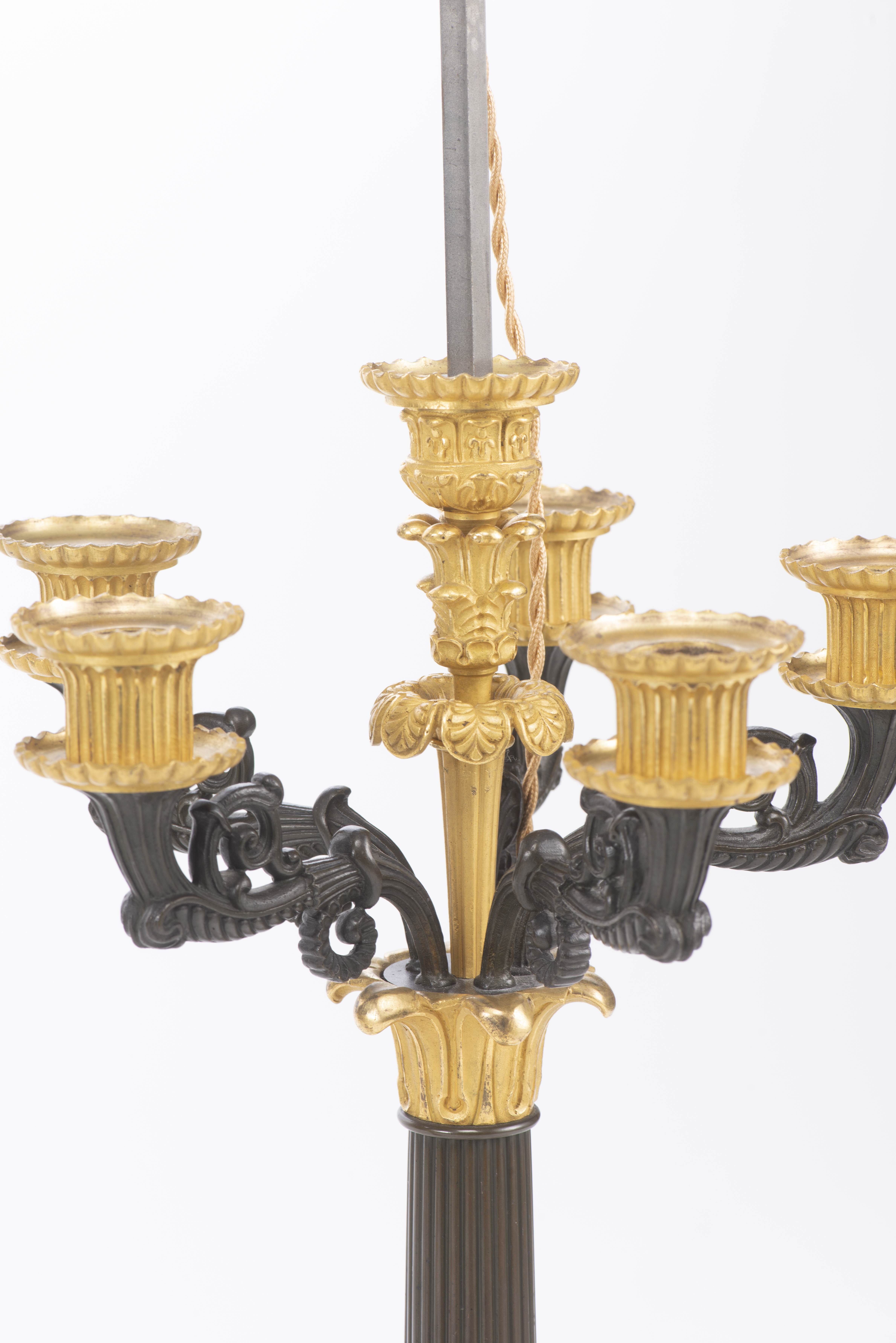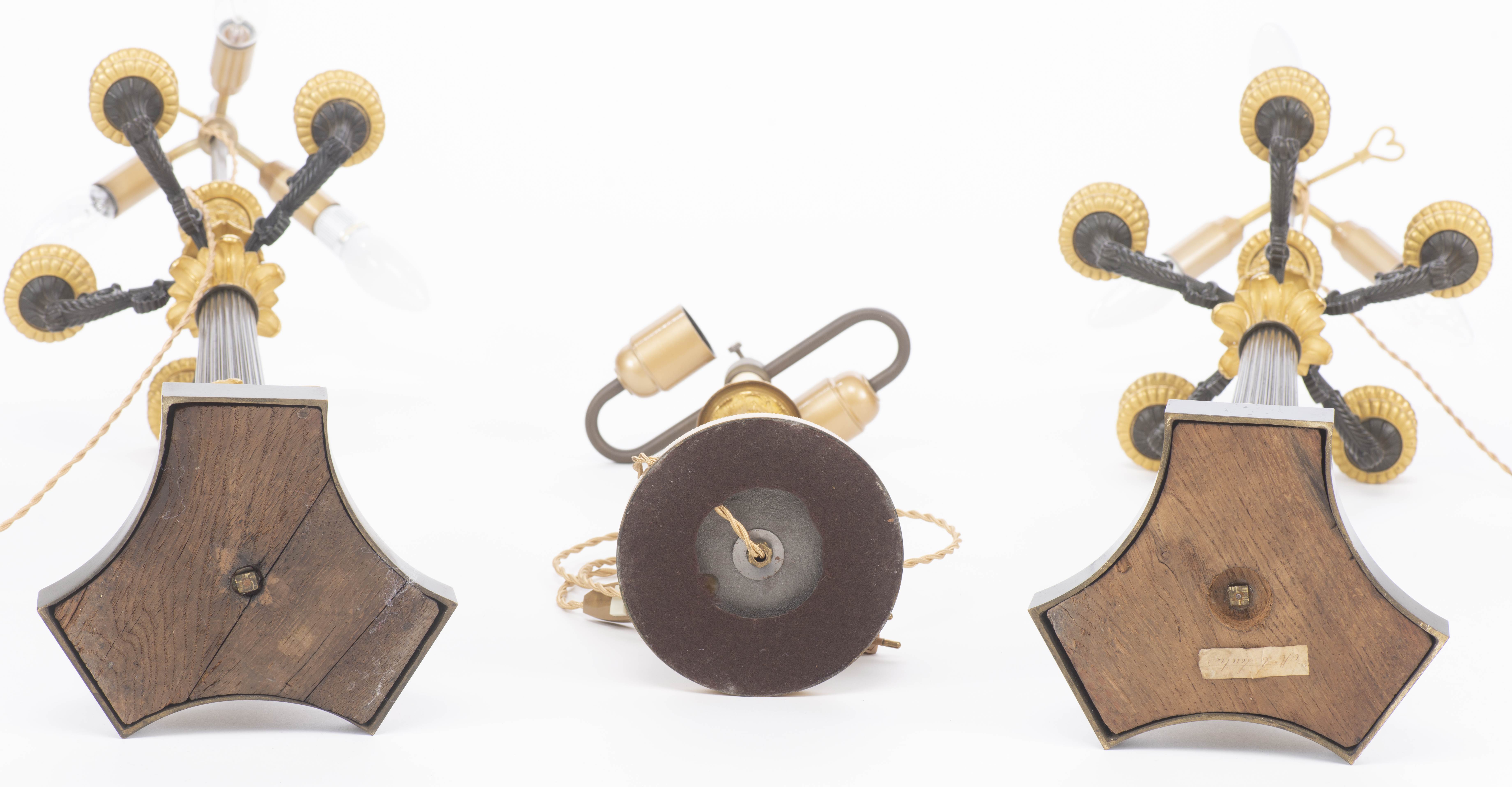 Paire de lampes de style Empire à 6 flammes avec parties en bronze doré.