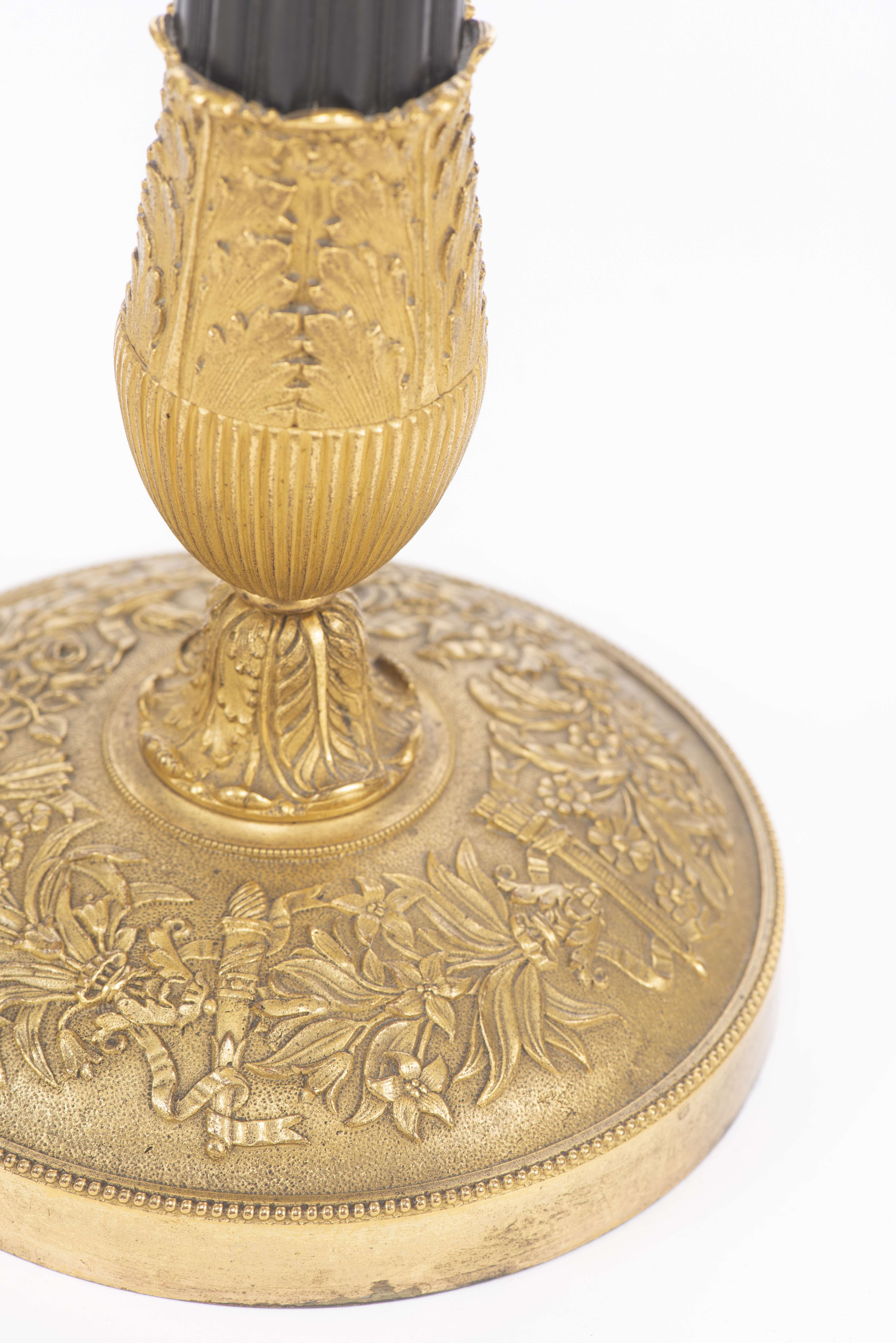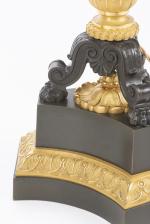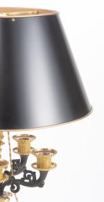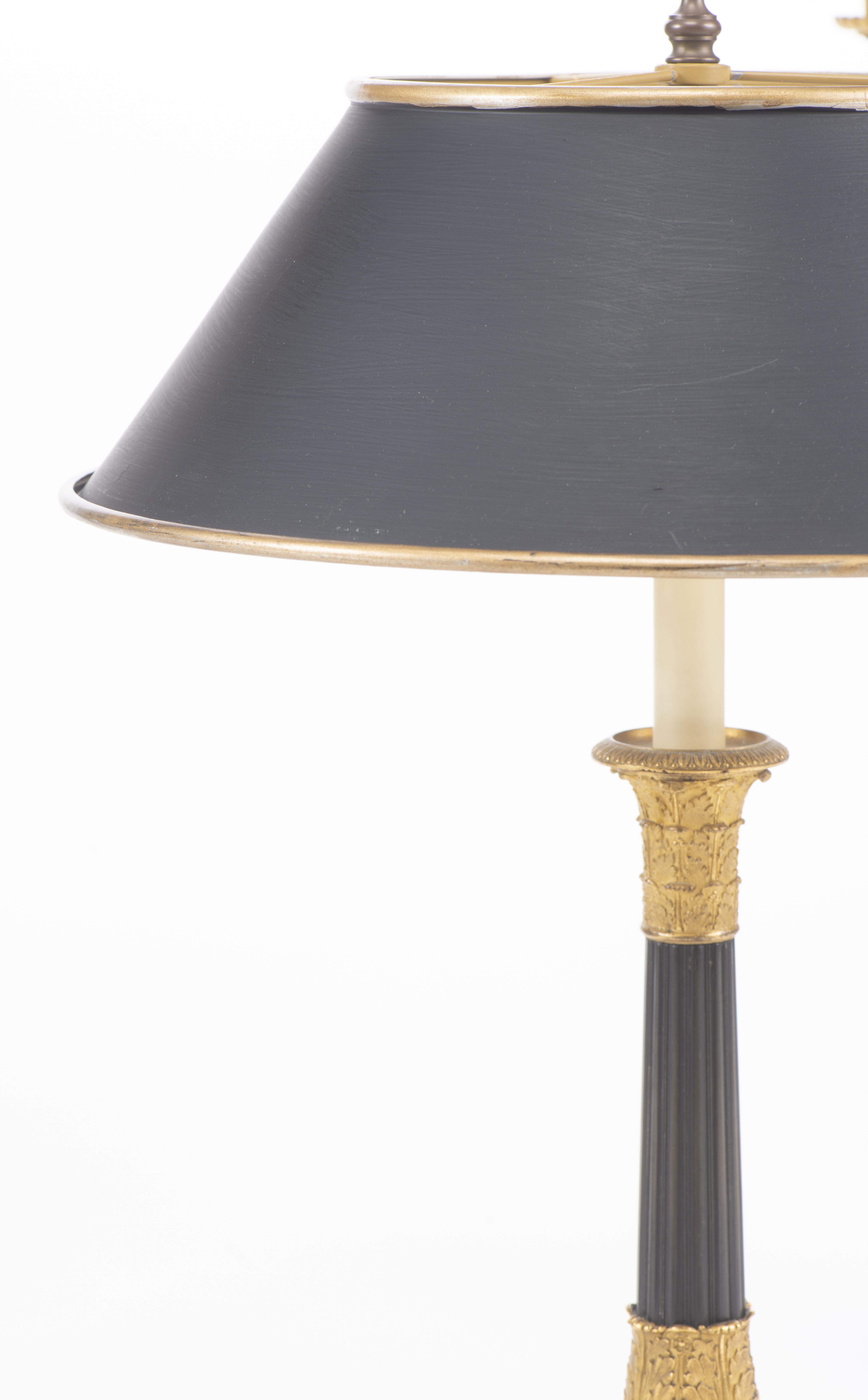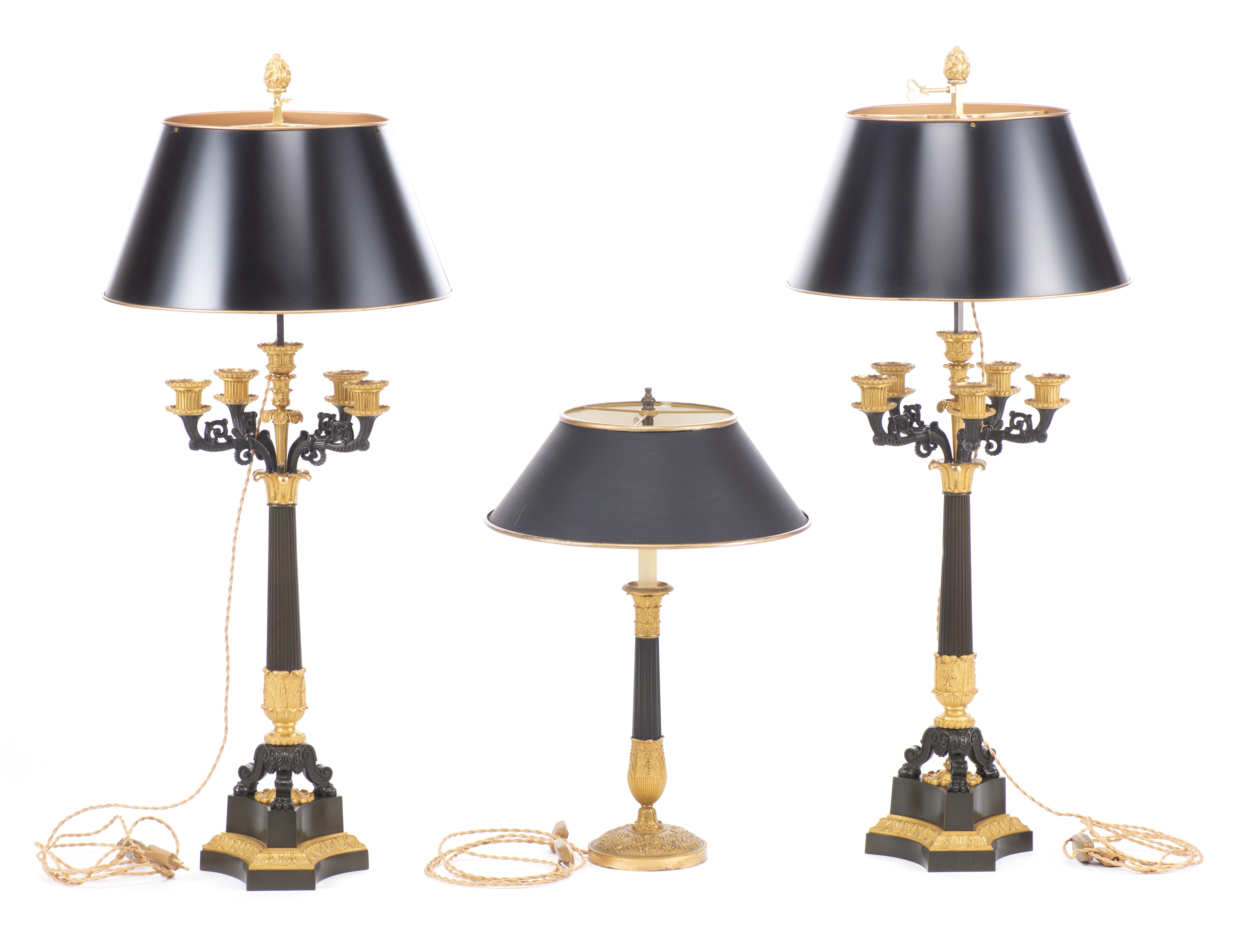 Paire de lampes de style Empire à 6 flammes avec parties en bronze doré.