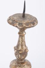 Paire de pique-cierges en bois doré, XVIIIe.