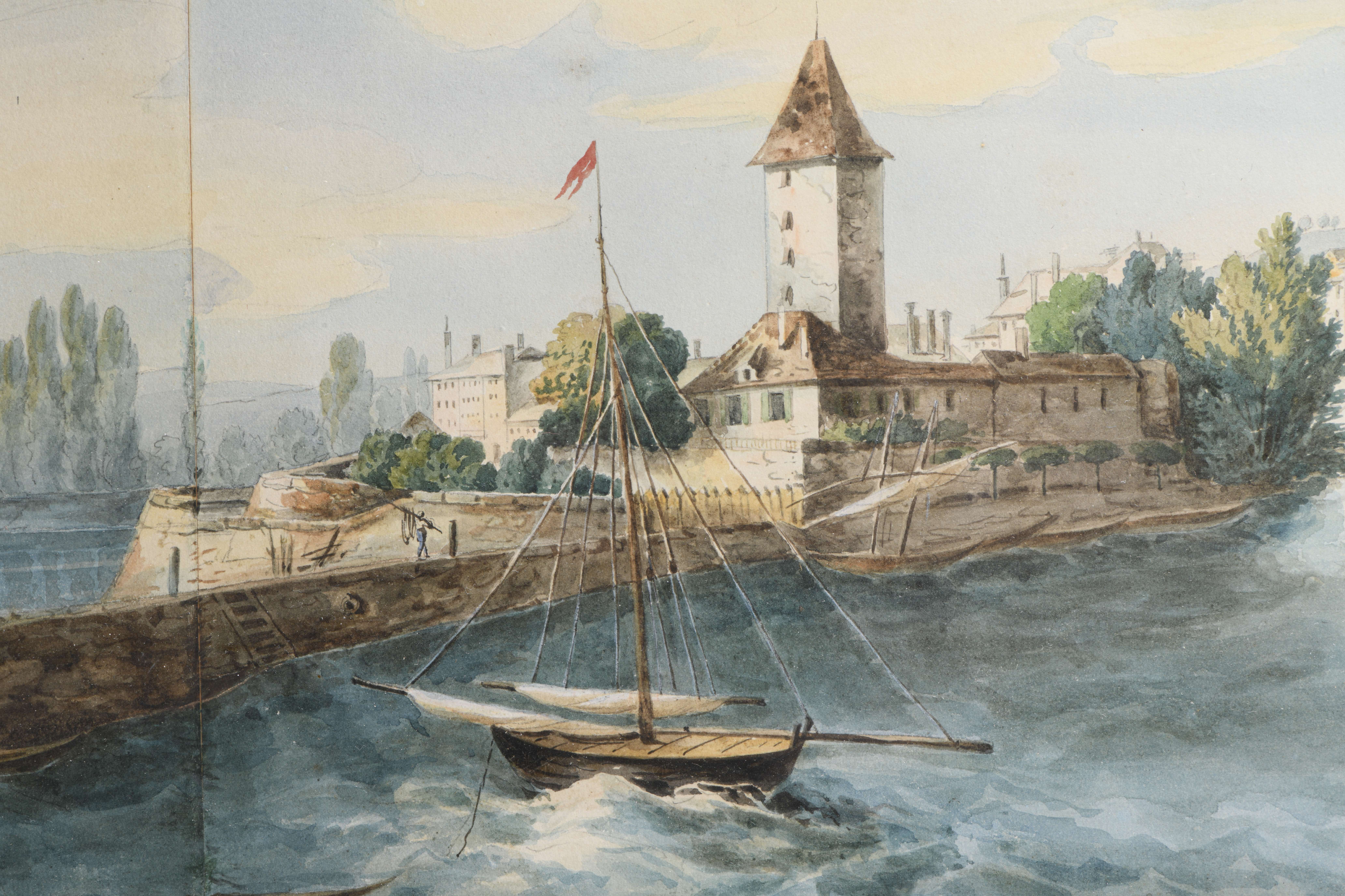 Panorama d'Ouchy XIXe, aquarelle sur papier anonyme.