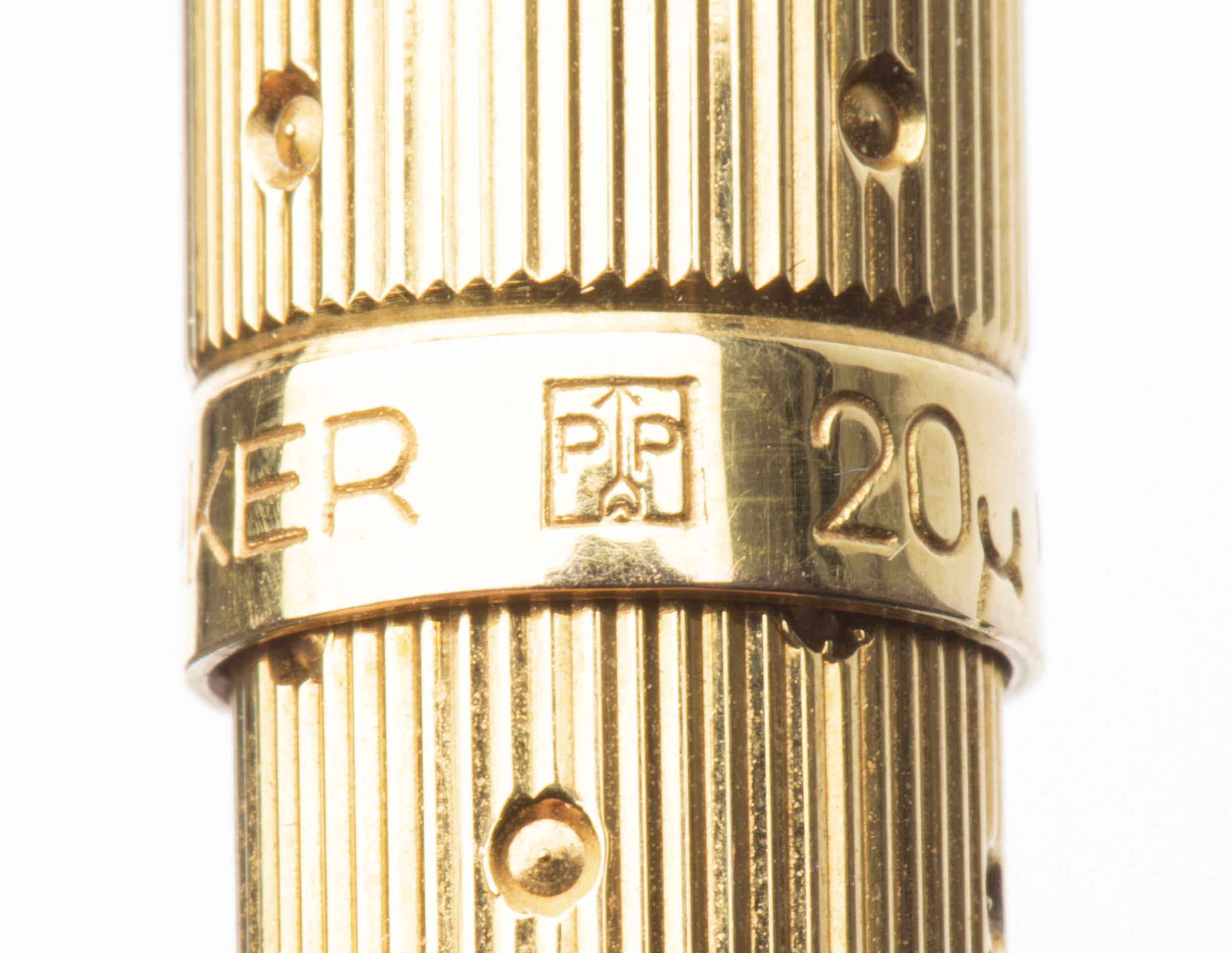 PARKER, stylo-bille plaqué or 20 microns à décor strié à petit points.
