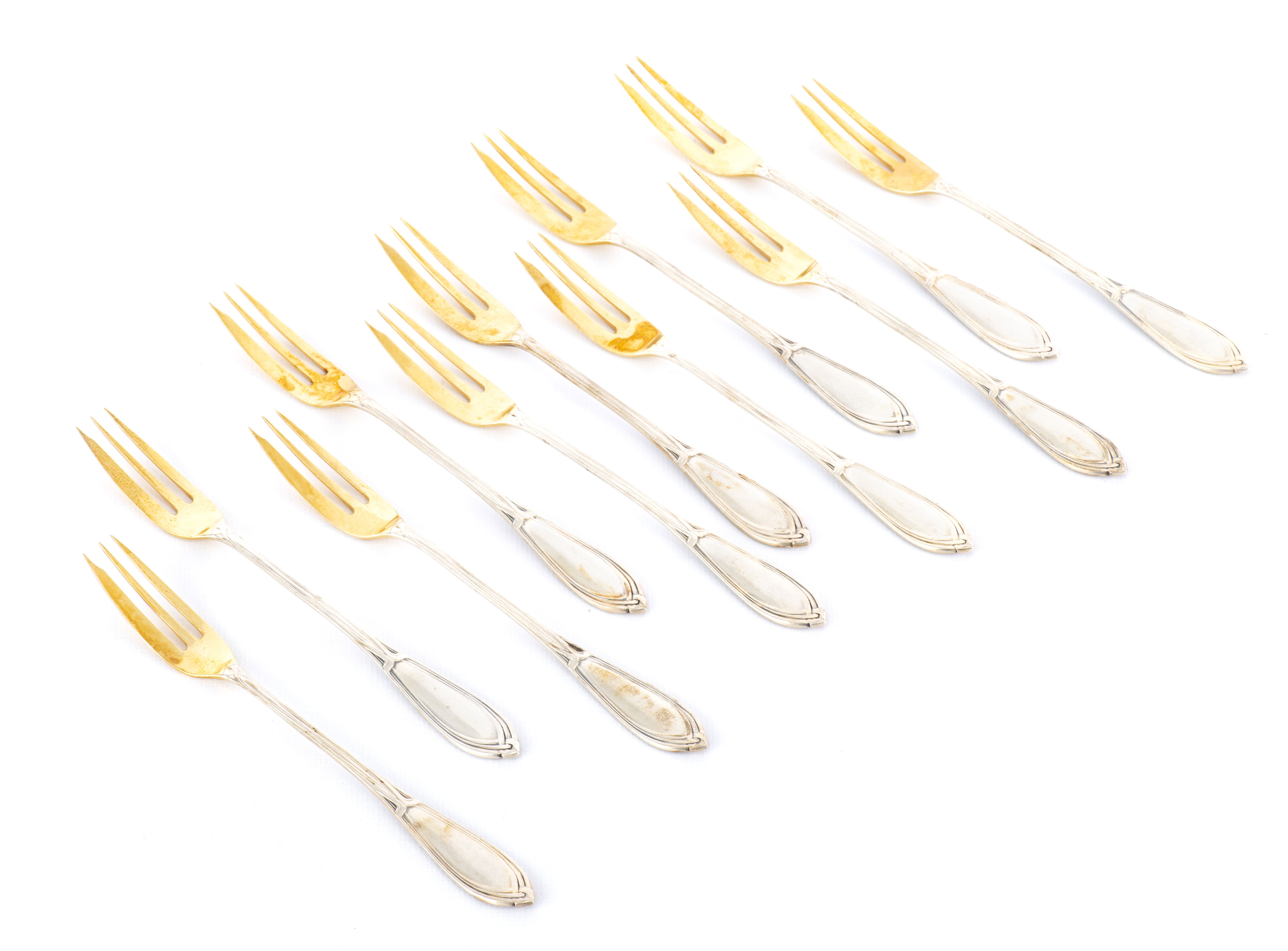 Partie de ménagère en argent .800 allemand par Fisch.K. comprenant :