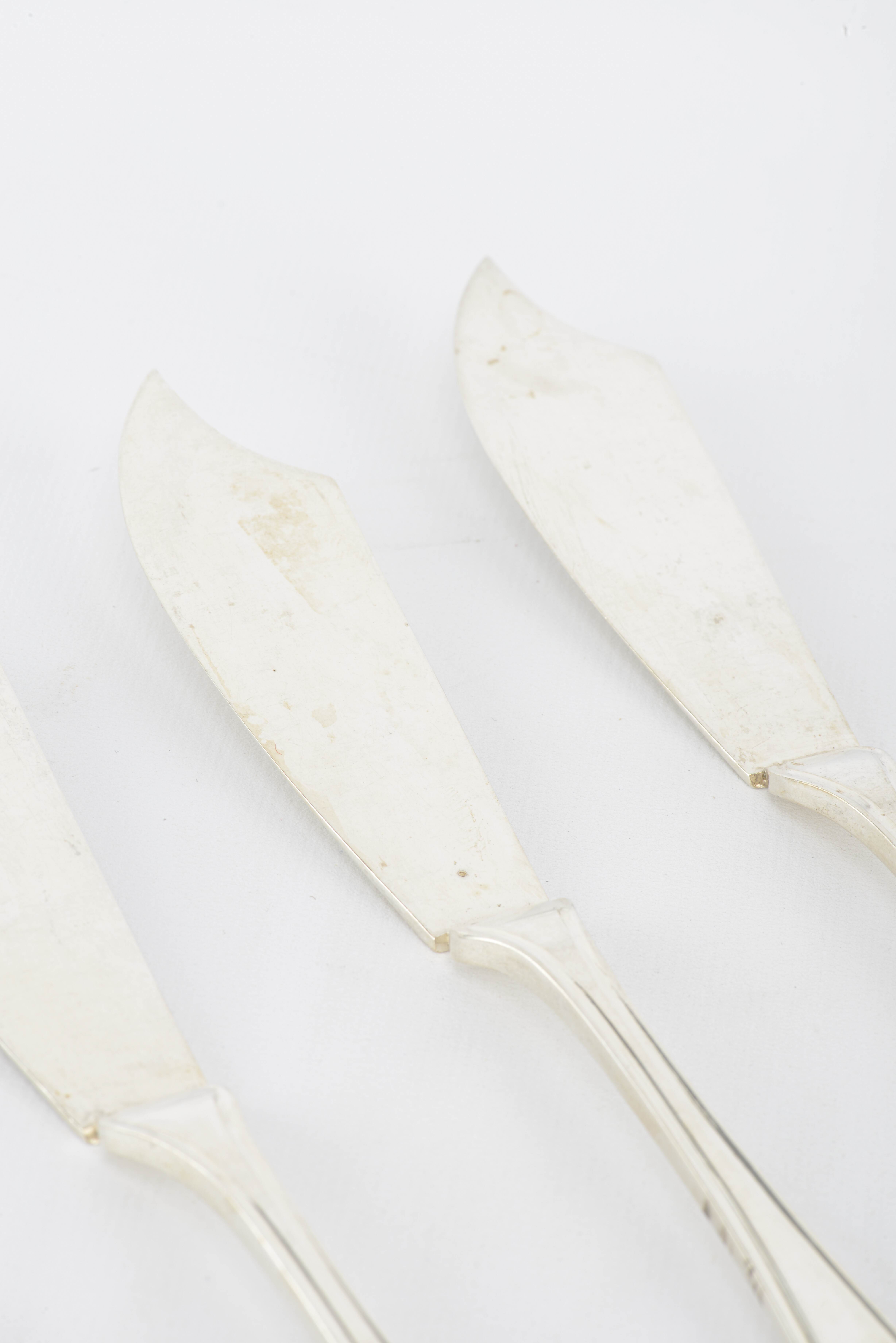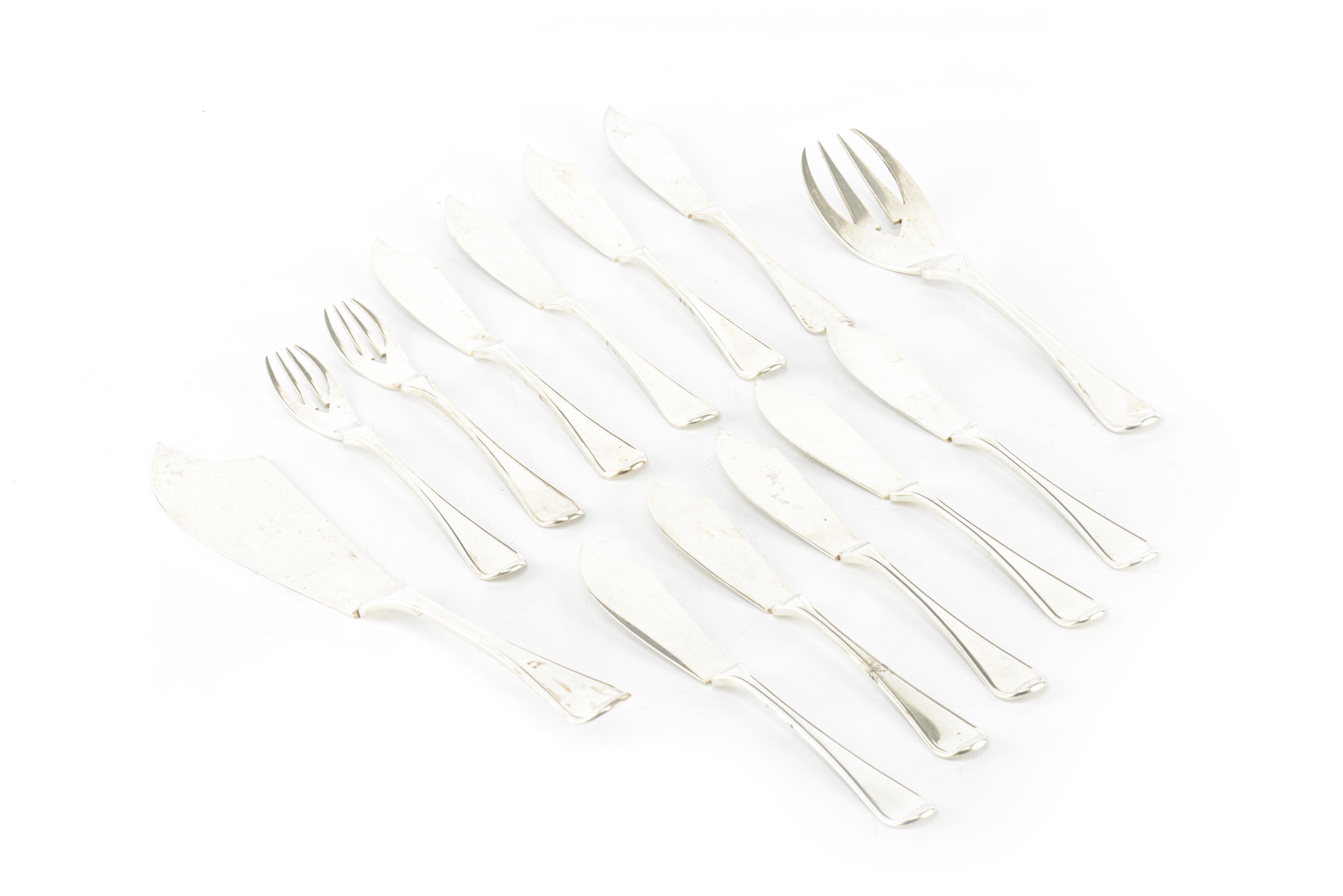 Partie de ménagère en argent .833 du Pays-Bas comprenant 2 fourchettes, une fourchette et un couteau à poisson, 9 couteaux à poisson.