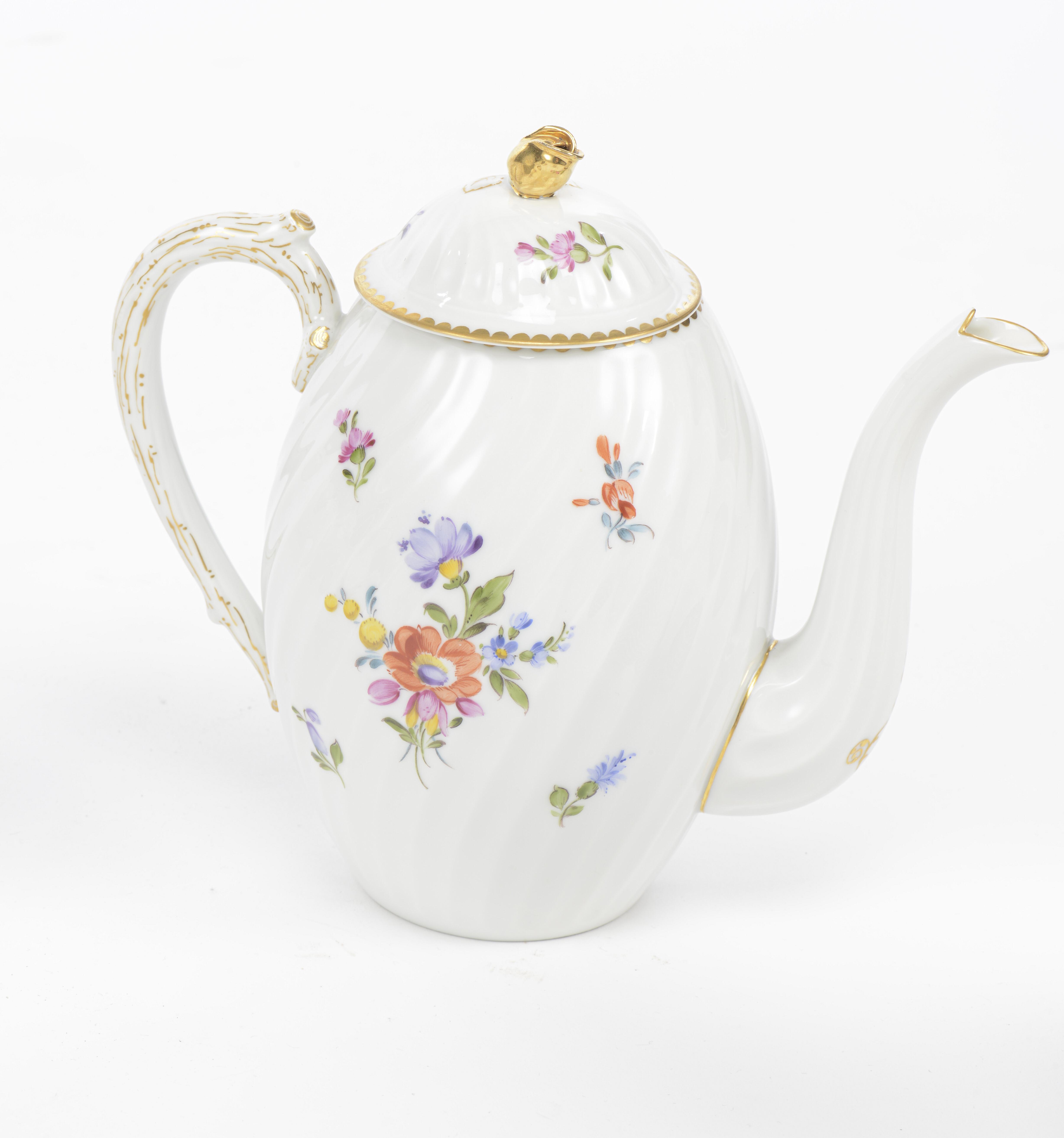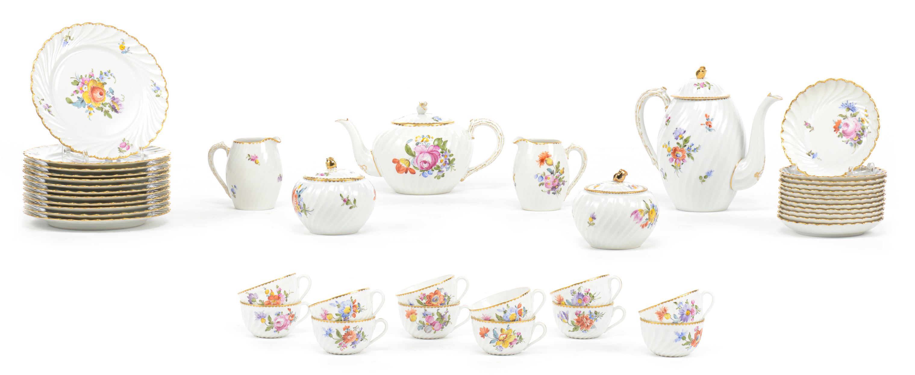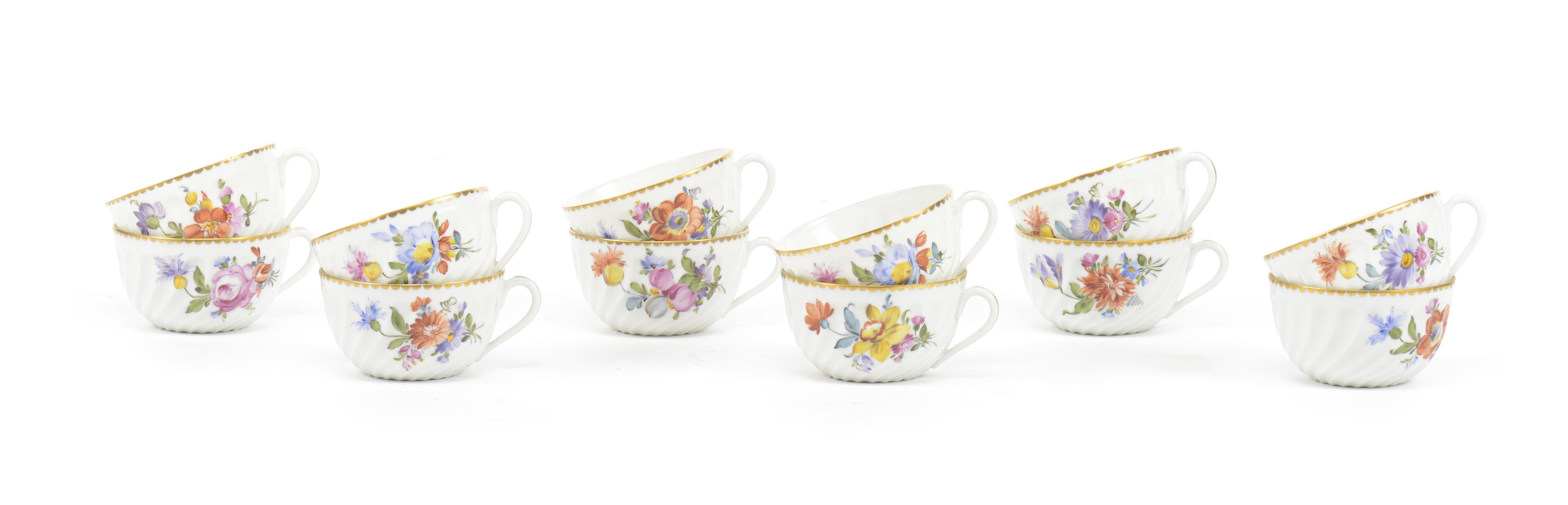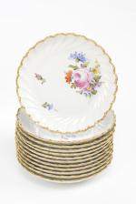 Partie de service en porcelaine blanche de Nymphenbourg, vers 1900-1920, décor à la main comprenant :