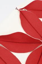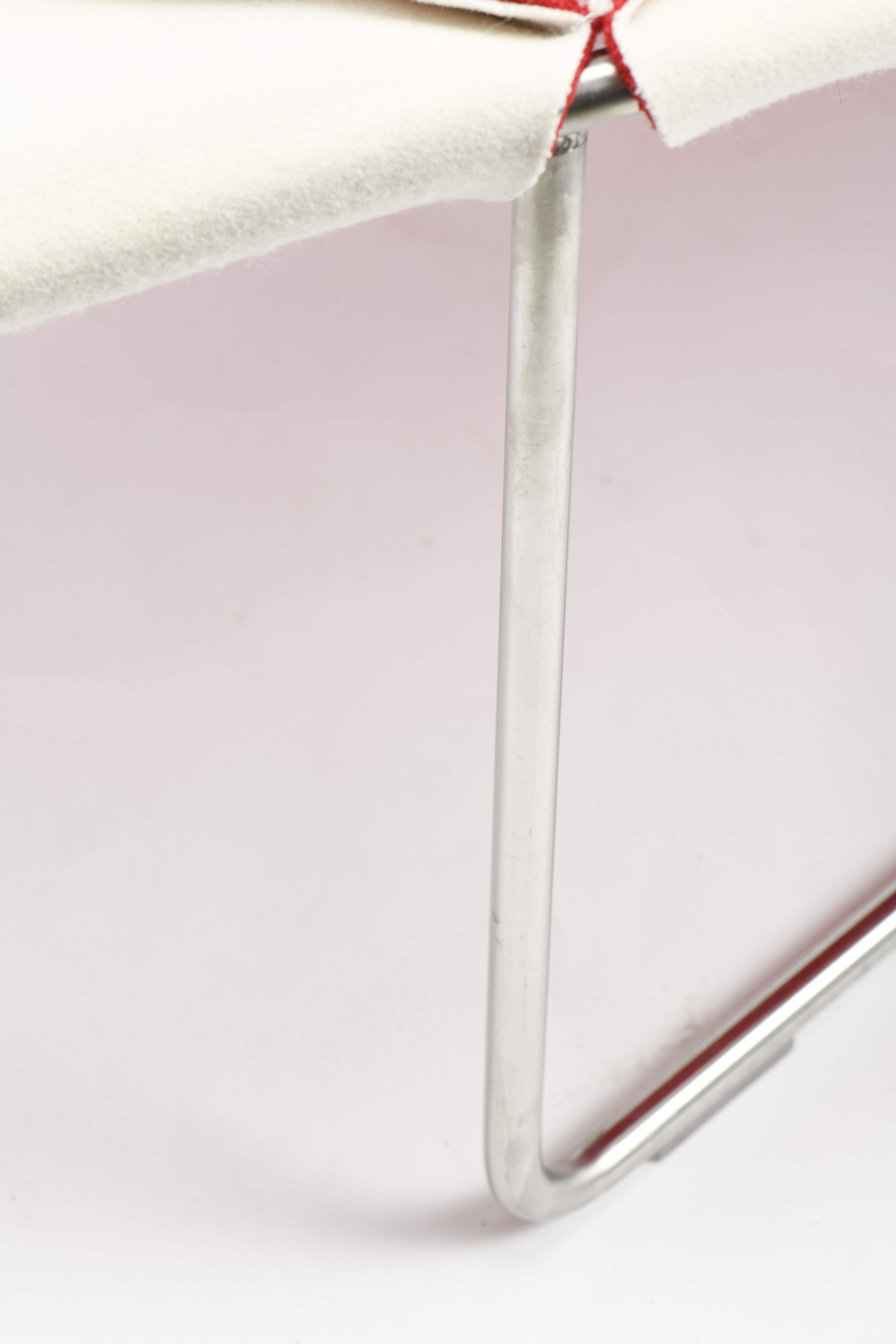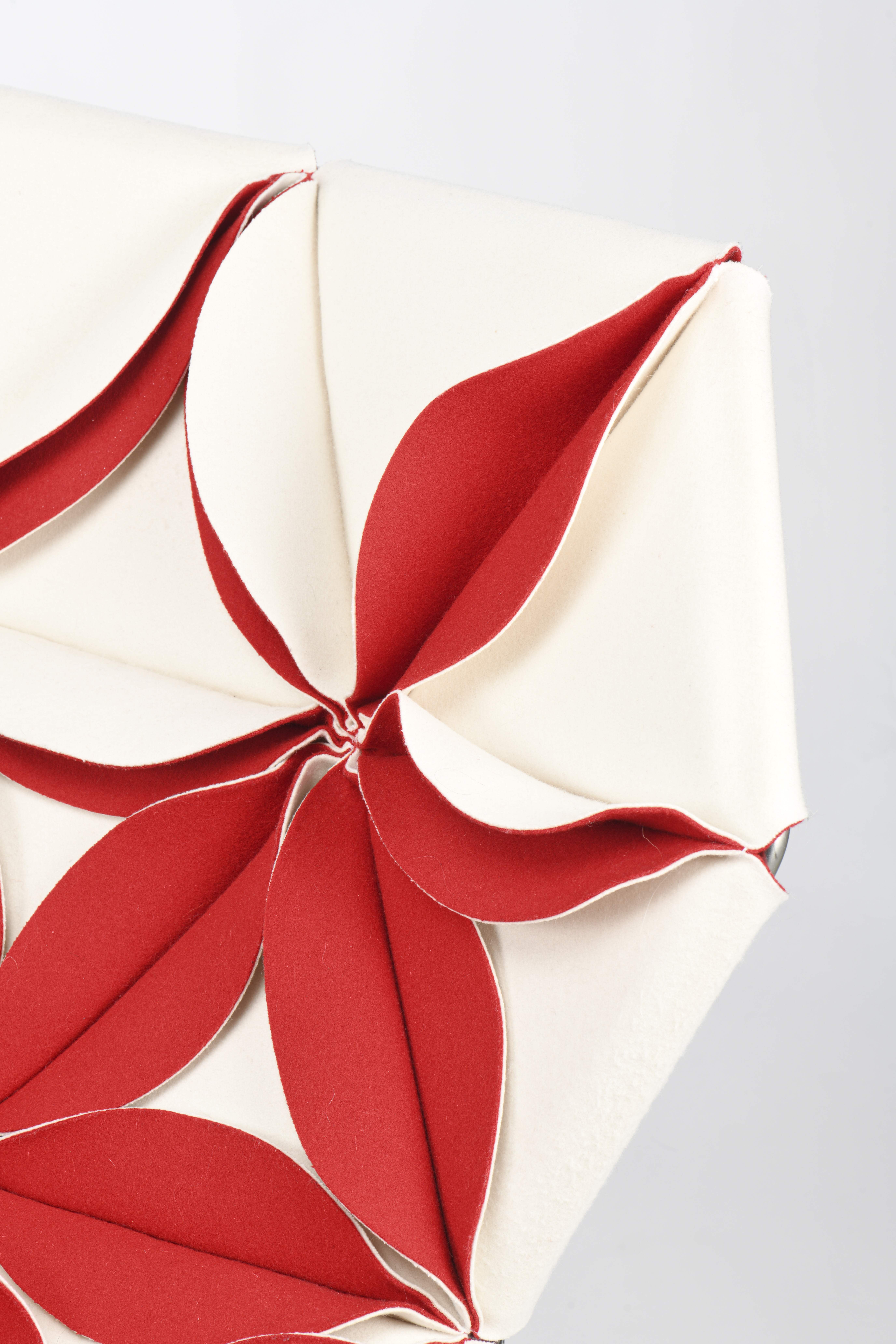 Patricia URQUIOLA (Née en 1961), chaise longue Antibodi en feutre bicolore blanc et rouge cousu en triangle pour former de généreux pétales reposant sur une fine structure en métal chromé.