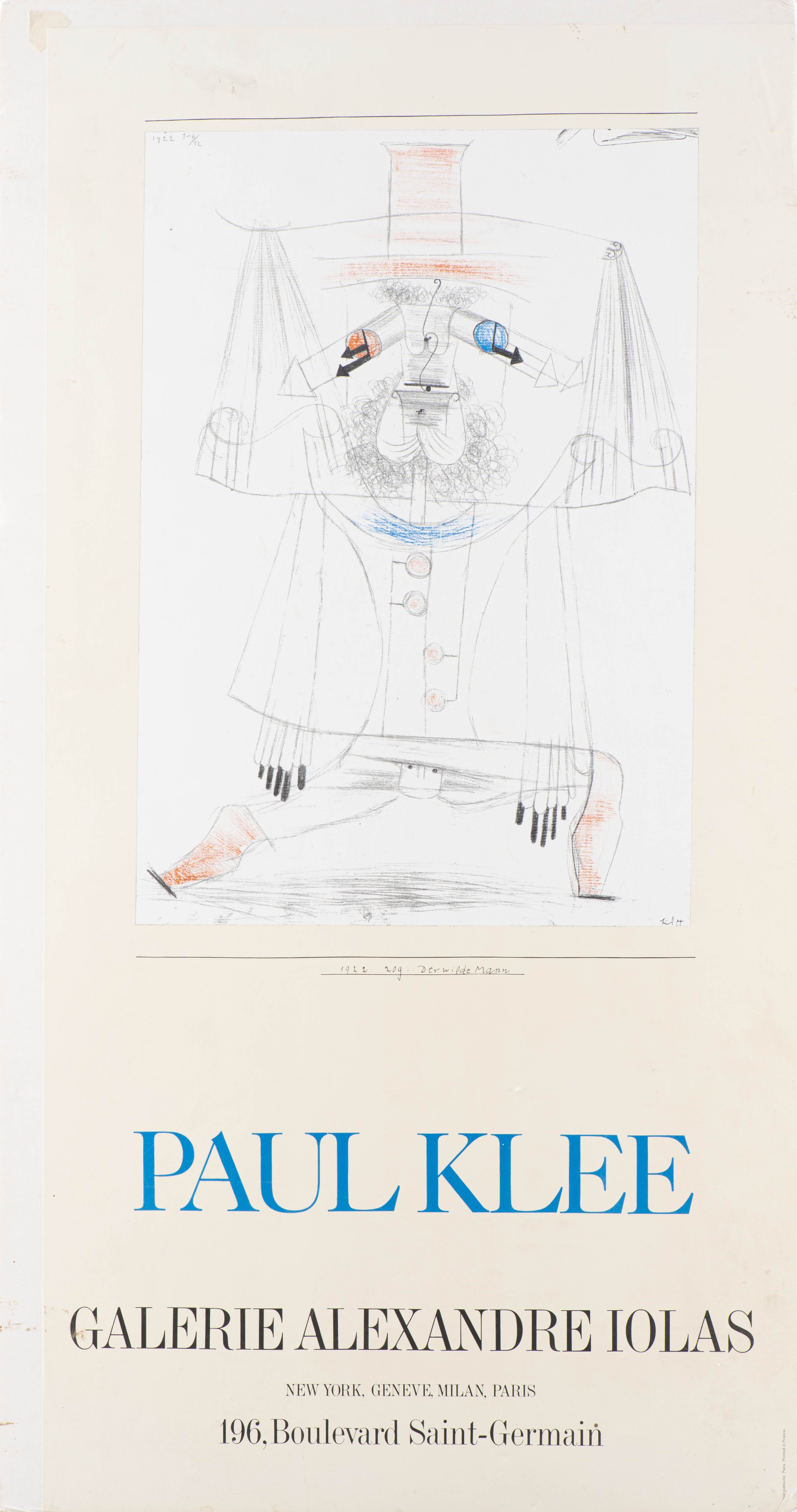 Paul KLEE (1879-1940), Affiche lithographiée pour la Galerie Alexandre IOLAS : daté 1922 en haut, numéroté 1-6/12, signé en bas à droite titré Derwilde Mann.