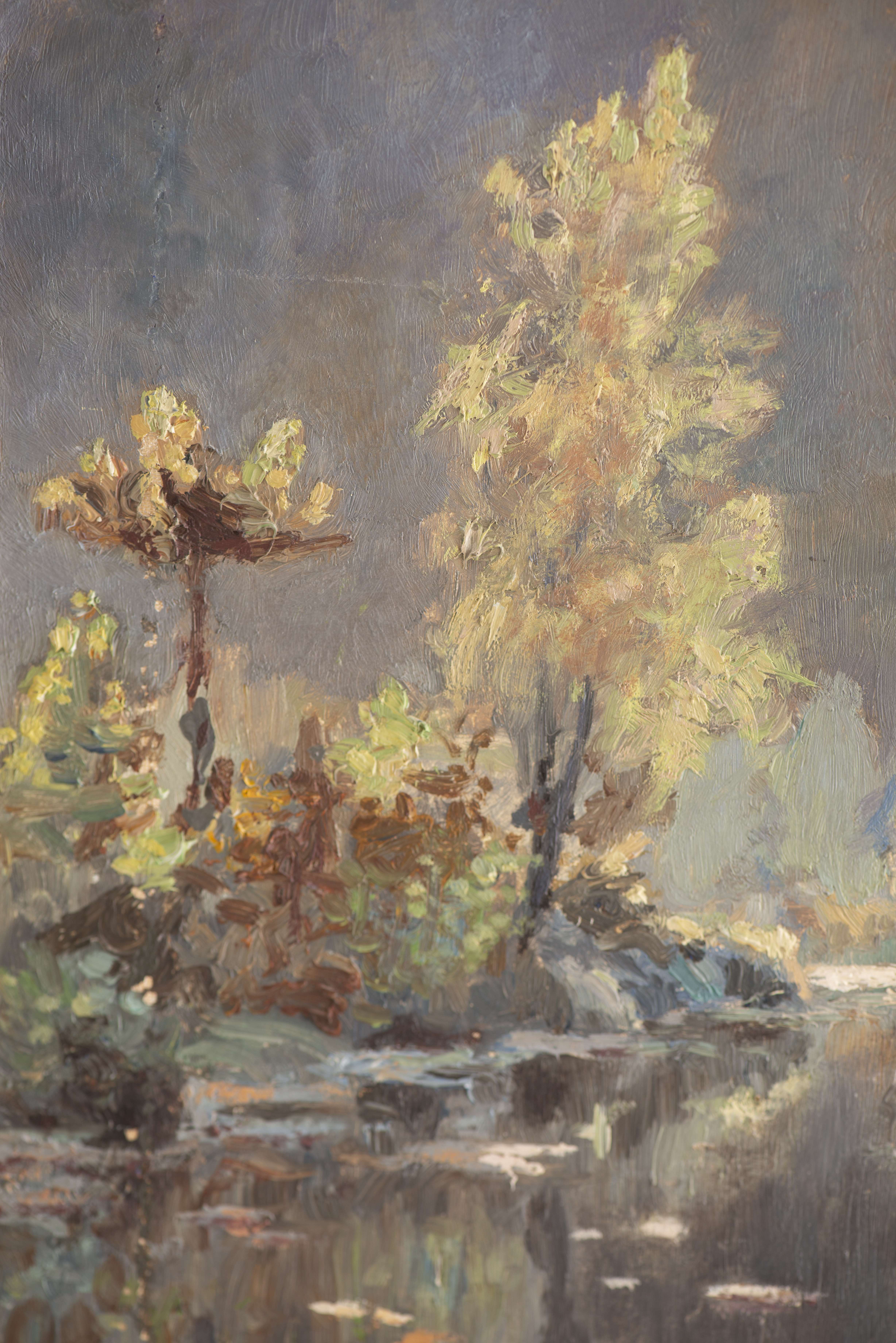 Paul LEPINARD (1887-1963), "Le cours d'eau dans la forêt", huile sur toile, signée en bas à droite : " P. Lepinard" et daté 17 en dessous.