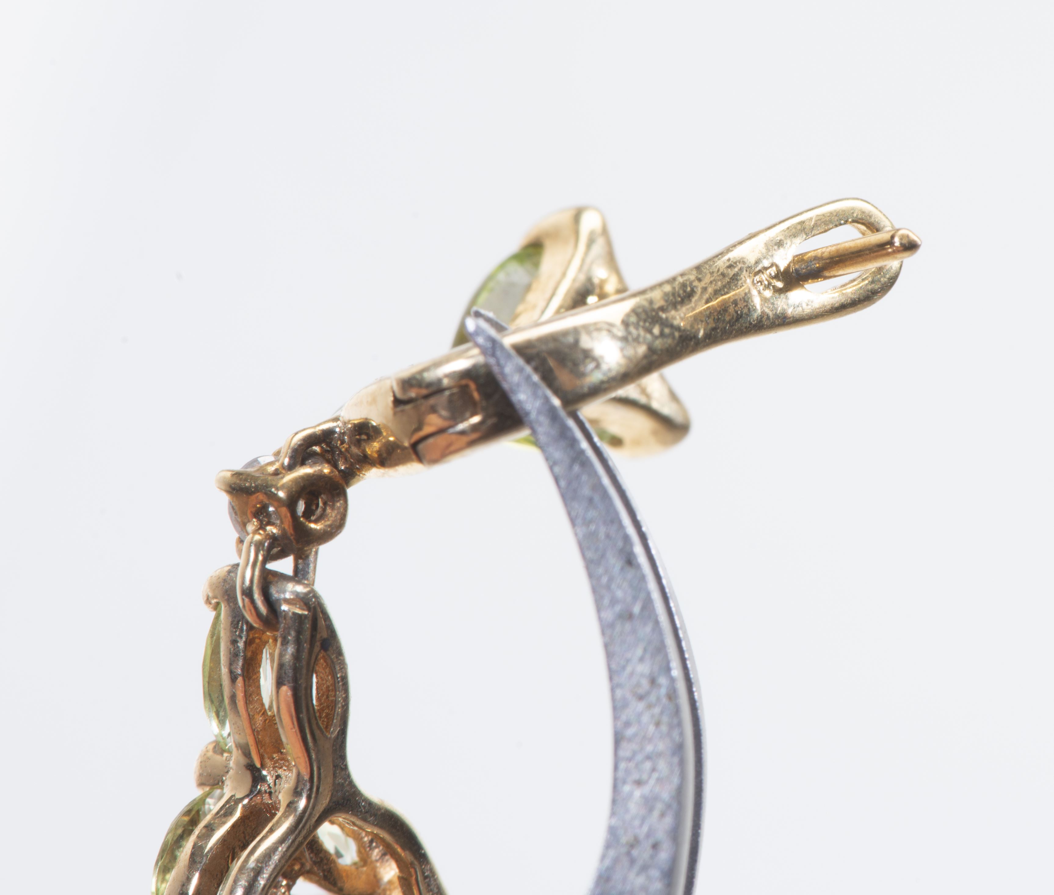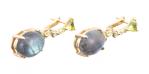 *Paire de pendants d'oreilles en argent .925 et tige en or .585 avec 2 labradorites pour 2 cts, 10 péridots pour 1 ct et 4 diamants.