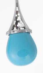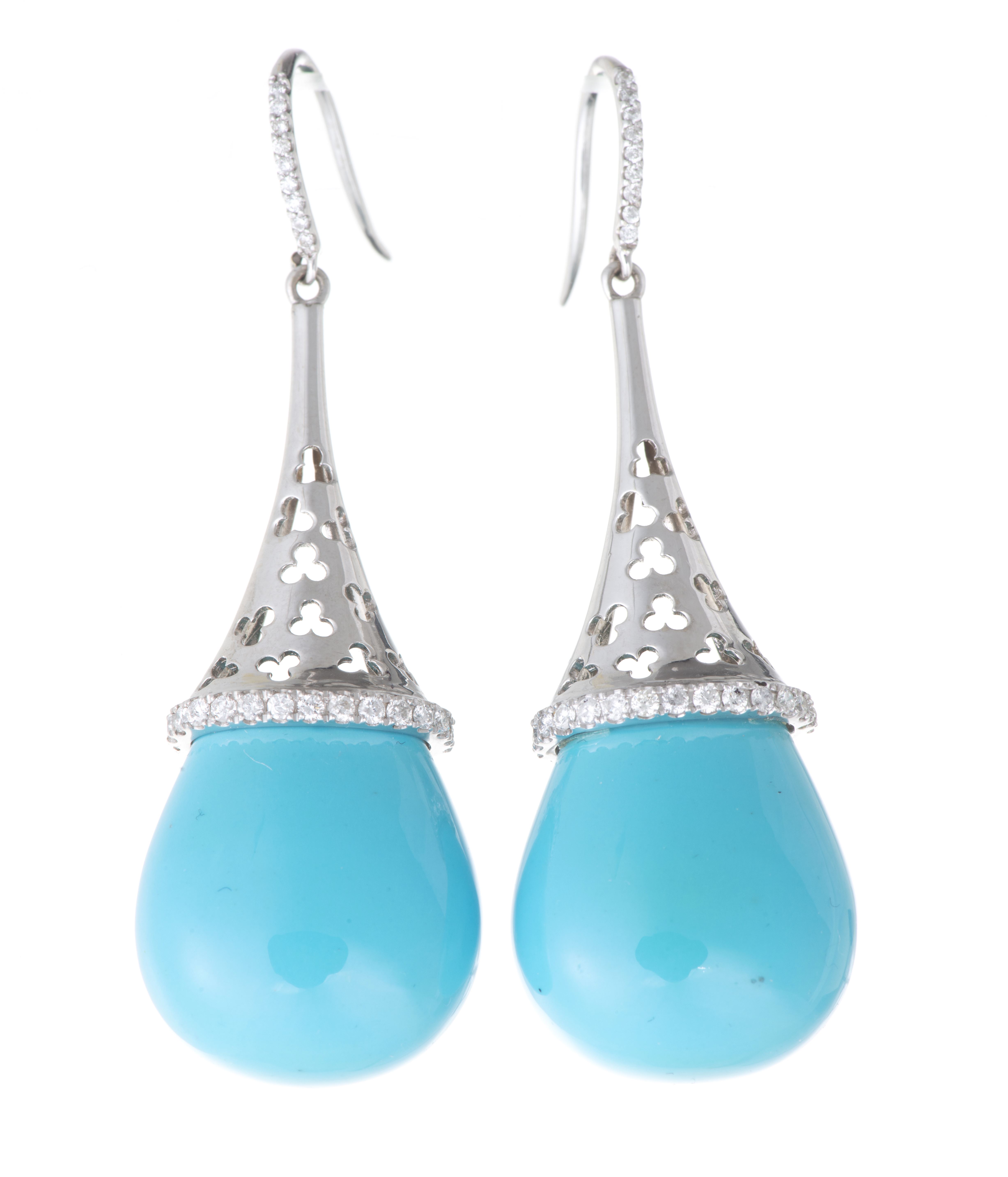 Paire de pendants d'oreilles en turquoise goutte et 56 diamants pour env. 0.47 ct sur or blanc .750.