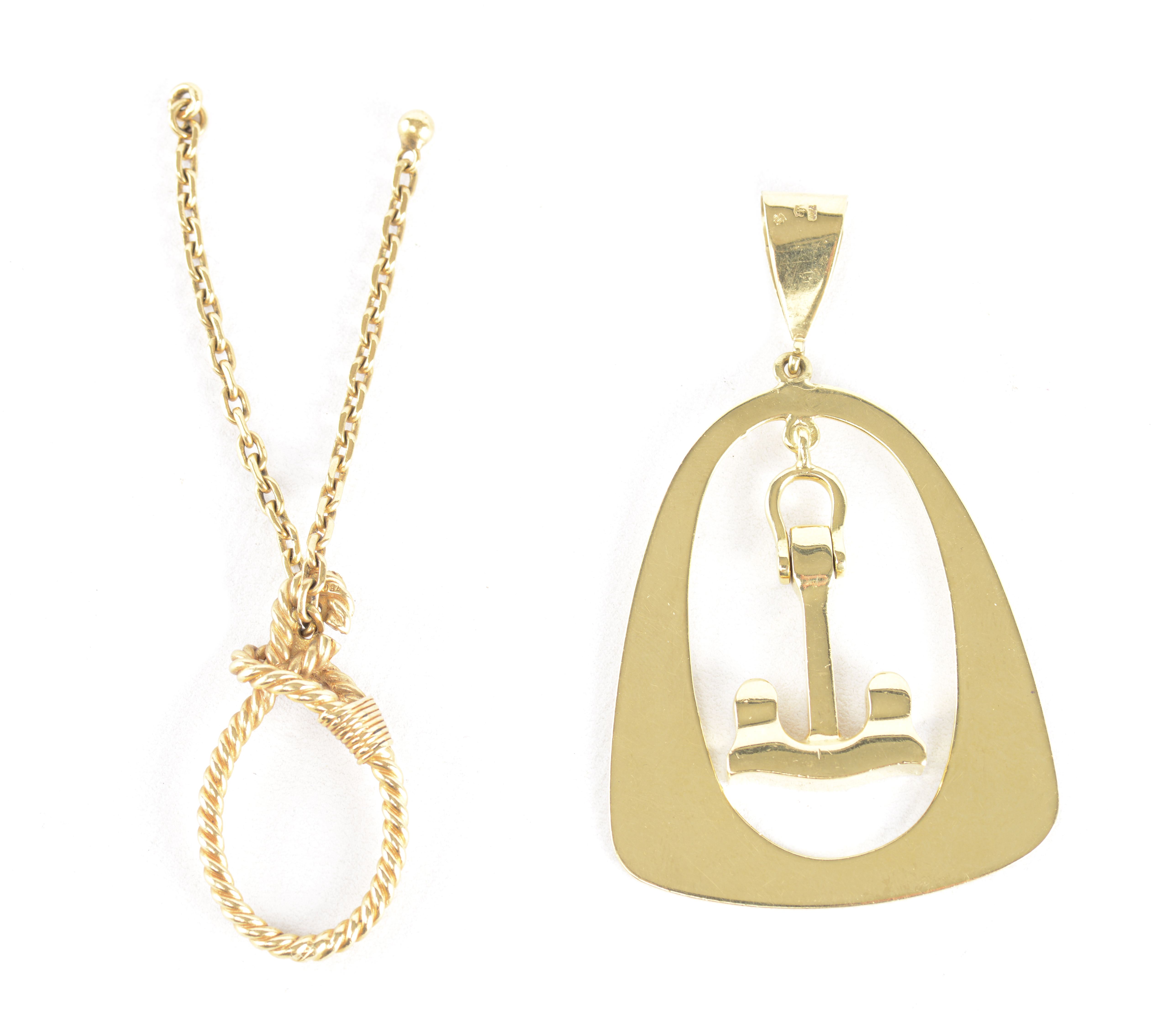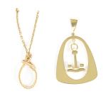Pendentif, nœud de cordage et pince à cravatte en or jaune
