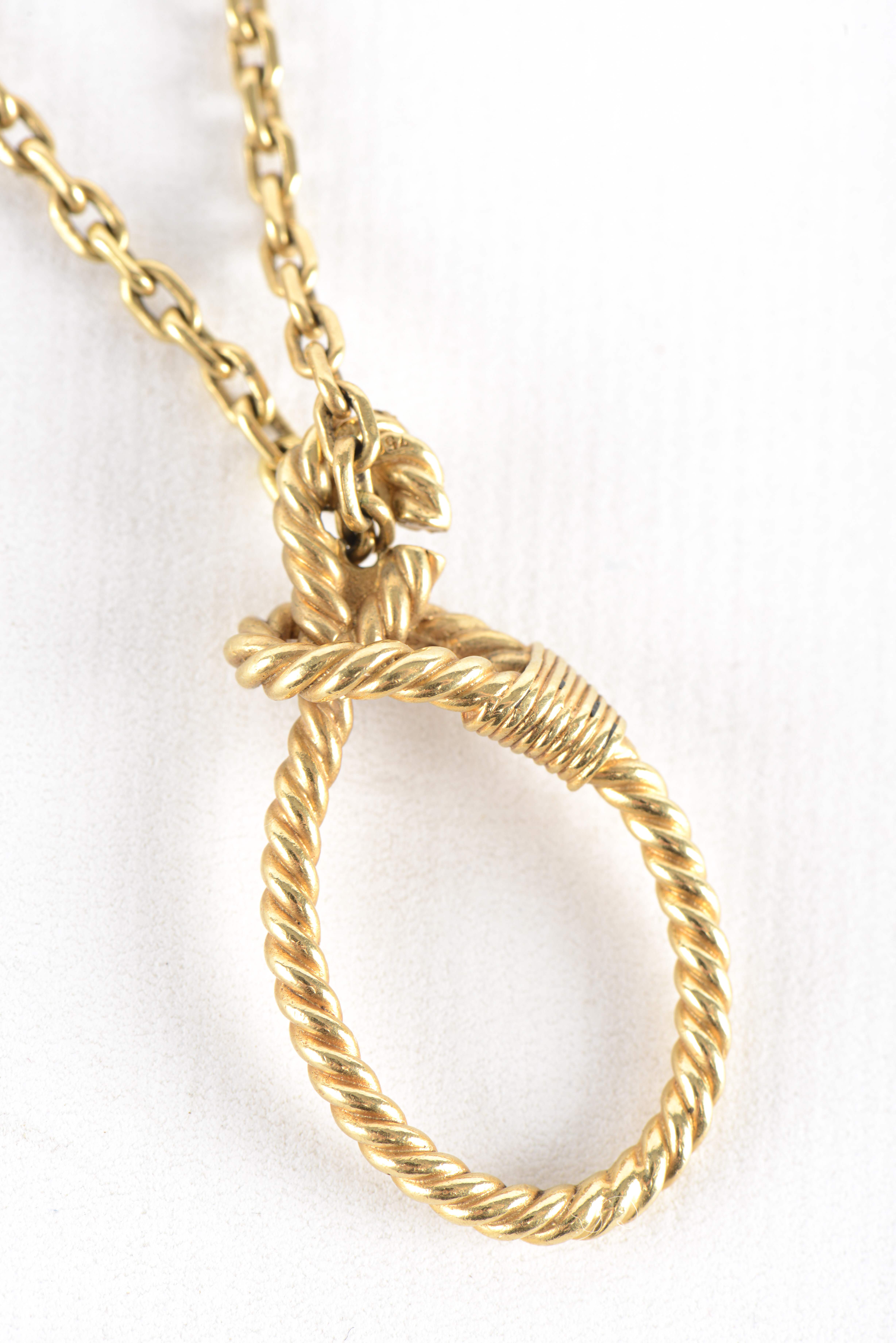 -un nœud de cordage en or jaune .750 au bout d'une chaîne Poids 13.3 g
