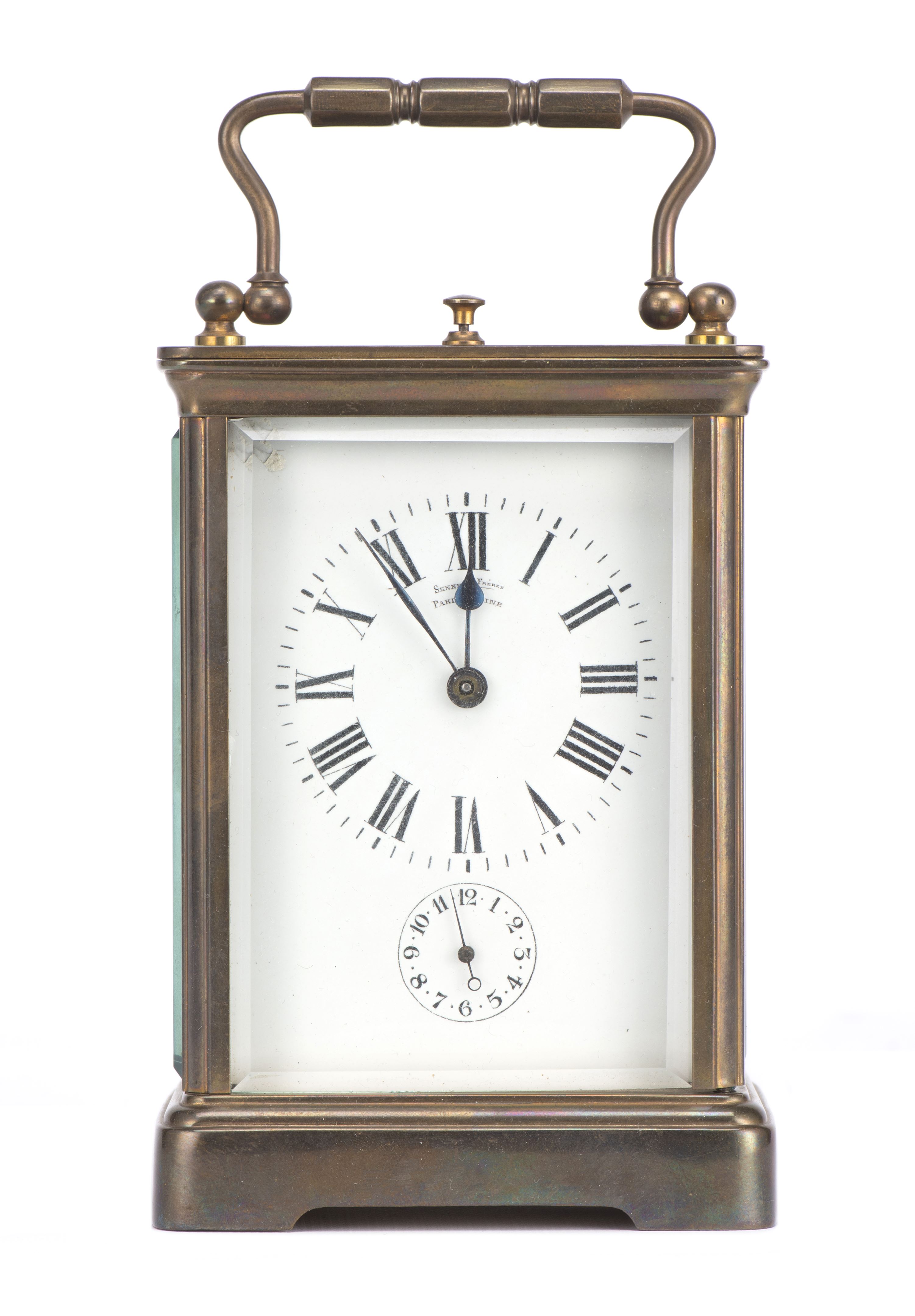 Pendule d'officier à deux cadrans, un petit à 6h pour l'aiguille réveil, grand cadran inscrit Sennet Frères Paris Chine.