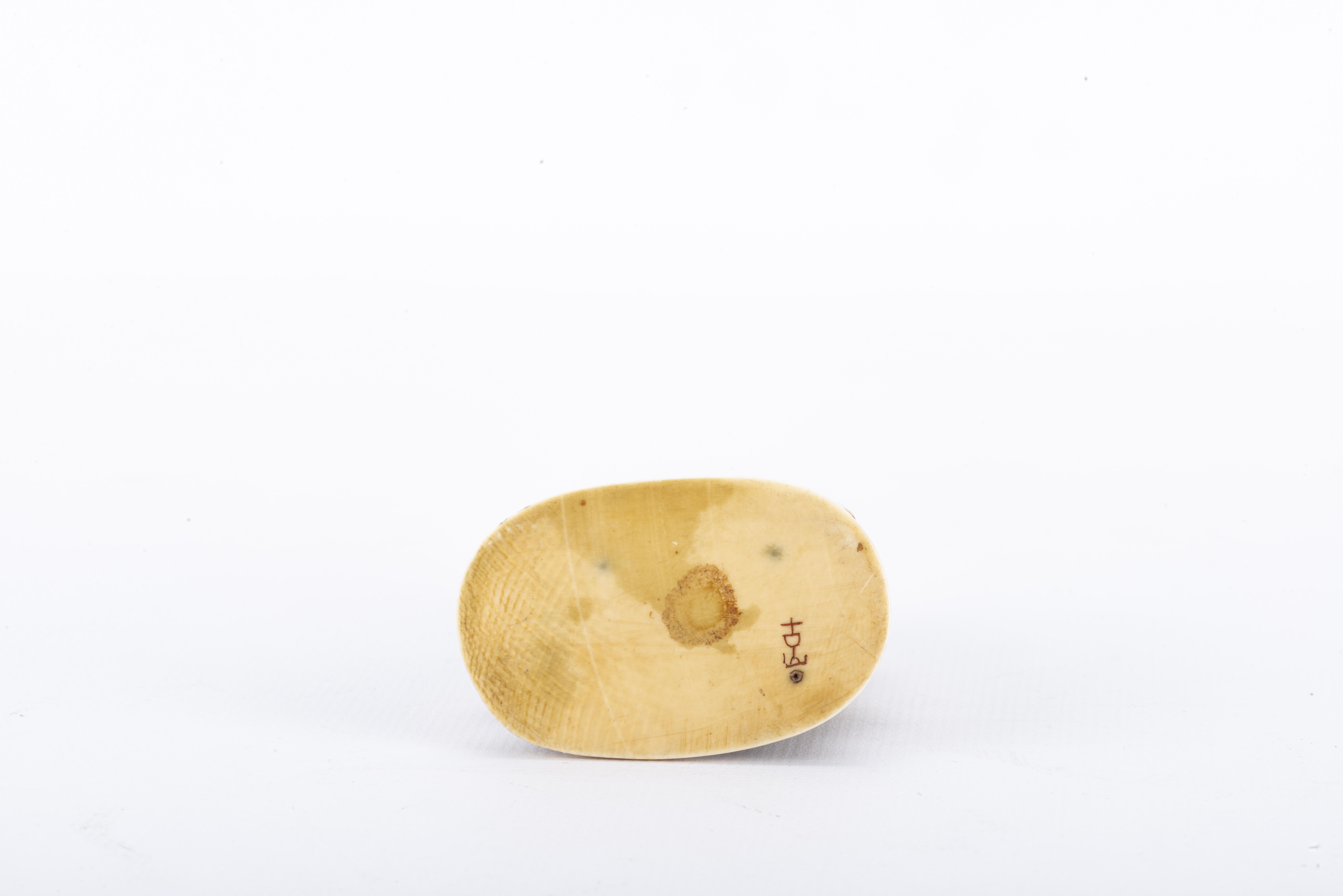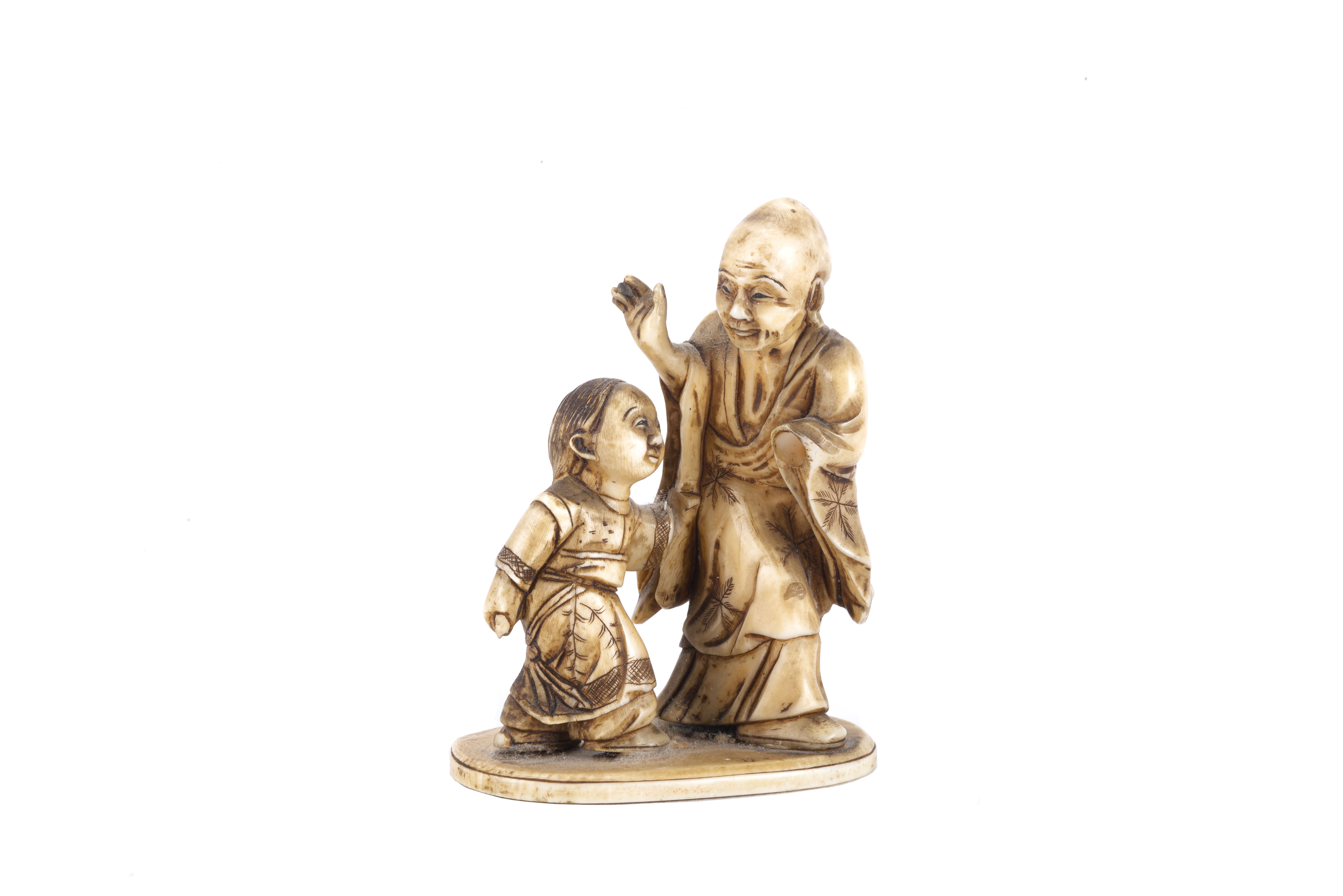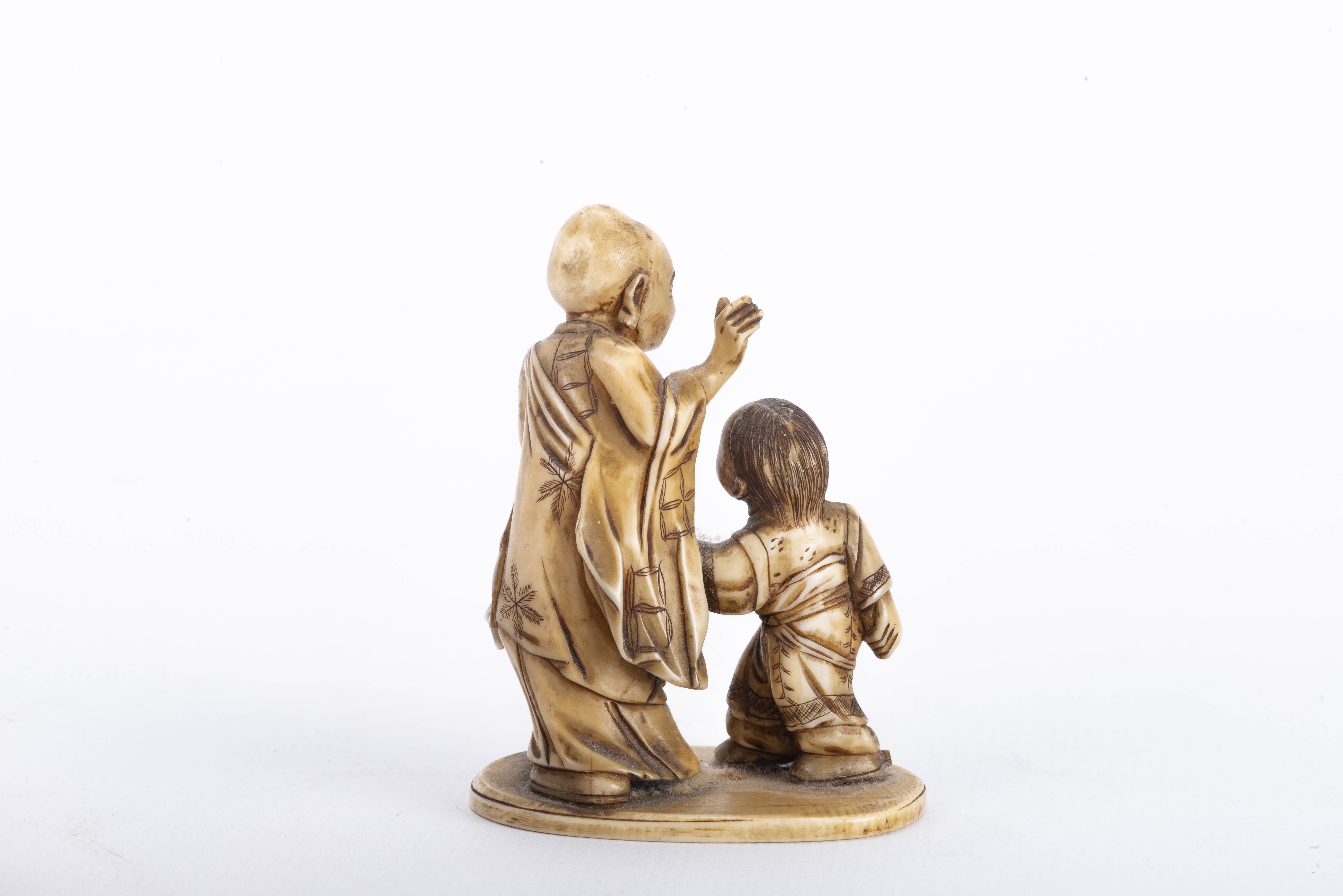 Petit okimono représentant deux personnages signature à un caractère sous la base.