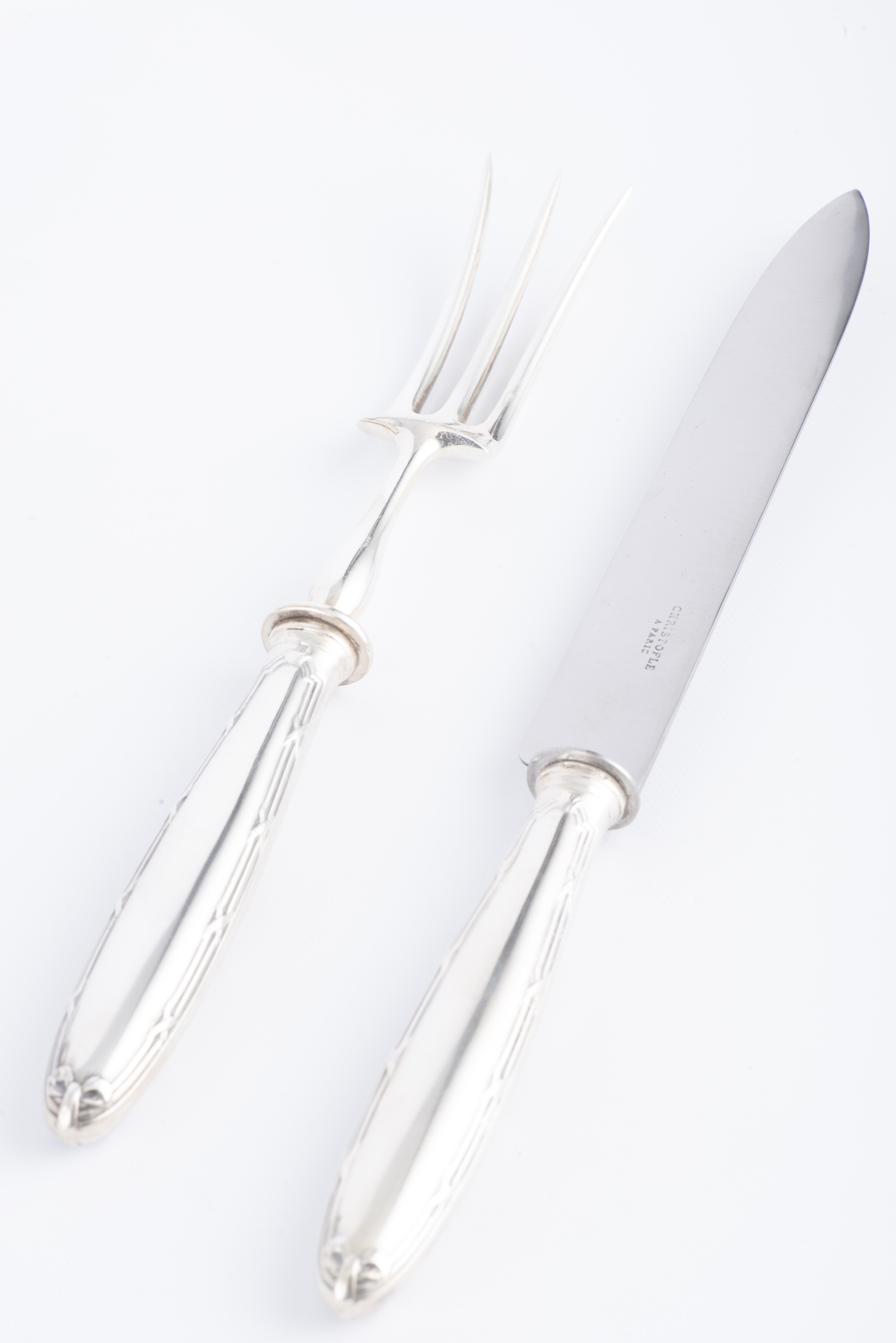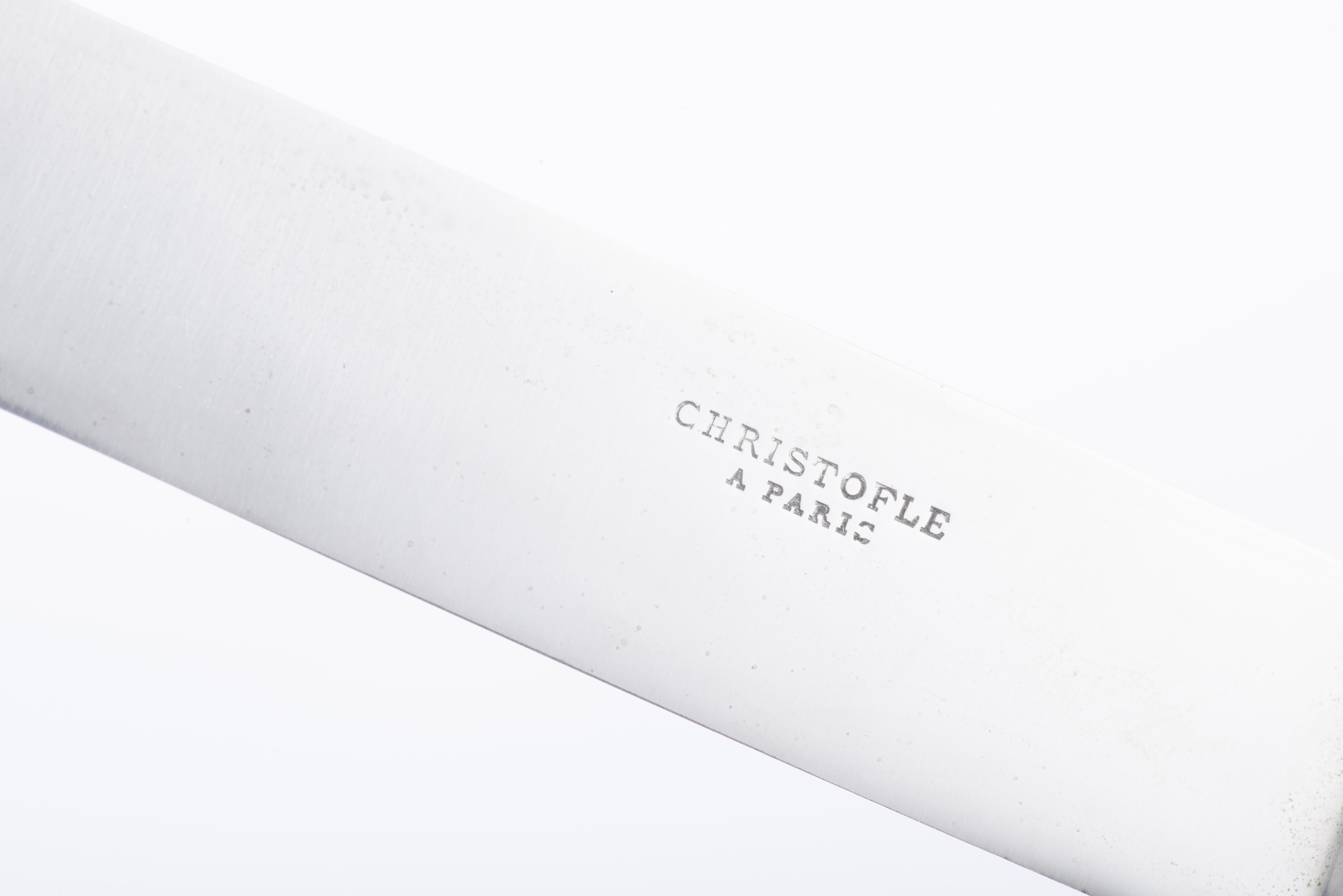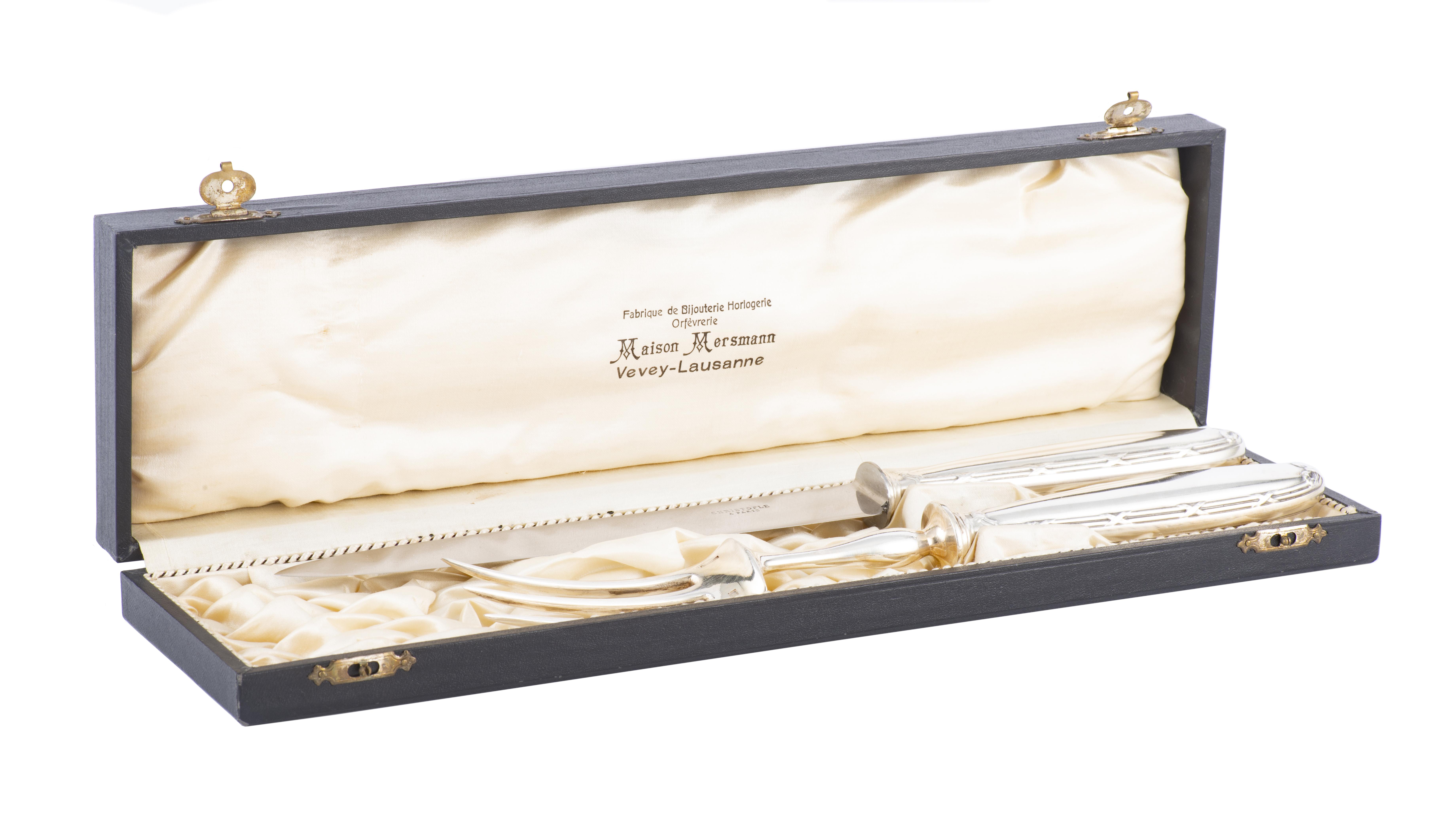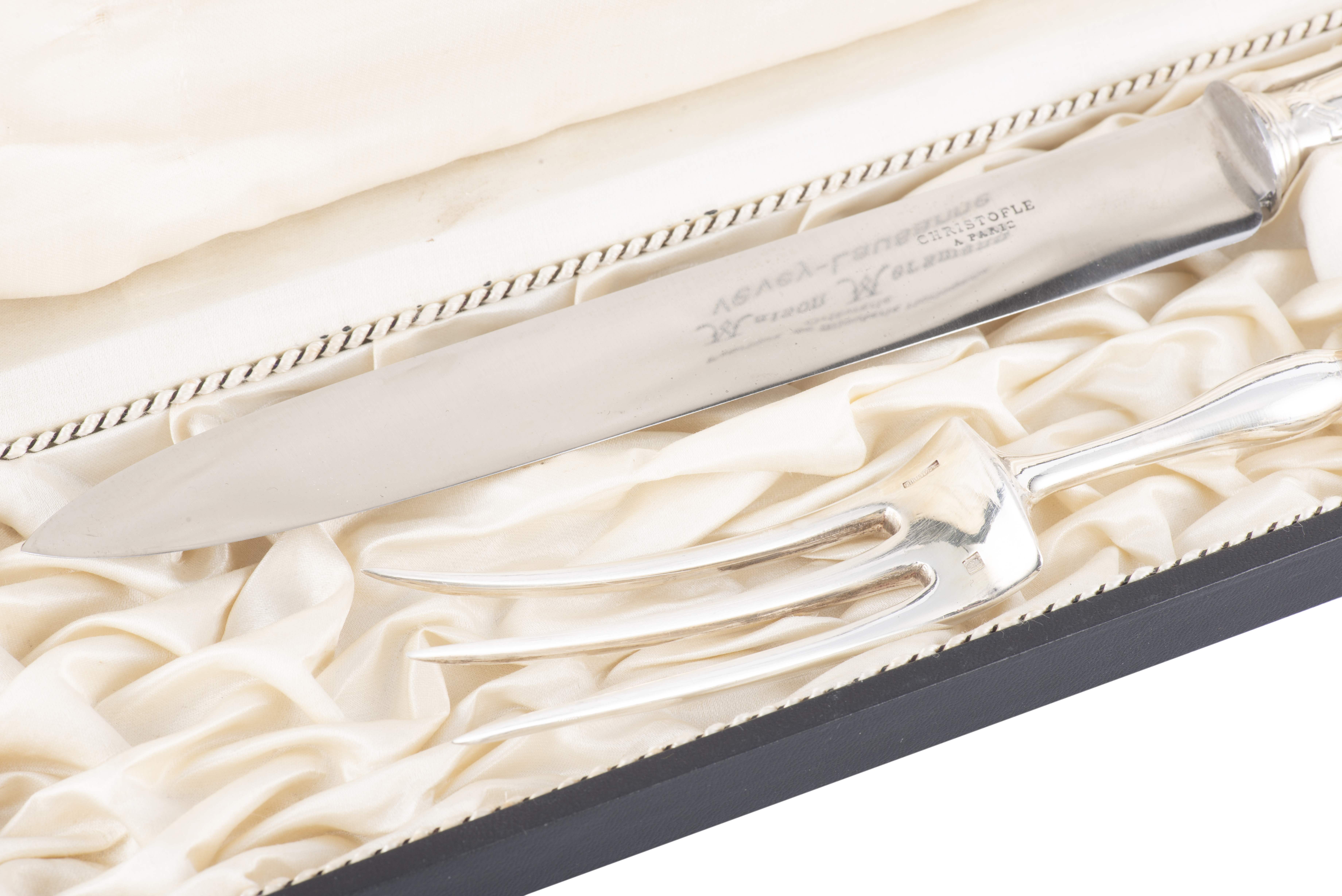 - Fourchette et un couteau à viande dans leur écrin vers 1900 avec lame également inscrite Christofle.