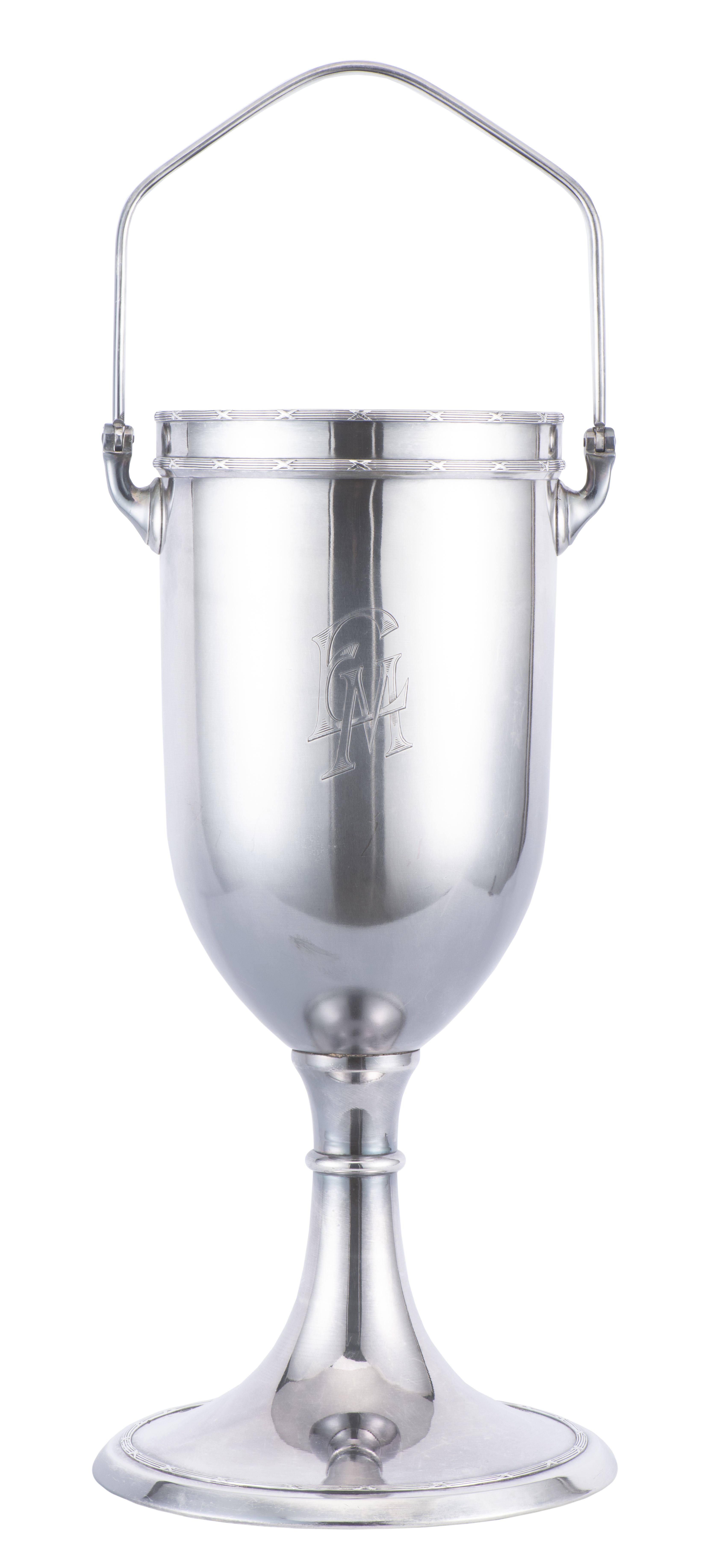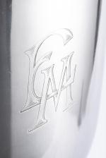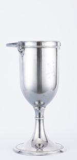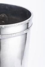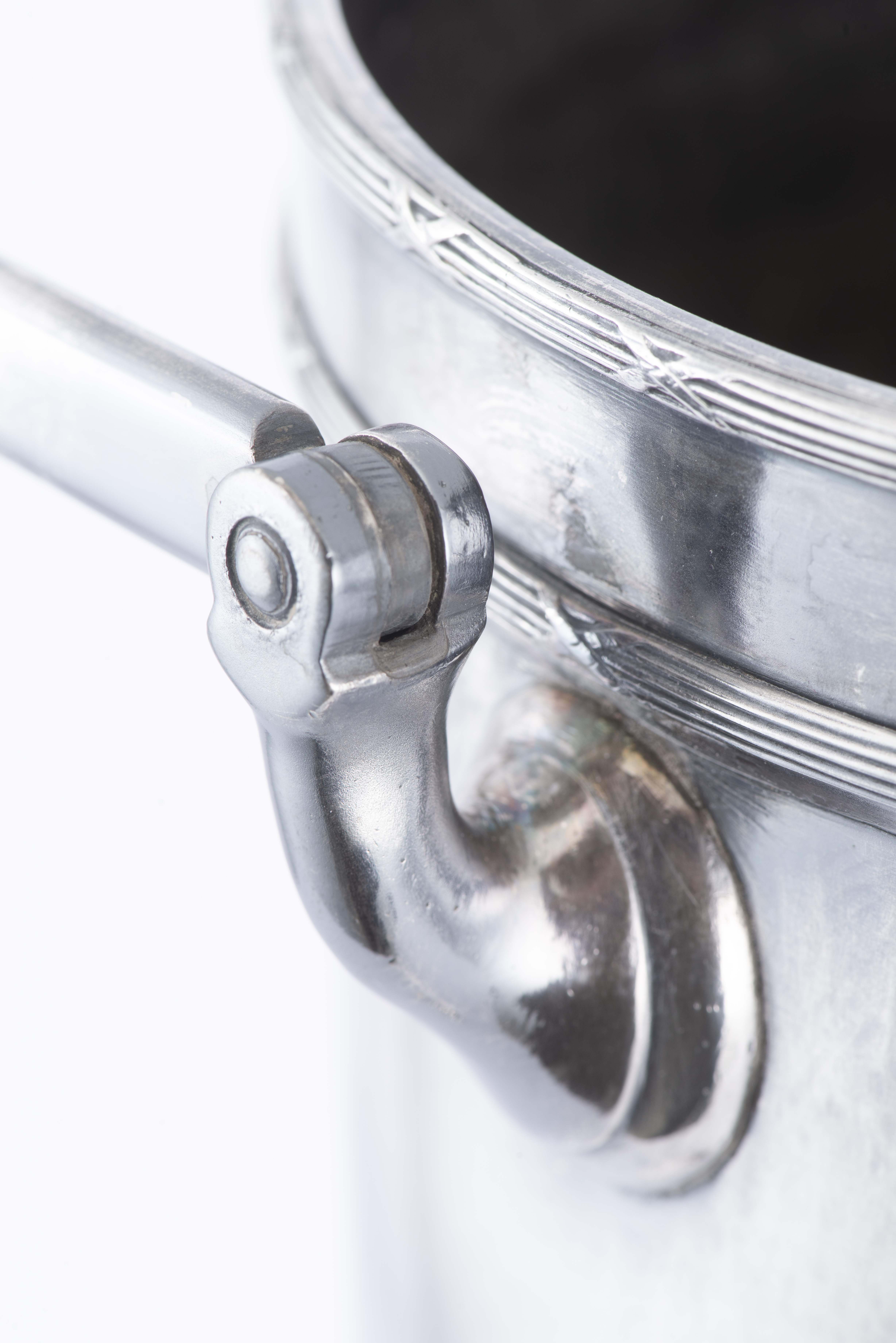 - Seau à vin blanc en métal argenté, sur pied et à anse, sans marque.