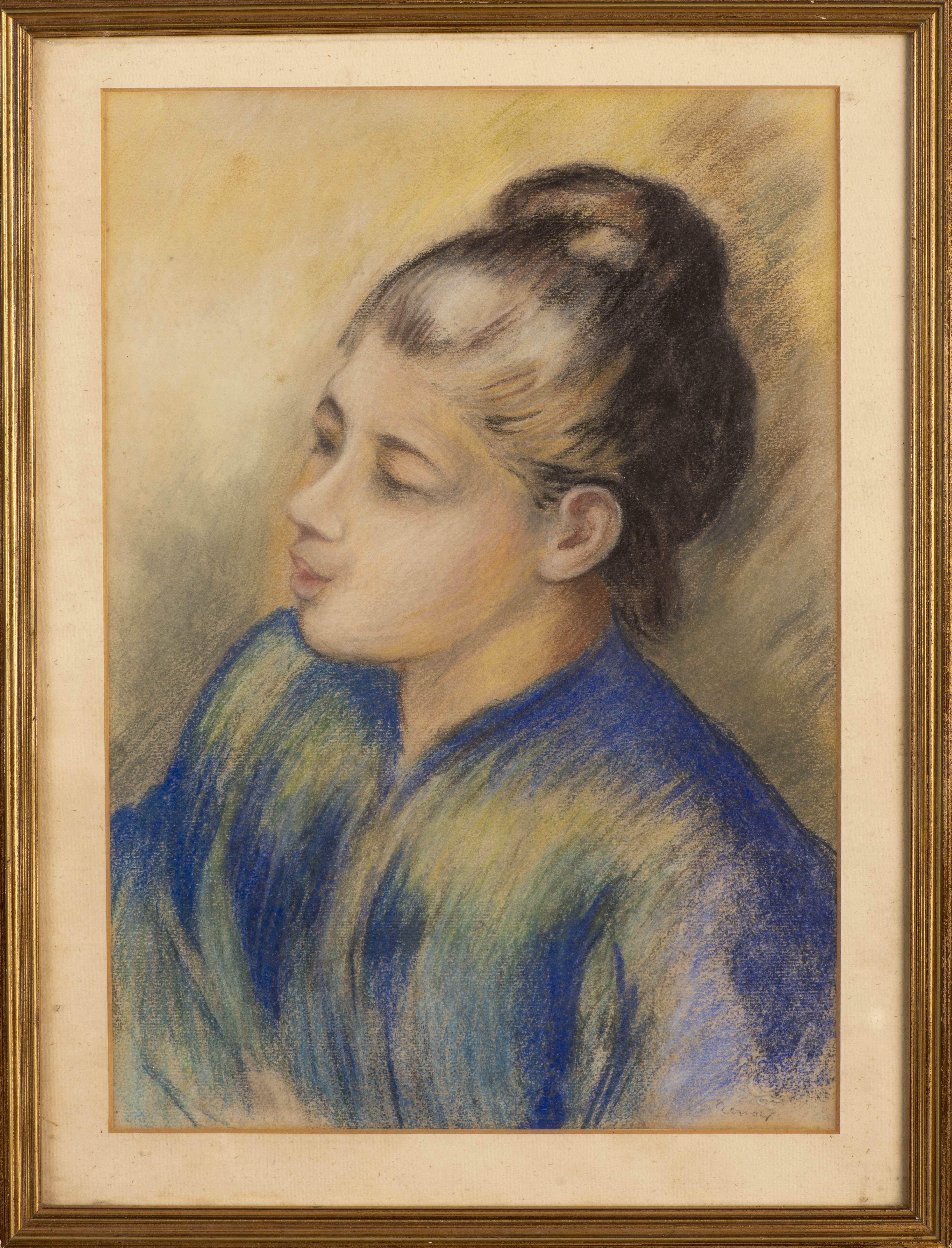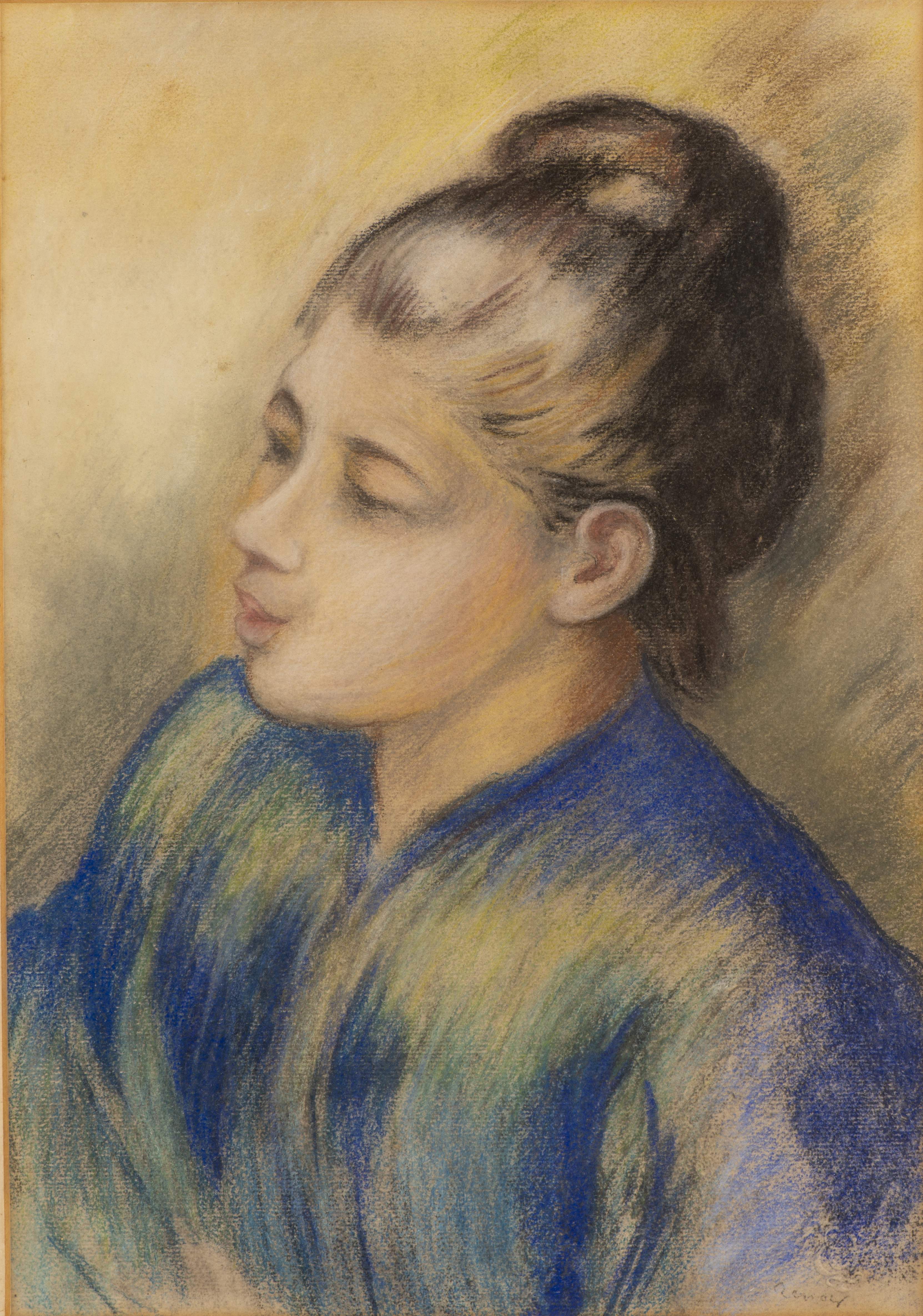 Pierre-Auguste Renoir (1841-1919), "La femme en tunique bleue", impression au pastel sec sur papier