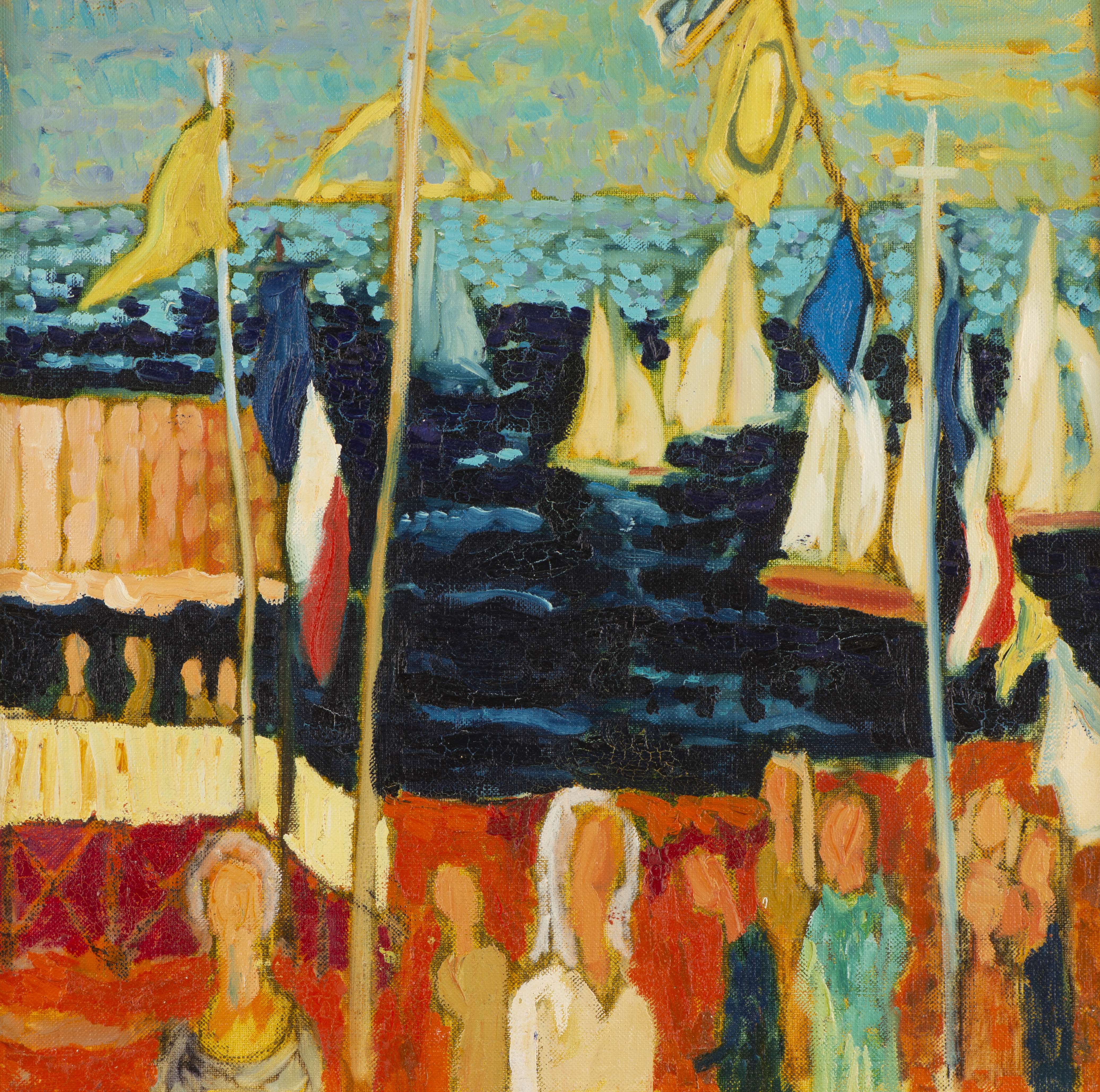Pierre MORAND (1923-2016) "La douche" & "Bol d'Or" huile sur toile signé en bas à droite inscrit au dos pour l'un et non signé pour l'autre.