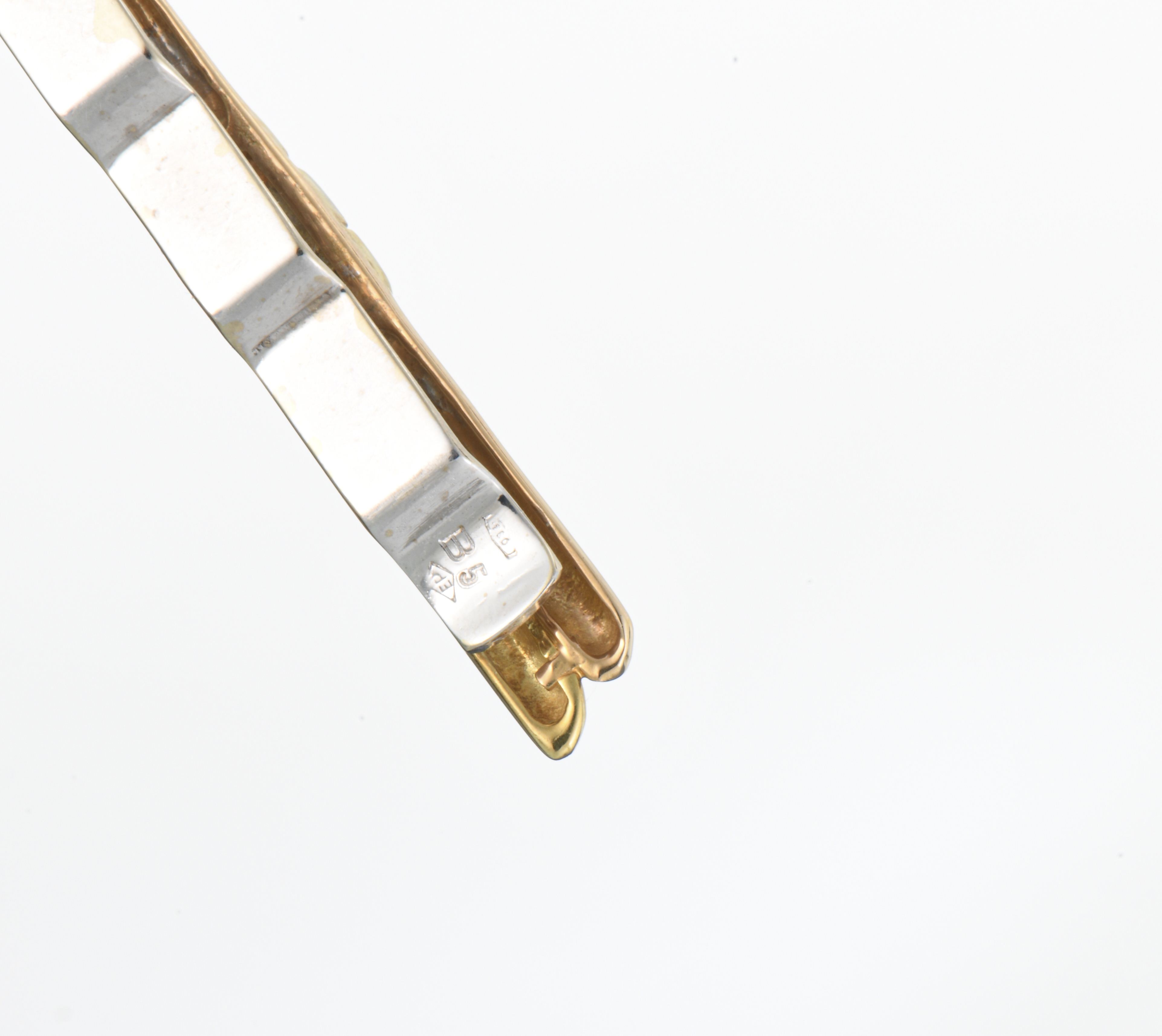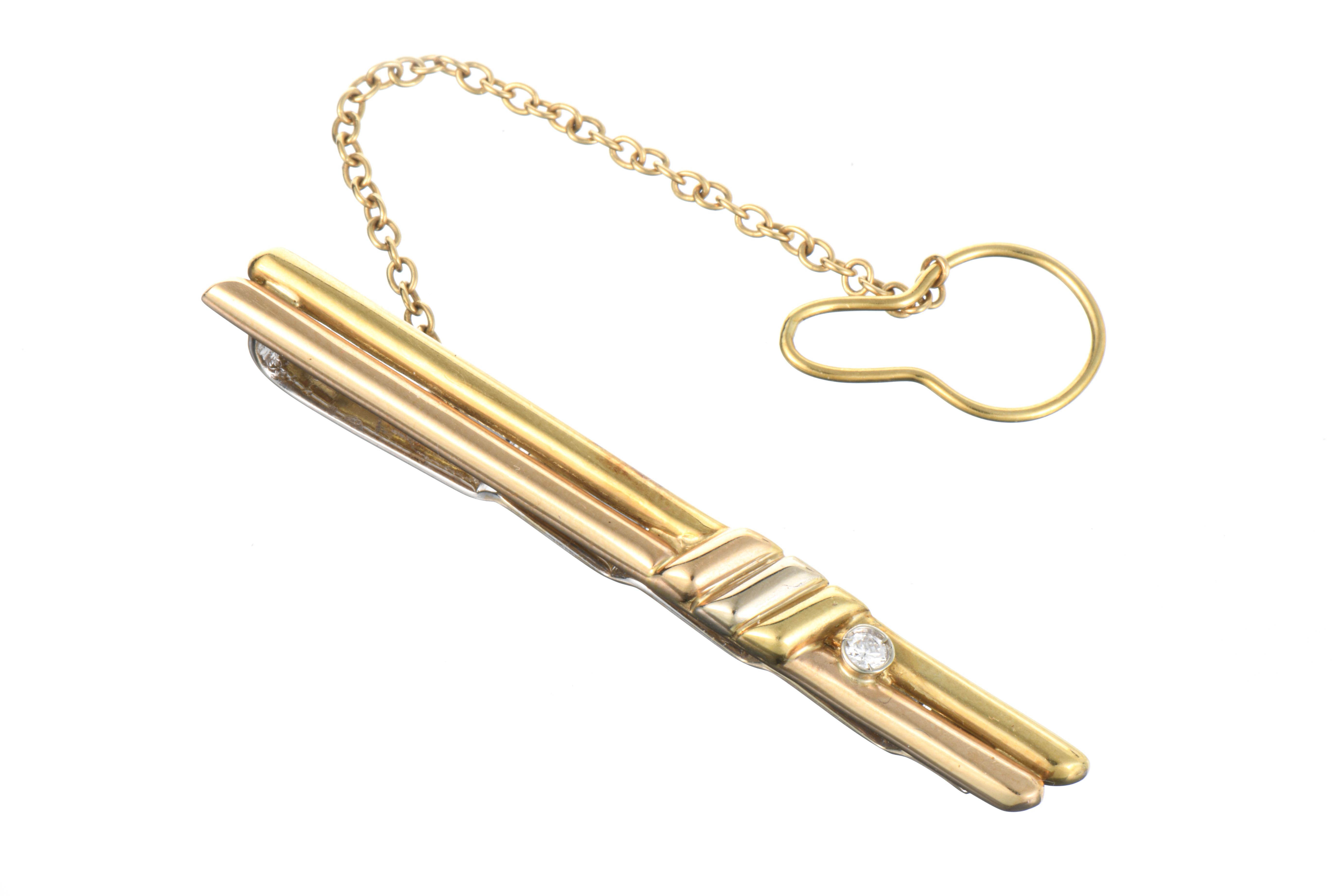 Pince à cravatte en or jaune et or gris .750 avec un diamant de 0.04 ct.
