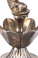 PLAME porte-cure-dents en métal argenté à prise dauphin. Vers 1960