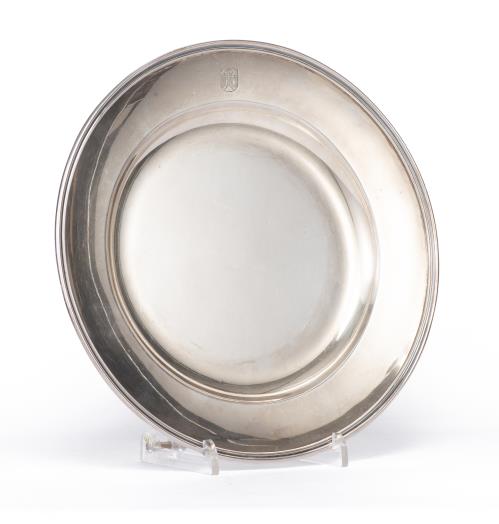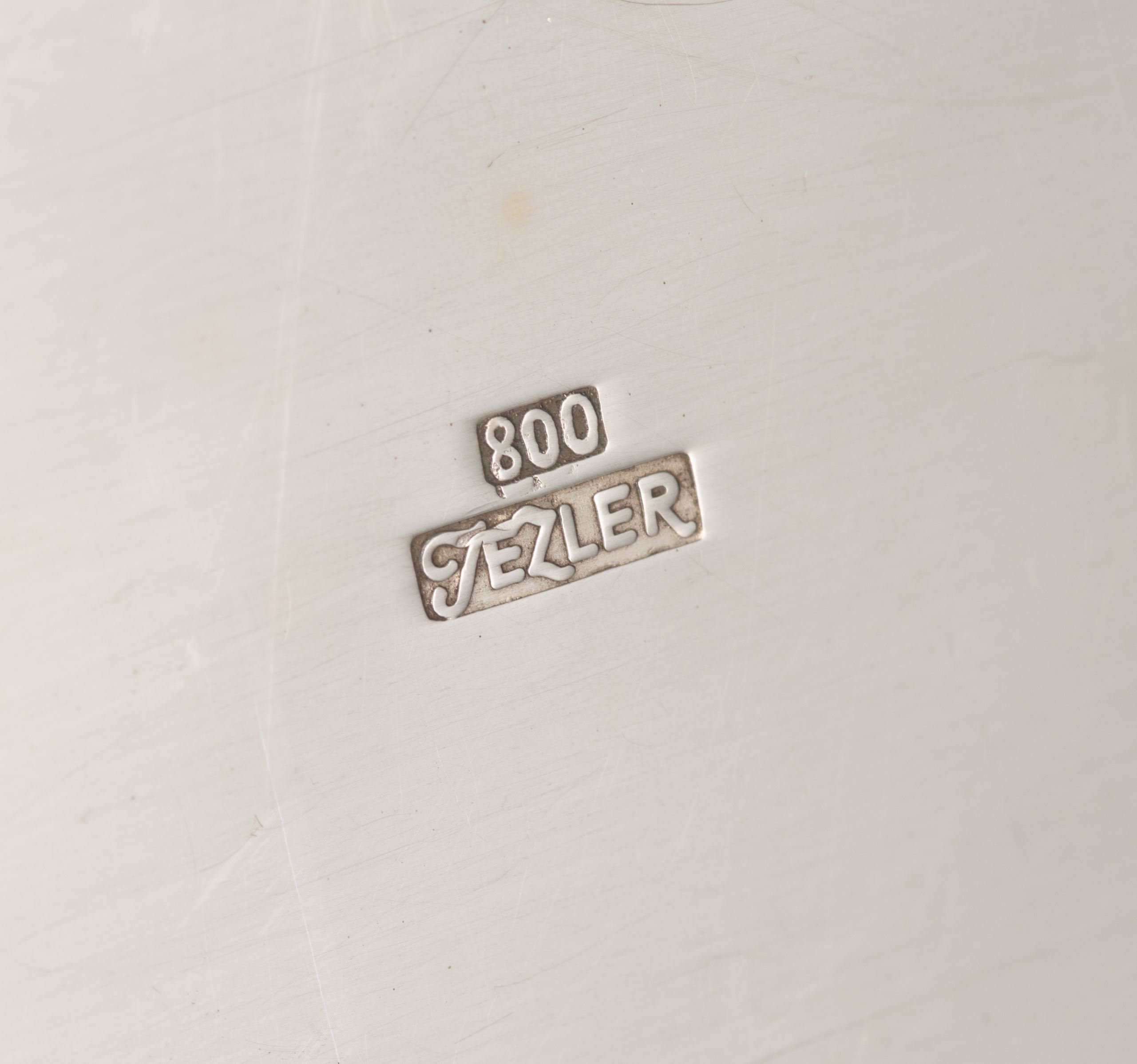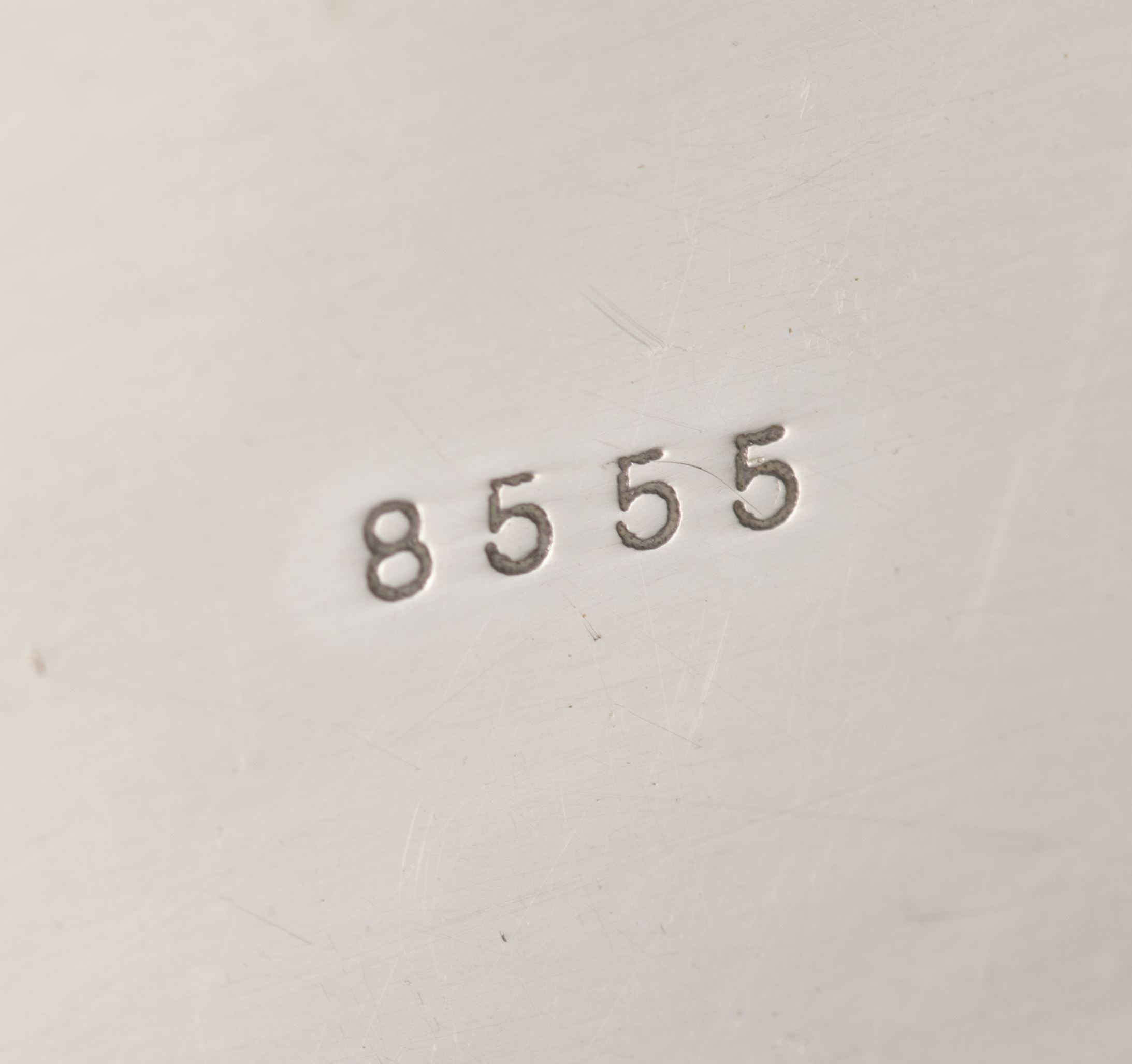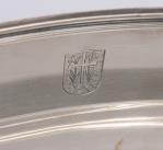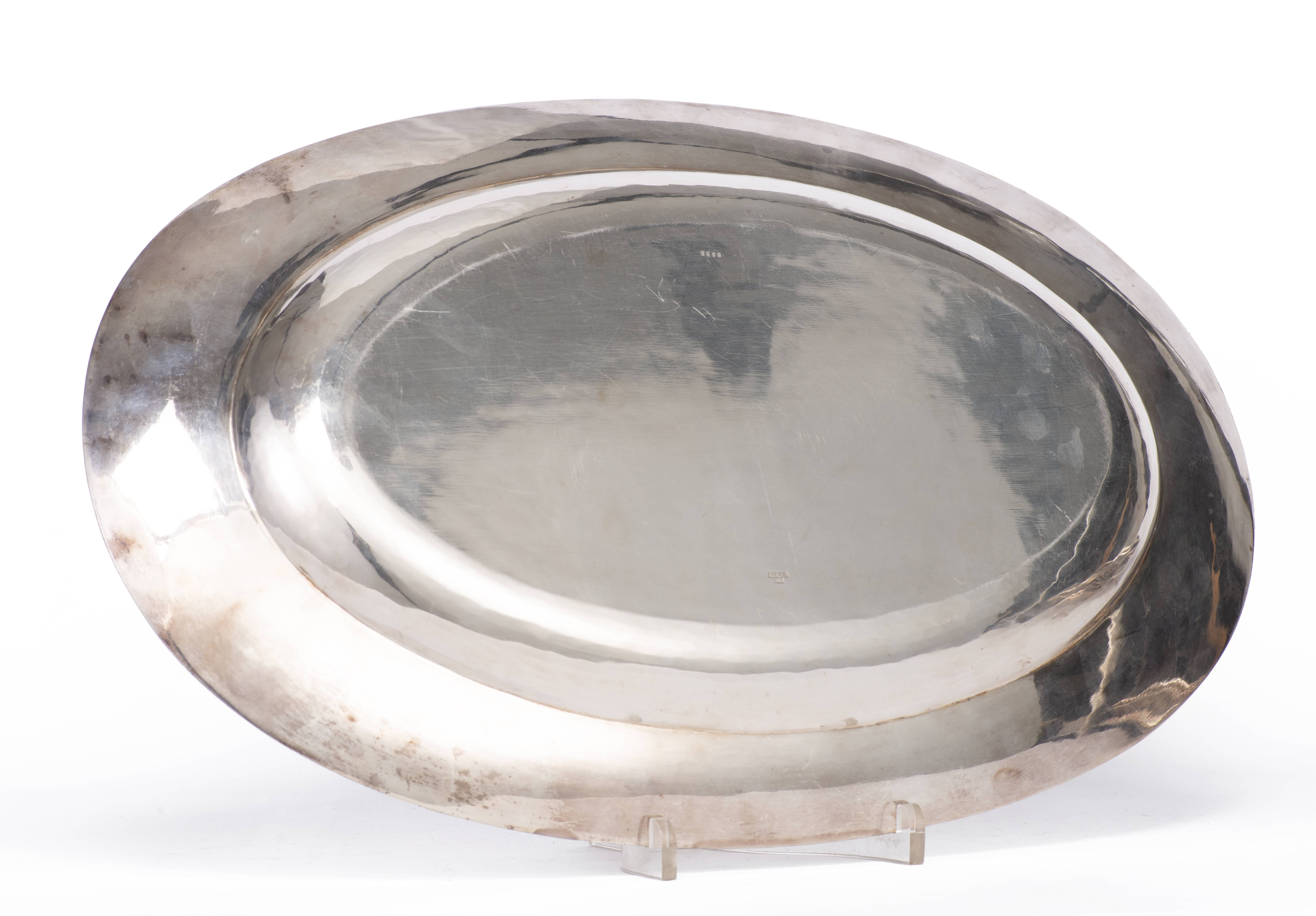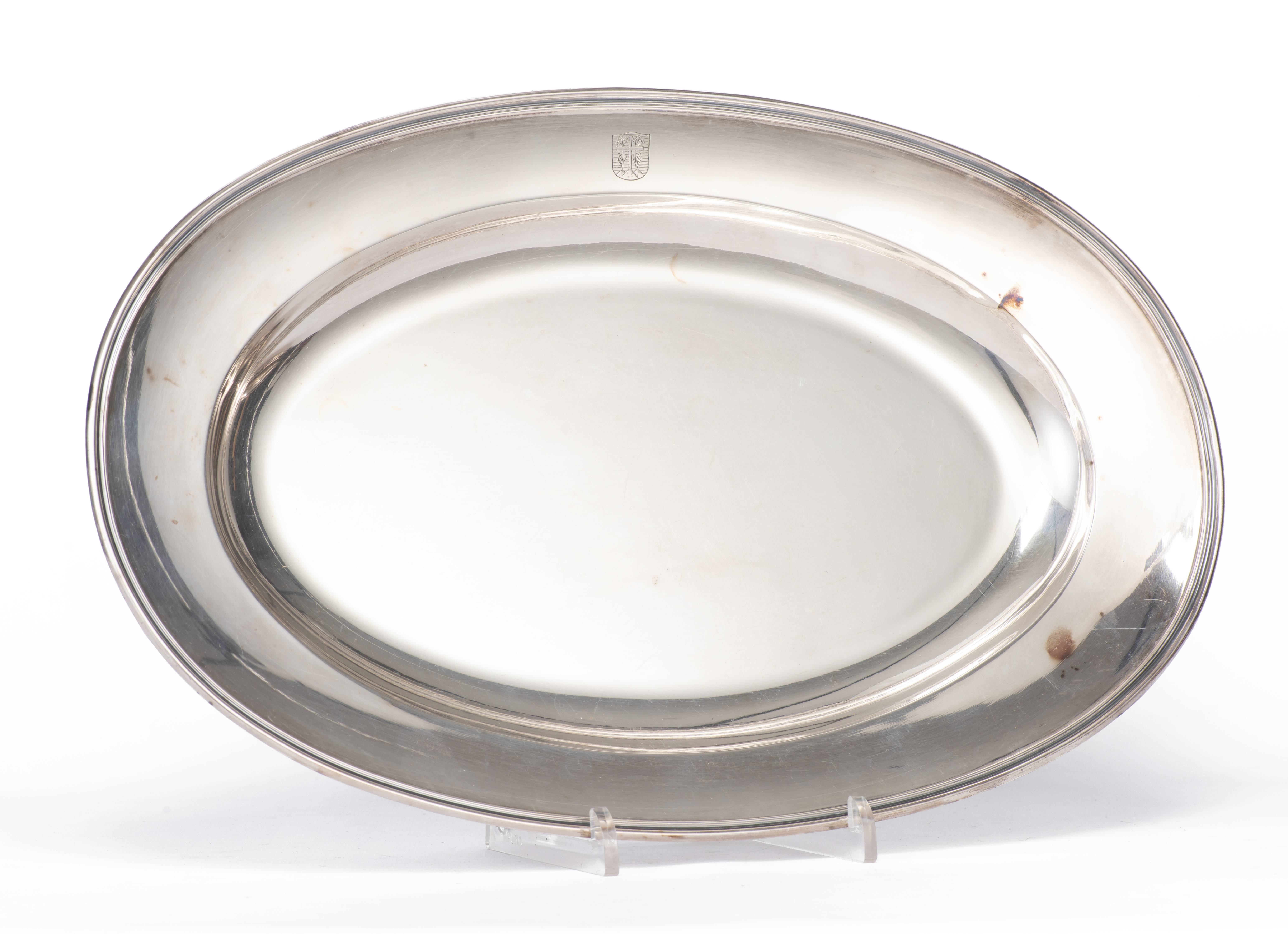 Plateau en argent .800 Jezler n° 8555 de forme ovale aux armoiries de Luthy ou Foetisch ou Millasson ou Amiguet