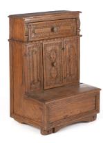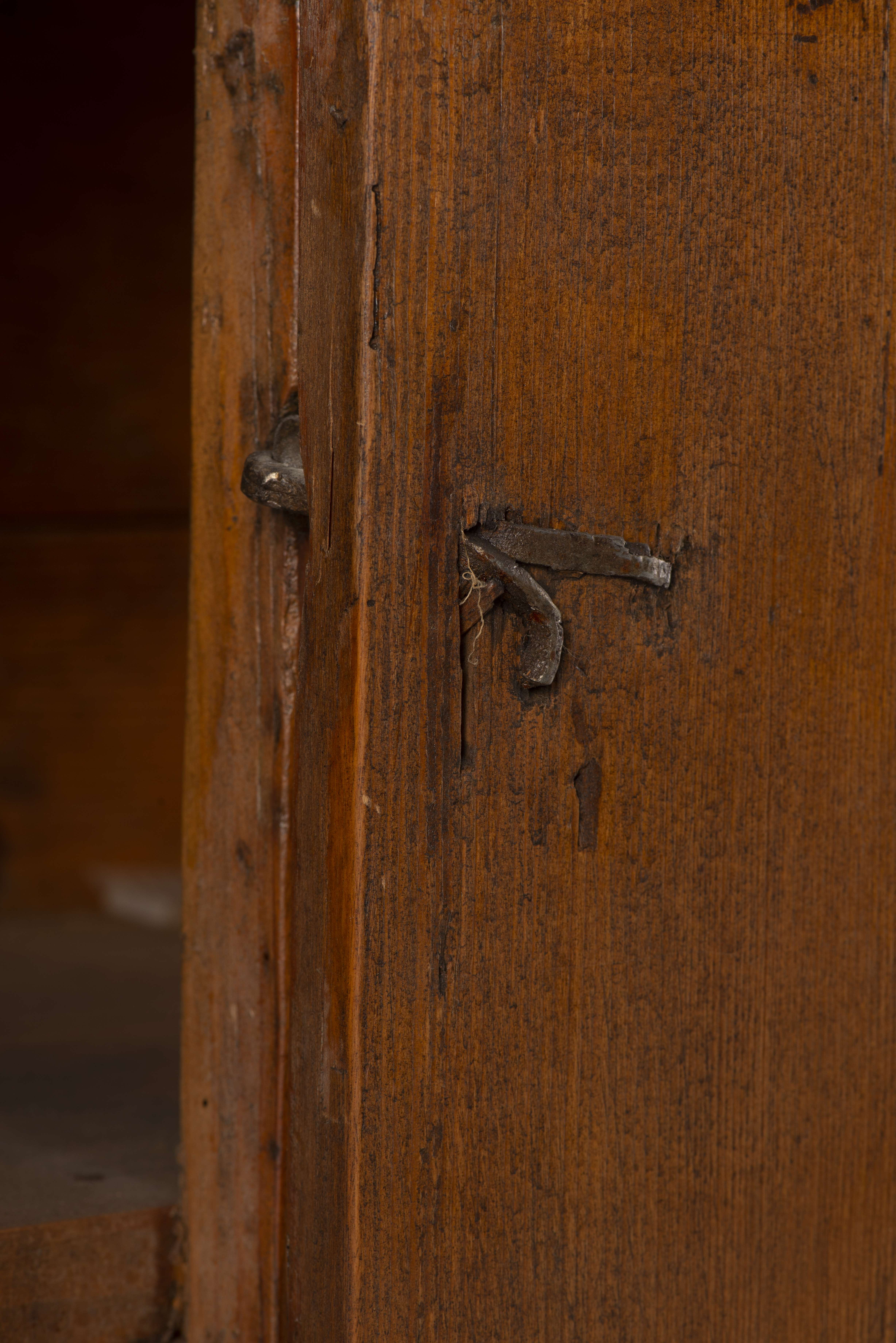 Prie-Dieu en sapin rustique à un tiroir, une porte et un vantail. Italie XIXe.
