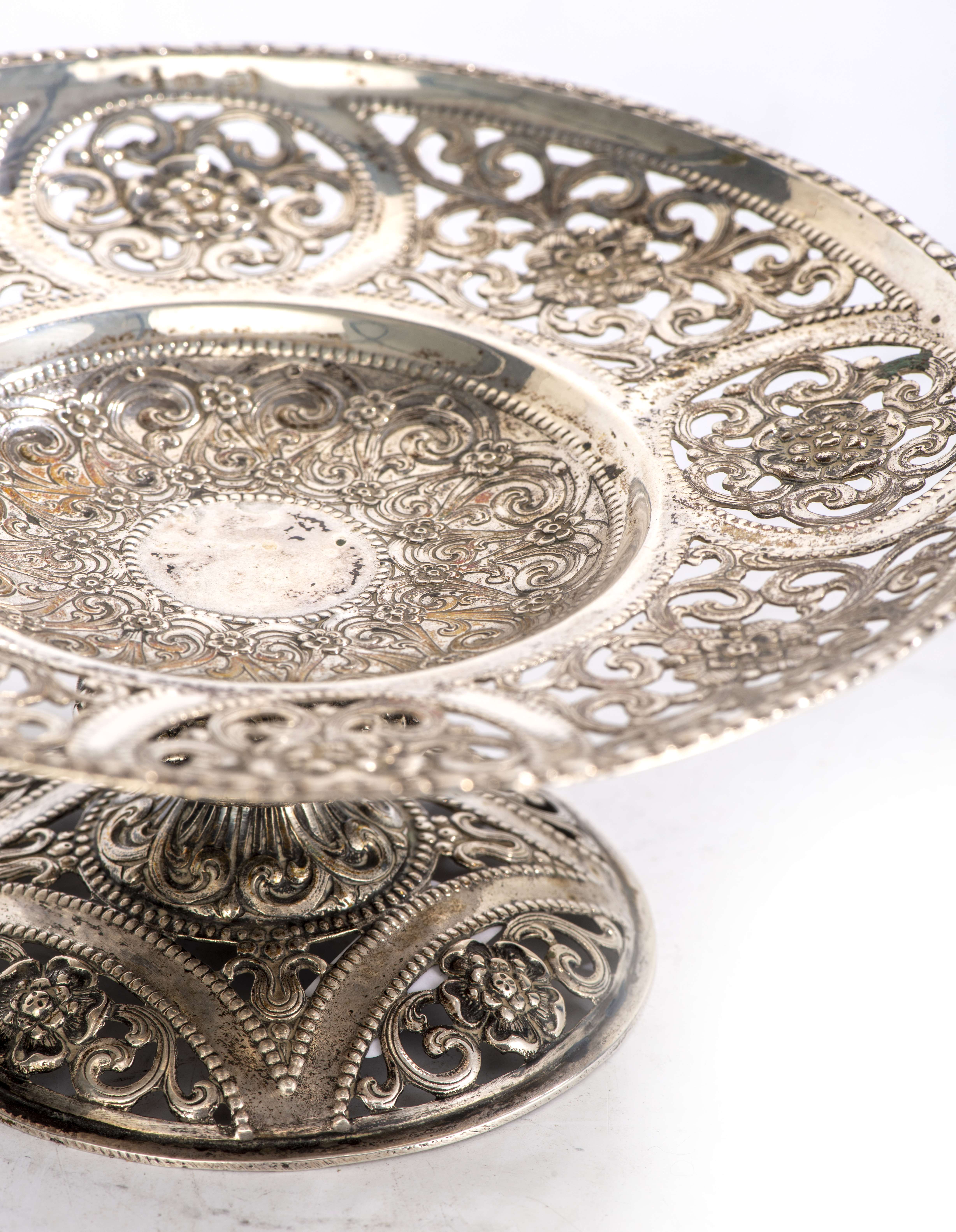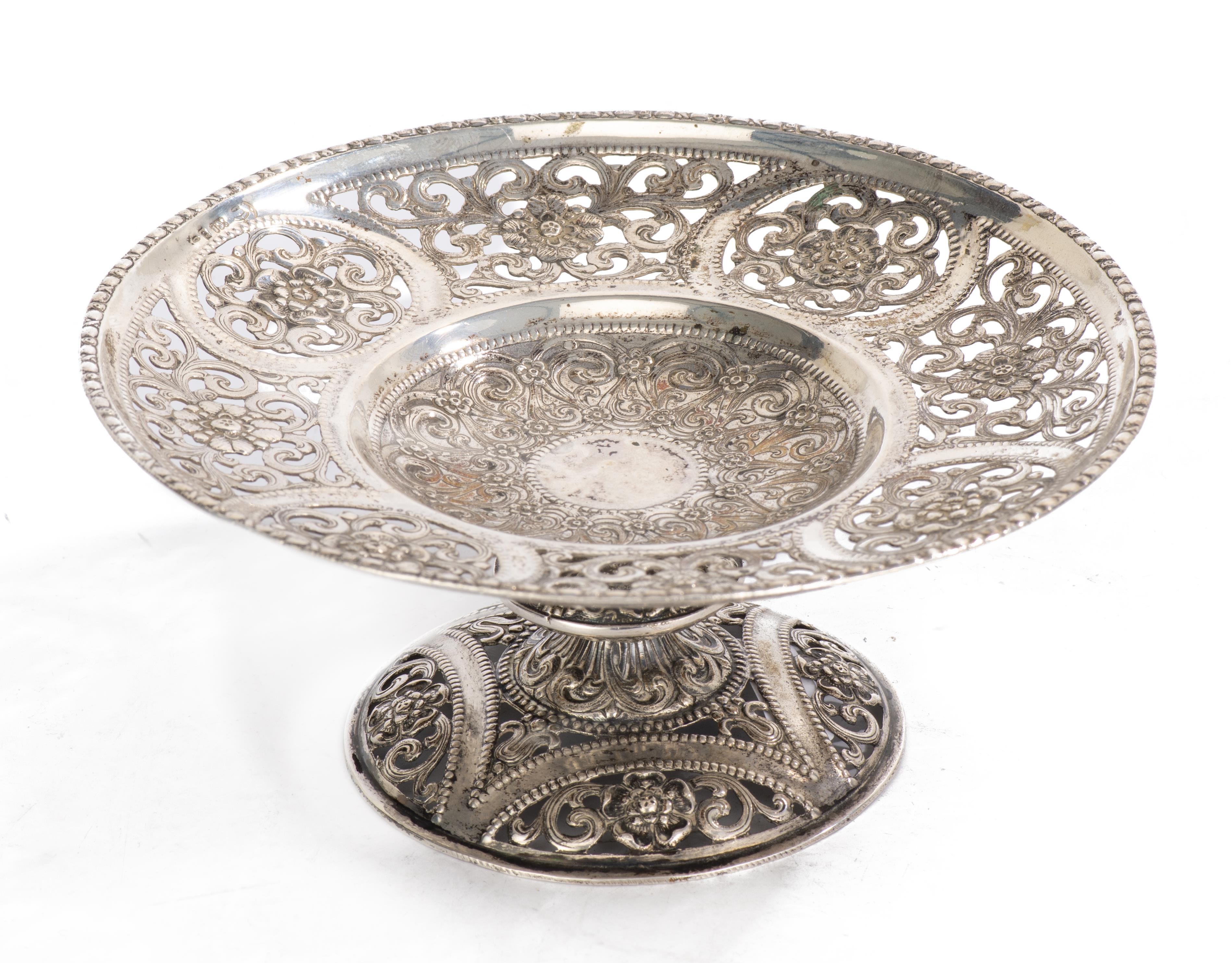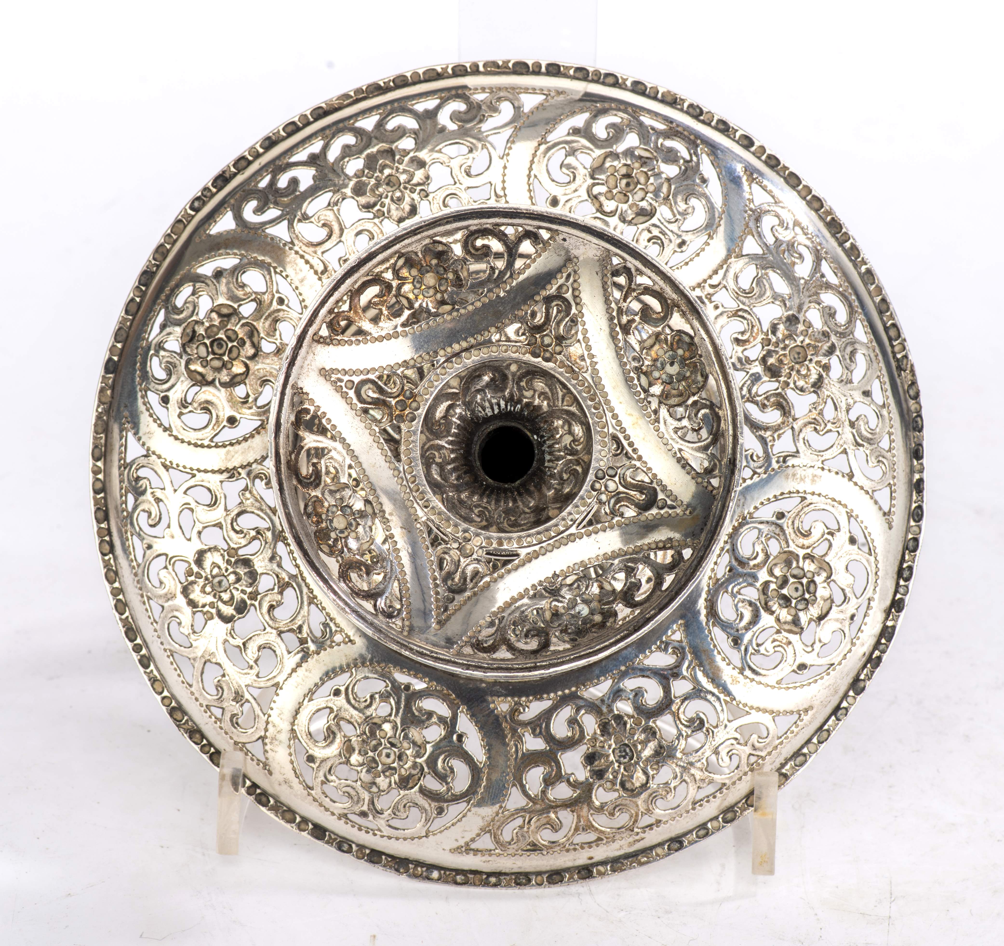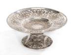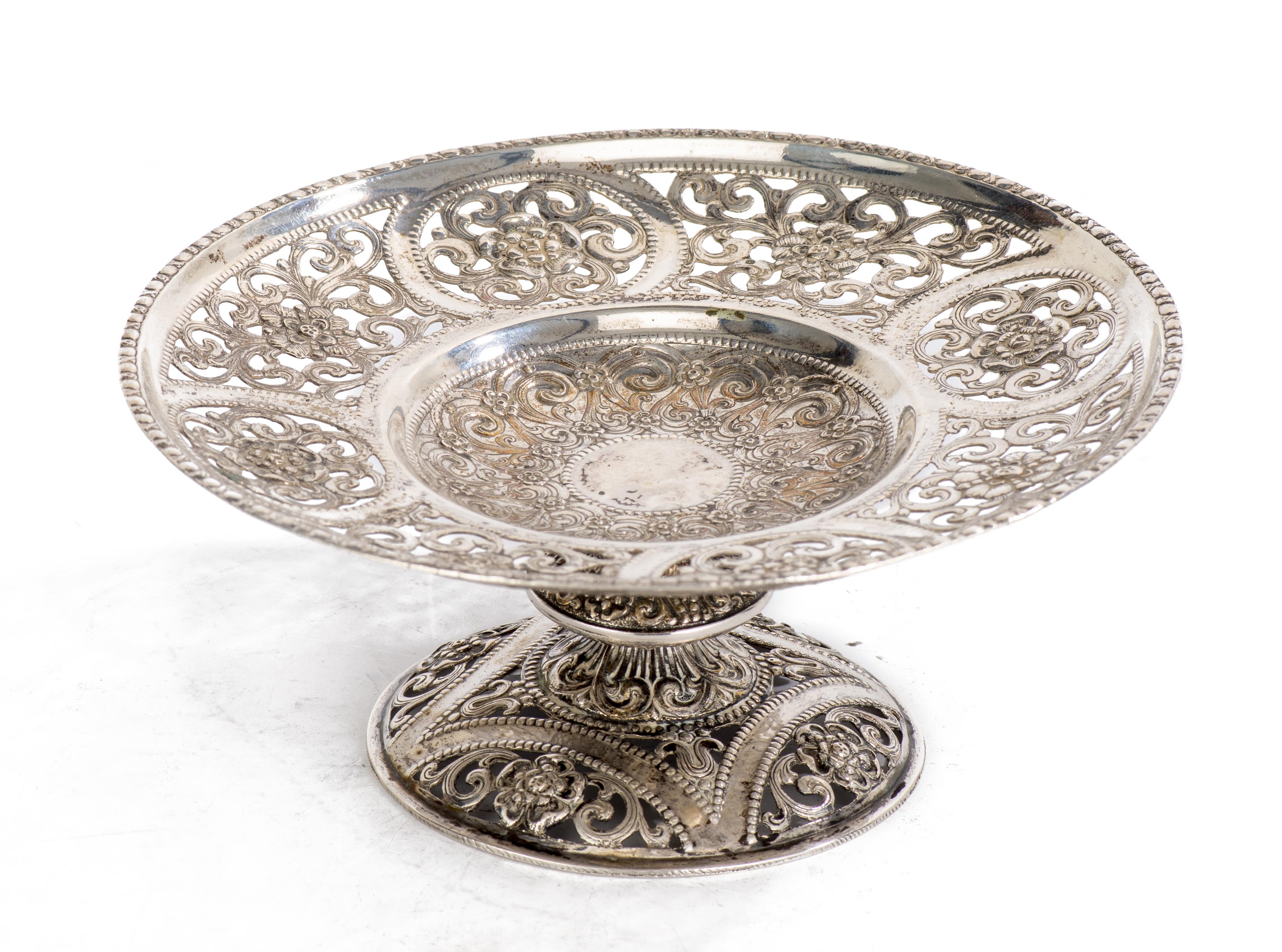 Présentoir sur piédouche ajouré et décoré de fleurs en argent allemand