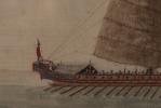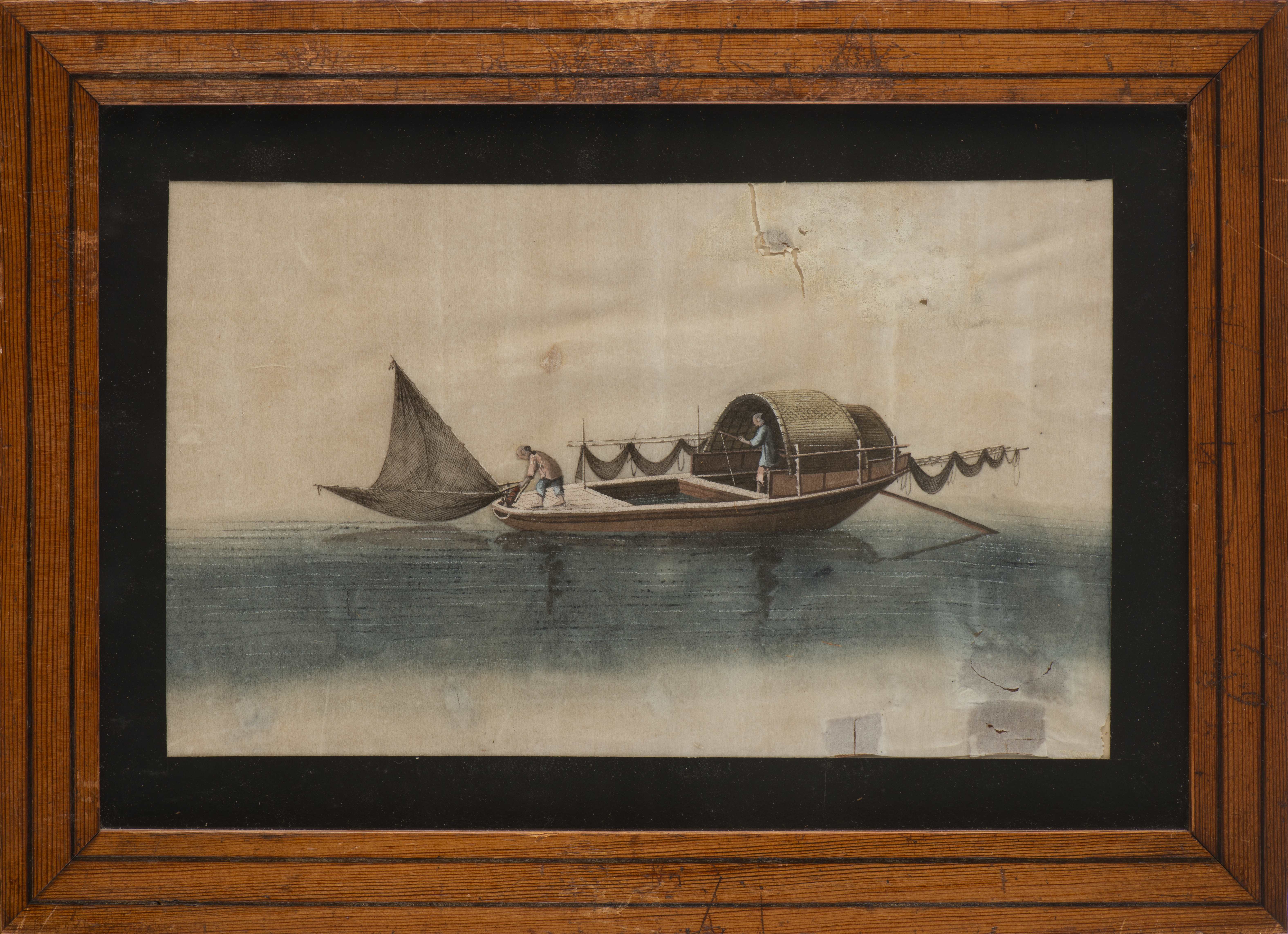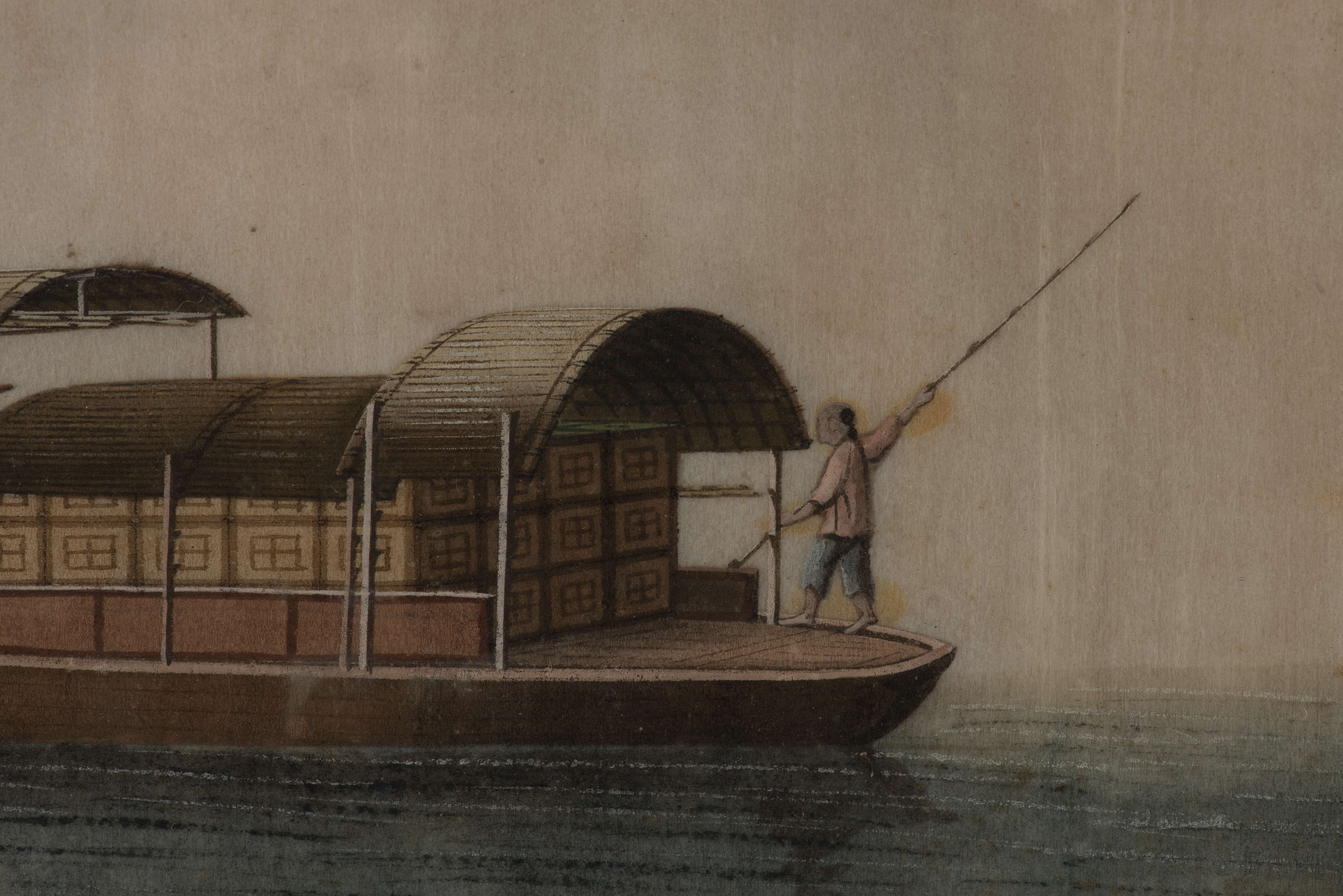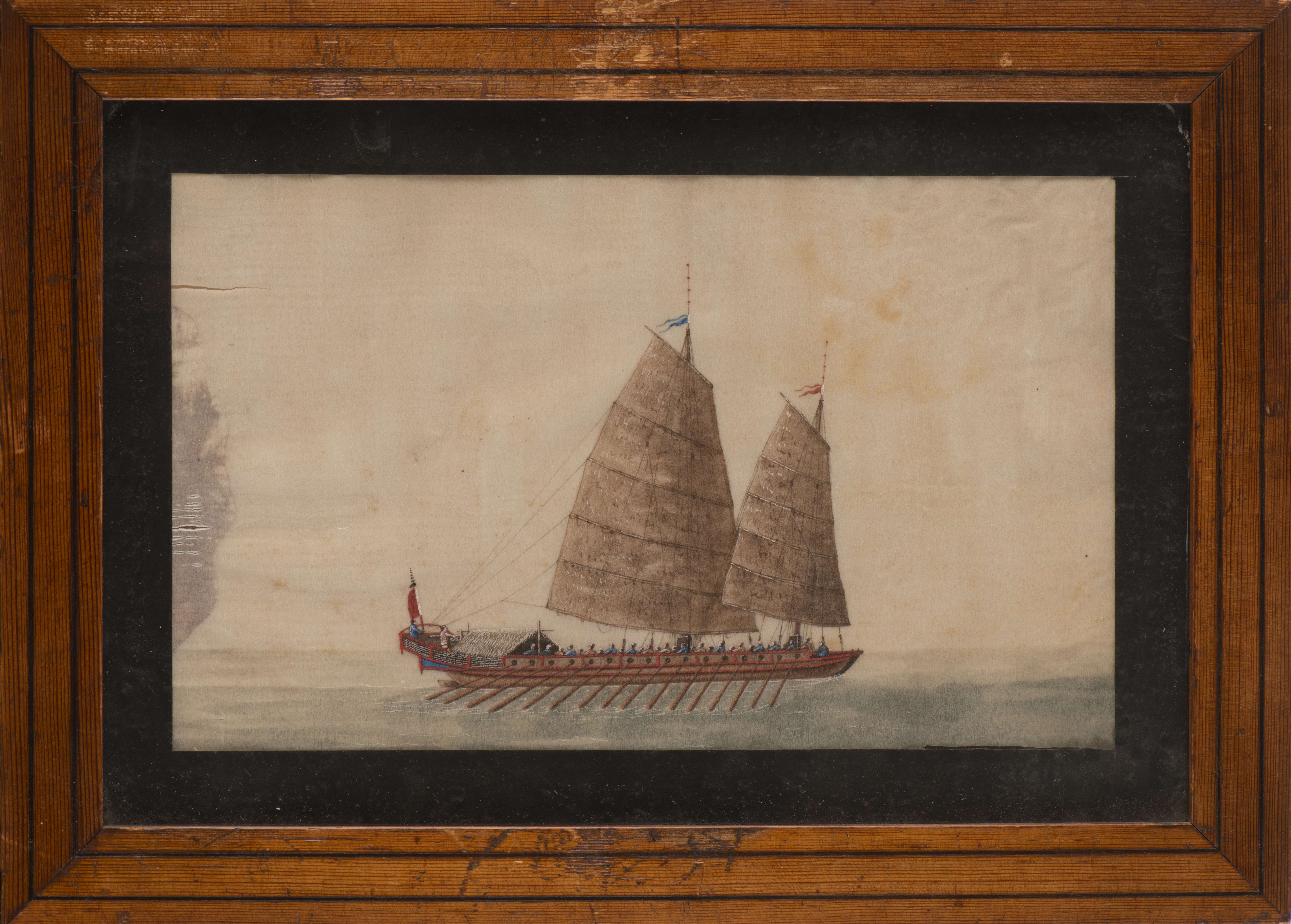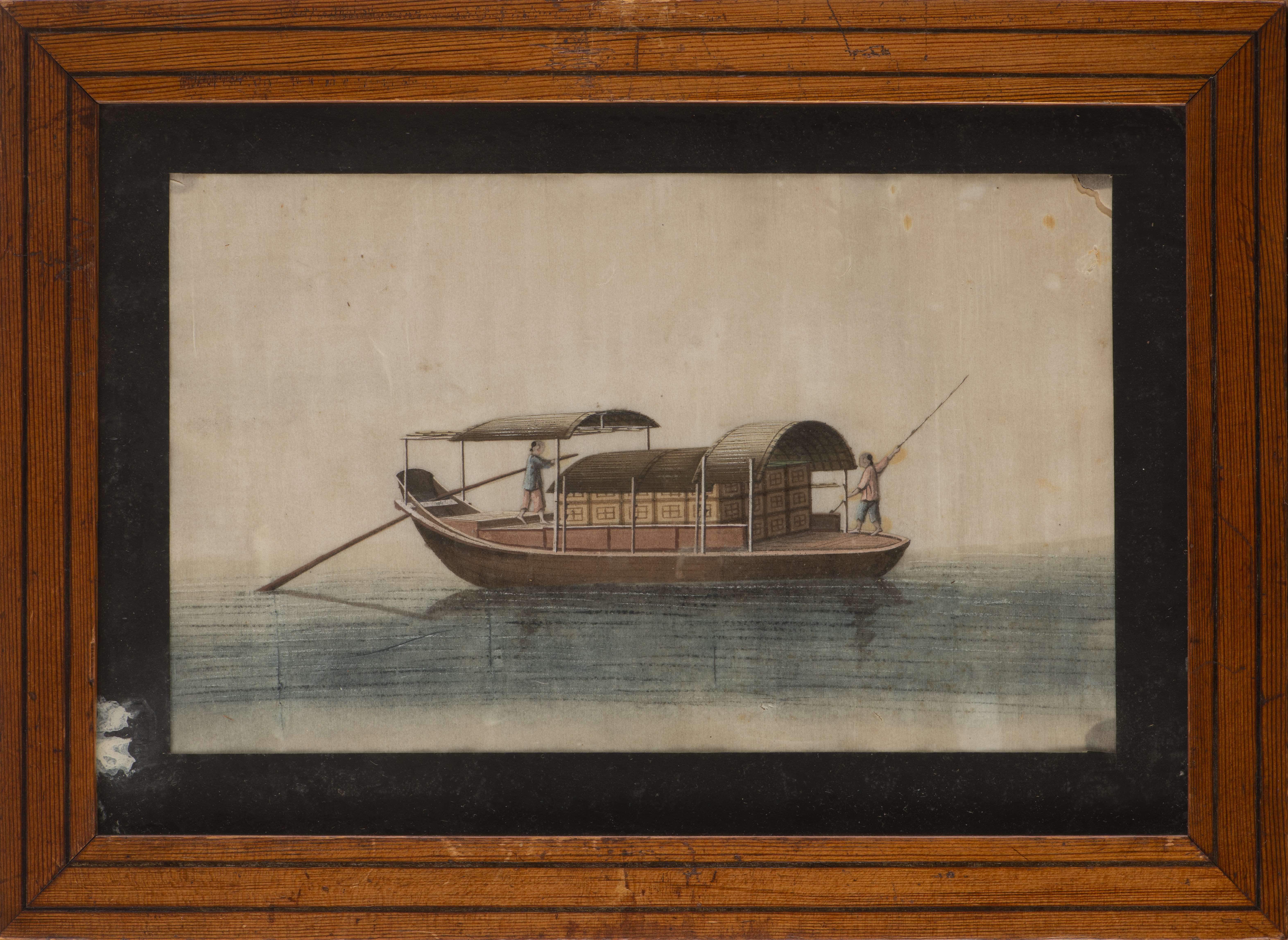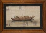 Ensemble de quatre dessins à l'aquarelle sur papier de riz représentant des joncques chinoises XIX-Xxe.